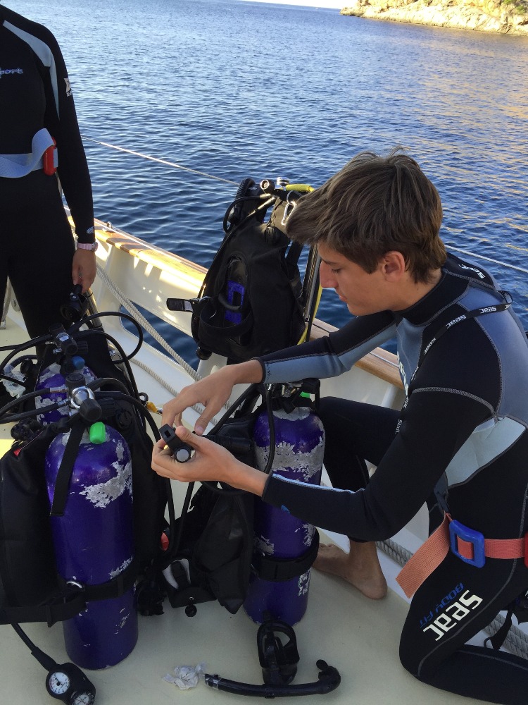 The sun arose with no clouds to block its majestic shine, showing signs of a great day ahead. For many, today was the day they would finally complete their Open Water Course from PADIa great accomplishment after hours of studying, fighting through exams, and diving in cold Mediterranean waters. For the rest of the crew who weren’t diving, they were given the privilege of free time on board to catch up on sleep, studies, or even go for a swim. Kevin, the captain of the vessel, a couple of crew members, and I decided to use our free time to go for a swim to the rocks ahead and hopefully find a spot to cliff-jump. Although we could find a safe jumping spot, we swam through some rocks and underwater openings that kept us entertained for a while. The presence of some jellyfish made us abandon the swim and head back to the vessel. Some even got stung (one on its lip, Mason, the other in many parts of its body, Townes).
