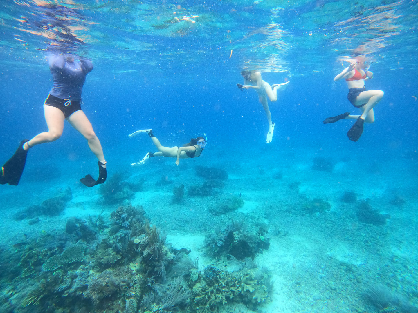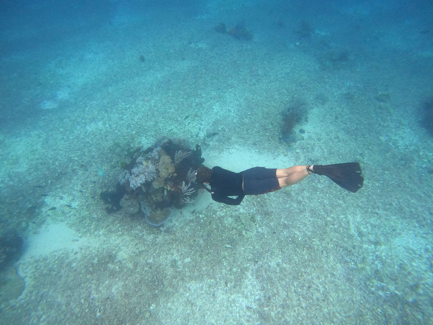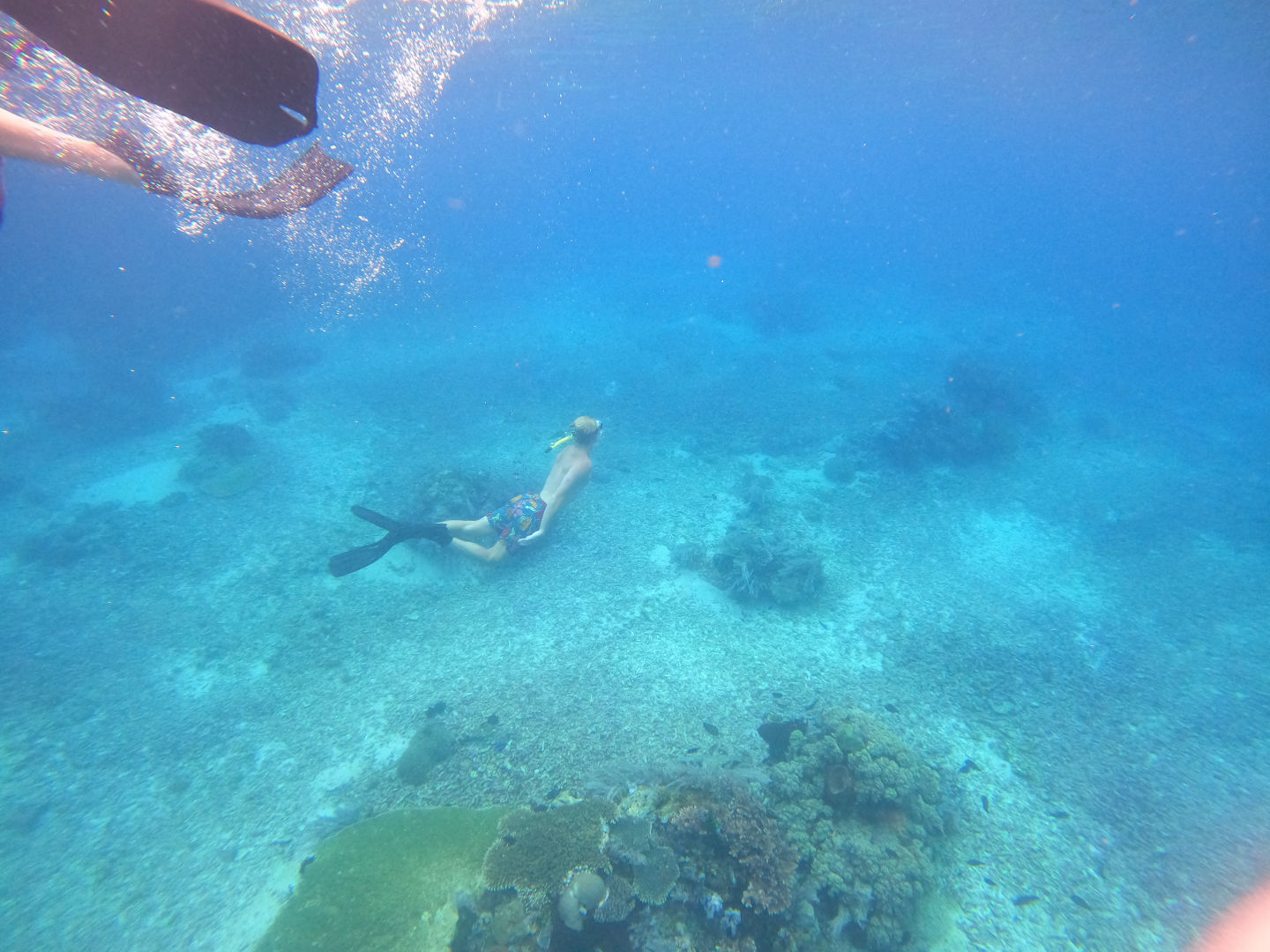Today, Ava and I started our morning at 1:30 a.m. on anchor watch. The whole hour and a half we were in the cockpit, we heard bats screeching on the island nearby as well as something in the water routinely coming up for air. Later on in the morning, I woke everyone else up to eat breakfast. Half of the group got their tanks and gear prepared to go diving right after eating and cleaning up. Once they were done, the first group left on both of the dinghies to the dive location nearby. When they got back sooner than expected, we found out that Ben and Kasey both ran out of air mid-dive, so their group had to cut the dive short. Once they got back, the second group left for the same spot and had a more successful dive. We saw two turtles, some starfish, and a bunch of the fish that we have been learning about in marine bio class.