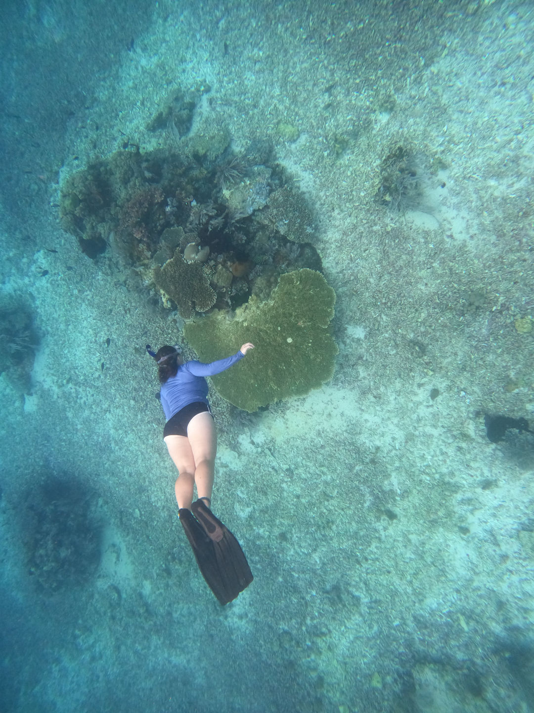 After everyone was done diving for the day, we had lunch, and some of us worked on drawing the fish species we had seen in our fish ID books. We then went snorkeling nearby, where Vela was anchored, to look for “nothing in particular,” which was written in the plans for the day. We eventually found out that meant we were going to a spot where manta rays are known to be at certain times, despite our best efforts to find them, which consisted of following groups of tourists and different boats that seemed like they had seen some. We unfortunately did not find any. But we still had fun swimming and following around different groups who we thought had spotted some. Once we got back, everyone had free time to do homework and get ready for dinner, except Audrey, who was our head chef, and her sous chefs, Allie and Nico. While we ate dinner, we were underway to Laubaun Bajo, where we were anchored for the night. After everyone finishes their jobs and cleans up, we have our marine biology class with Stef to wrap up the night.