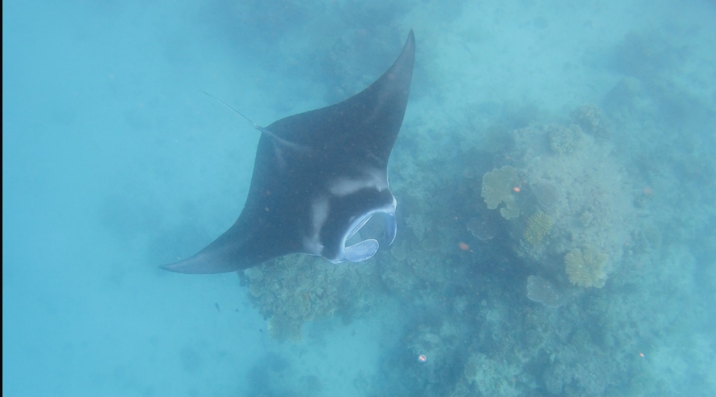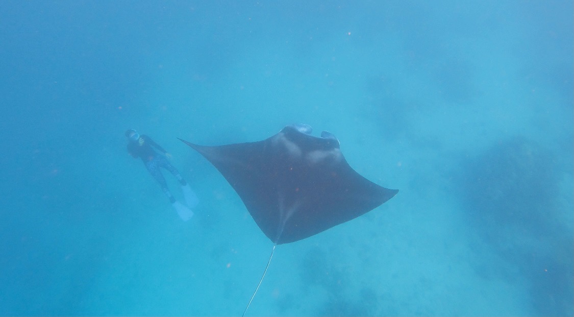 Today was another fantastic day filled with all things water-related. The rain could not stop us from our search for mantas, diving deep and diving in the dark. Morgan prepared us a delicious cooked breakfast of egg casserole. After breakfast in Oceanography class with Steph, we conducted the water Olympics of Argo Summer 2021! We compared the surface tension between freshwater and saltwater by putting drops of each on a coin and floating tin foil in a bowl of each as well. We discovered that there would be more freshwater drops on the coin before it spilled over and that you could fold the tin foil more times before it would sink in freshwater, confirming our hypothesis based on our prior knowledge that freshwater has higher surface tension than saltwater. THEN… the manta searching continued! First, Pierce found his own manta that he was swimming with alone for 20 minutes before he could get the attention of everyone else to come over and see it as well. Pierce has now become one with the mantas. Then in the second rotation, the minute they jumped in the water, there was a manta waiting just underneath them! Not only did we see 4 mantas, but we saw the biggest female reef manta anyone, onboard has ever seen, SO BIG she was confused with the larger manta species, the oceanic manta!