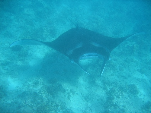Today we woke up and got straight to diving. We broke into groups to dive a shallow reef. Many divers spotted schools of fish, sea turtles, white-tipped reef sharks, and other great sea life. After the dive, we found a group of manta rays in the shallows and snorkeled with them. They had wingspans of around four meters and were truly a sight to see. It was a once-in-a-lifetime experience being barely inches from these enormous and unique creatures of the sea.