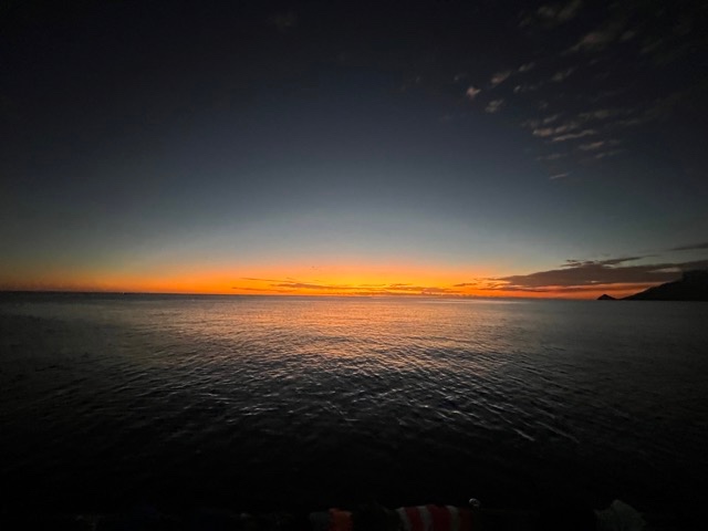 Once we arrived in Kuata, the weather was absolutely beautiful. The sea was very calm, and there was minimal wind. Some of the other D-MITS and I did some knowledge reviews, and then it was shower time. The sunset today was absolutely incredible. A few other crewmates and I took this time to goof around in the water, jumping off the side of the boat and other tomfoolery. Dinner was nacho bowls, which was splendid. After dinner, our captain, Tomer, gave us a little story about his past life, which was pretty cool.
