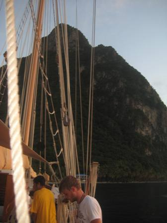 After a nourishing breakfast of breakfast sandwiches, we geared up our minds for the second OCB exam. Next, we had a good time with Casey in OCE. When class was over, we made ready to motor too and said goodbye to Soufriere and the Pitons. We had about an hour and a half motor straight upwind to Marigot Bay, where we enjoyed shore time and real showers! Now it’s time for a relaxing night out, complete with crab races at Doolittle’s.