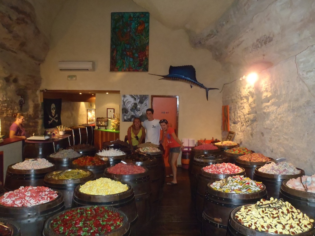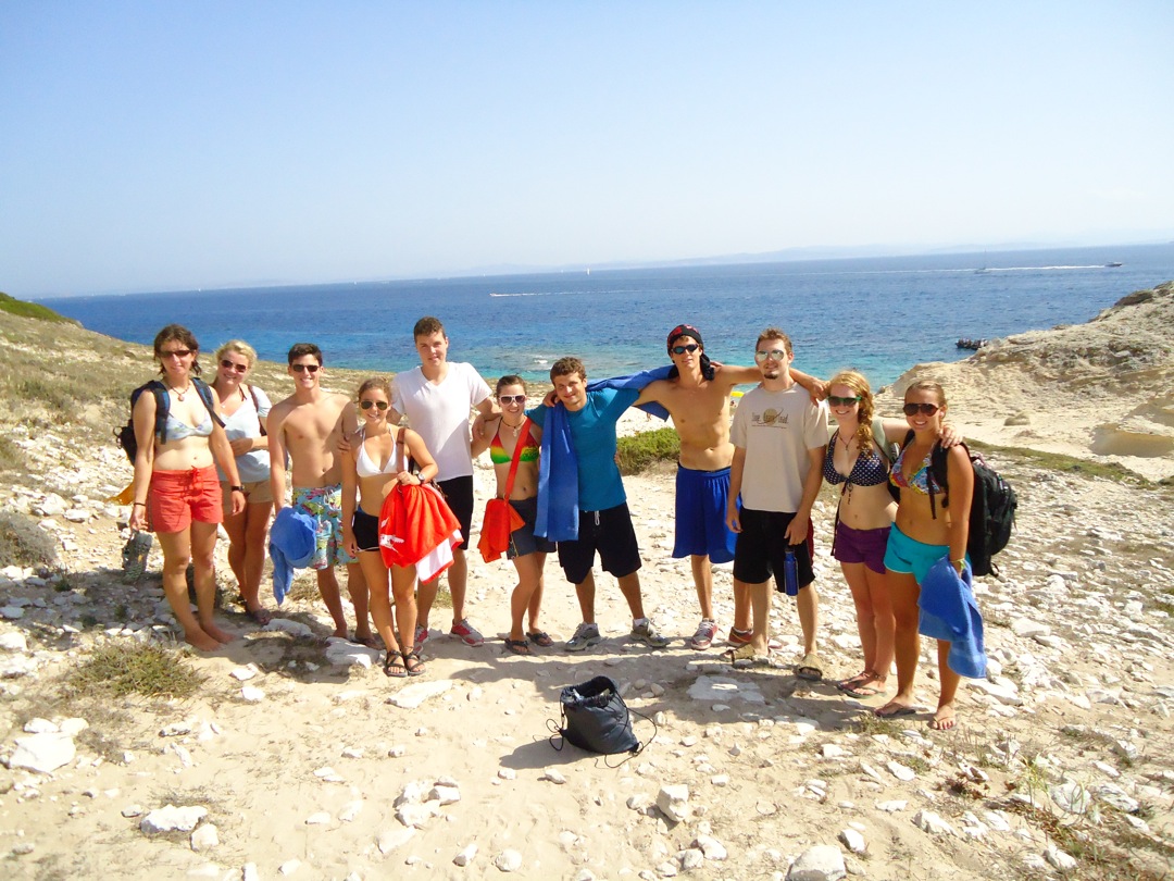 As we approached the port, it became very dark, and we came into a very narrow and busy canal. The current was strong, and the Frenchmen were loud. The passage soon proved unsafe for a night anchor, so Captain Sean navigated back out to open water for the night. The morning came quickly, and we dinghied to shore for an amazing hike. We went to an old lighthouse and secluded beach that had cool rock formations all around it. Later, we returned to the boat after a relaxing day to get ready for a much-appreciated night out.