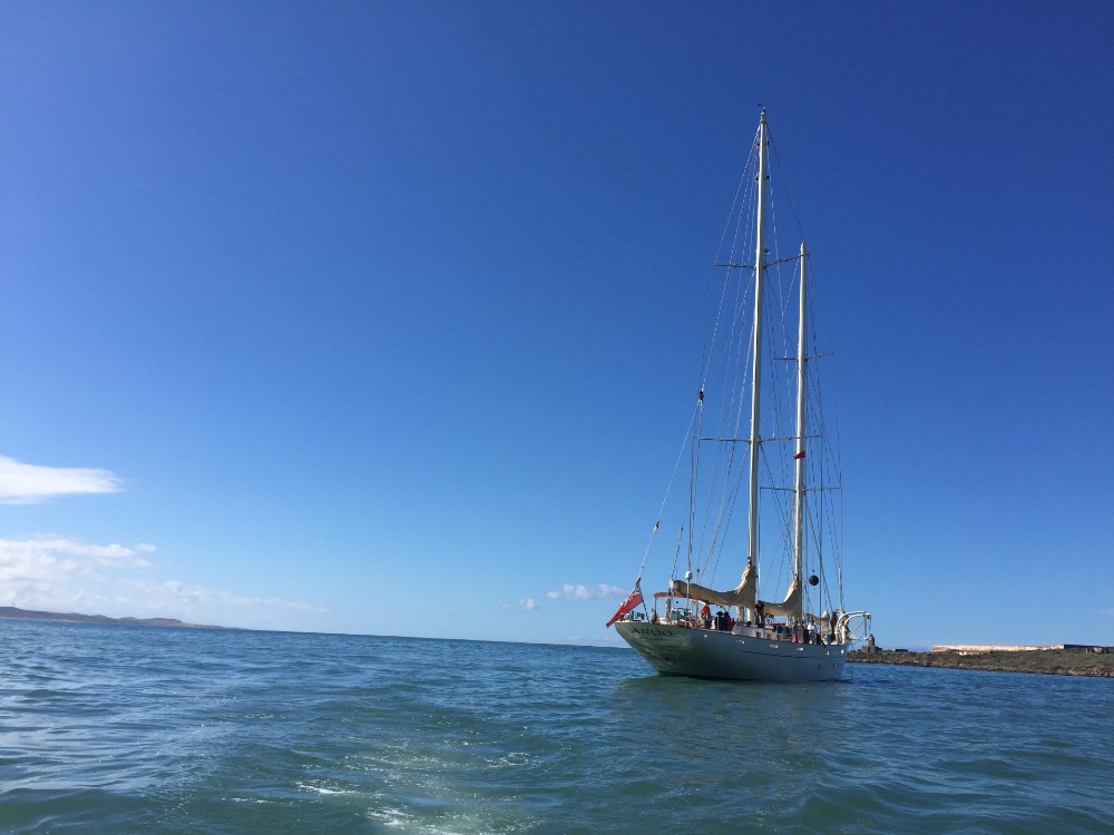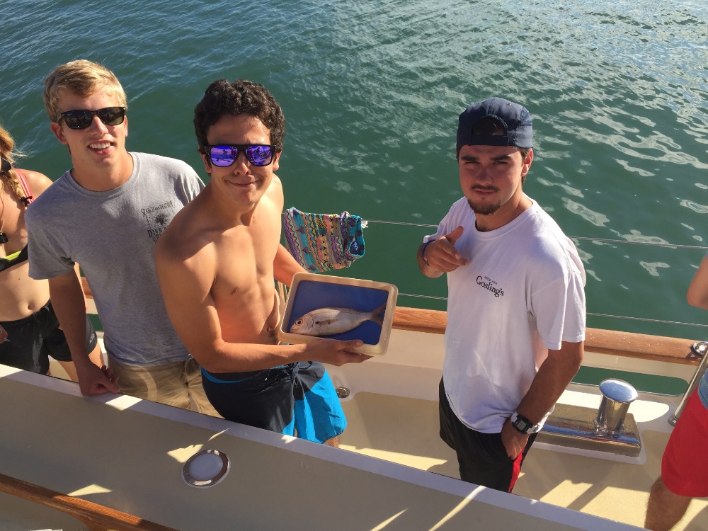 This morning, our wonderful head chef, Tacha, woke up bright and early to bake us delicious chocolate cranberry scones for breakfast. After our usual morning muster and cleanup, we had some downtime, which ended when the smell of fresh fish engulfed the air. It was Jess, holding a plastic trash bag for our morning activity: dissections. Each group of four got to pick a random sea creature out of the mystery bag, including fish, squid, and eels. Each team worked on finding different parts of the animals. The squid teams got to use the pen (a clear, rigid structure that acts as a skeleton for the squid) to puncture the ink sac and write their names, as well as give themselves tribal paint using the ink from the squid. After the dissections, we got ready for shore time in Essaouira. We jumped off the dinghies onto a fishing dock and walked into the walled city, where there are alley upon alley of souvenirs, spice shops, and shawarma. There was bartering, shopping, eating, and massages for the crew of Argo. We all returned to the boat with smiles on our faces. After showers and delicious tortilla soup, we had an oceanography class and began the rotation for anchor watch that will take us into another great day.