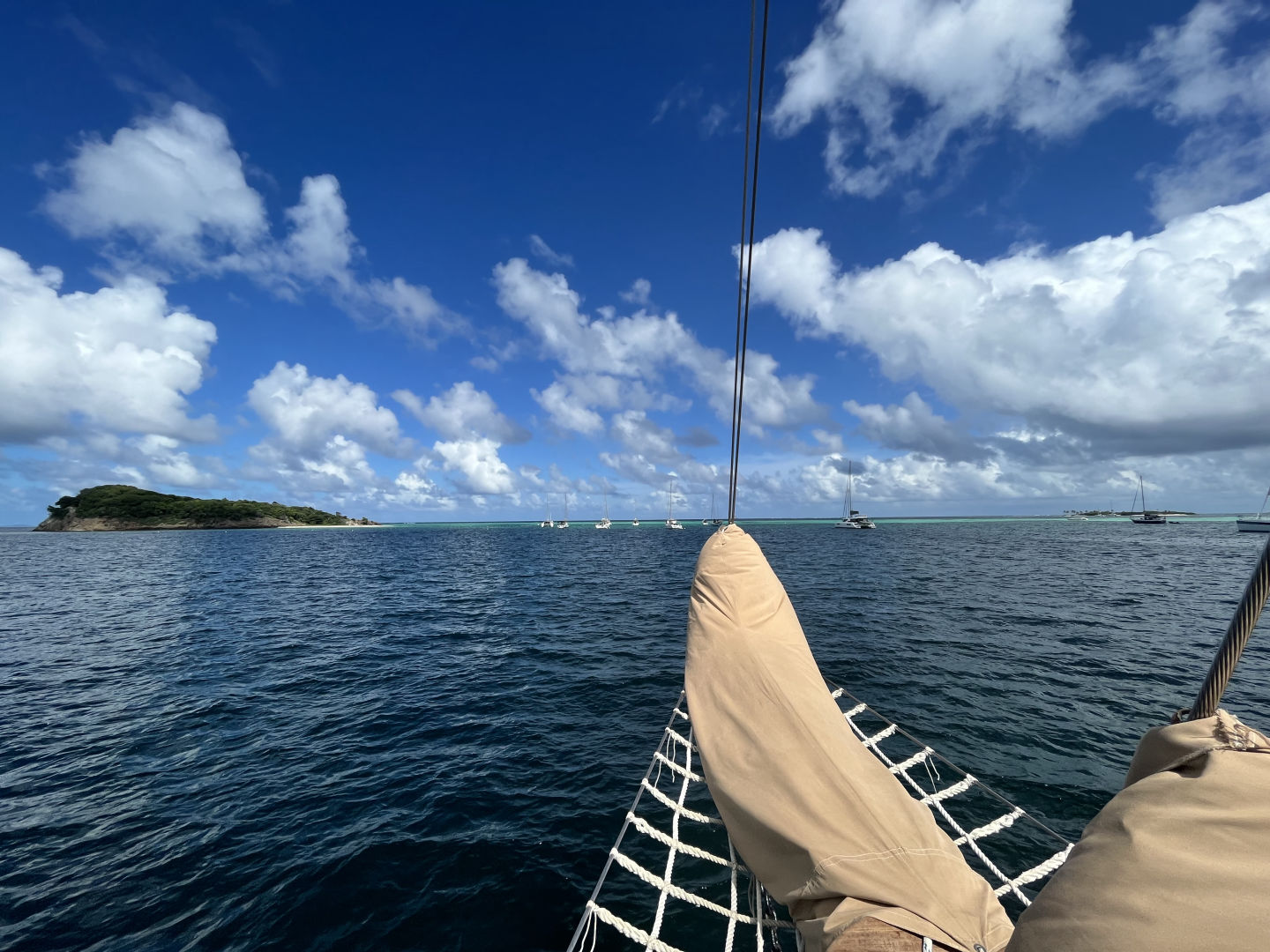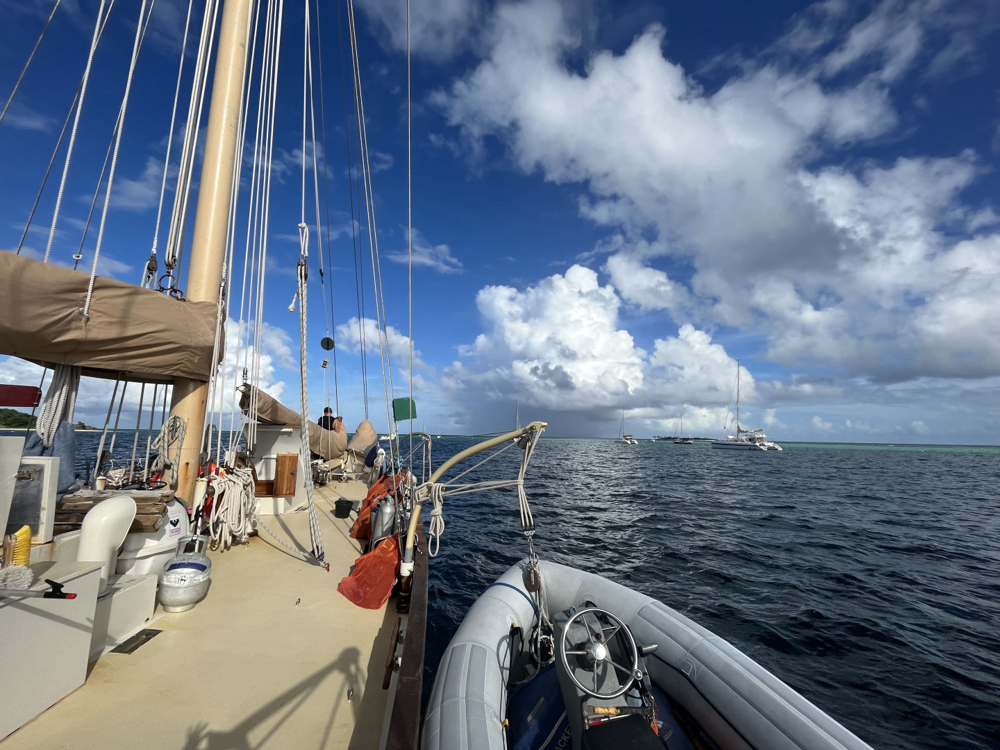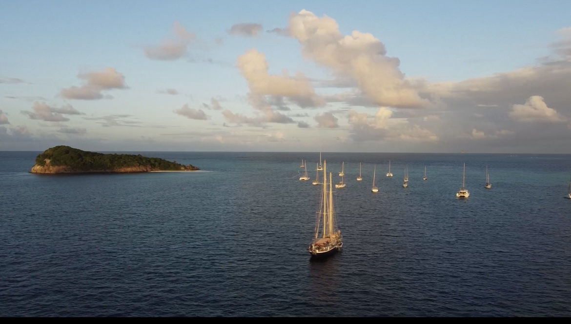 How fitting that my first day as skipper was our last full day spent in one of my favorite spots on the trip, the Tobago Cays. The crew was awoken to some John Mayer and promises of delicious crepes awaiting them on deck prepared by none other than the A team (Head chef Sean and sous chefs Nicholas and Drew). After our joyous mega science day yesterday, brought to you by myself and Heather, today’s plan was a mega boat day, brought to you by Drew and Nick. Drew started off our day with a seamanship class where the students learned how to do a running fix and a three-point fix and got to practice a bunch of problems with Drews’s watchful eye and insight. We then had another delicious meal, yogurt parfaits, prepared by Sean and his sous chefs. After lunch, it was time for a highly anticipated and long-awaited activity, dinghy school!! Nick started off dinghy school in the cockpit with the whole crew and briefed them on dinghy safety, the ins and outs of both our dinghies, and all the things we have in them. They were then split up into smaller groups and taken into Exy, our tiller steer dinghy, and taught how to operate her. They learned how to turn her on and off, how to drive her, and how to dock her all safely and smoothly. By the end of the day, all students were Ostar dinghy certified by Nick. After dinghy school, everyone got working hard on their marine bio ID logbooks that are due soon, flipping through the ID books, drawing different creatures, and recounting the time they saw each organism over the last 25 days. I am pretty excited to see the final results tomorrow night when they start handing them to me.