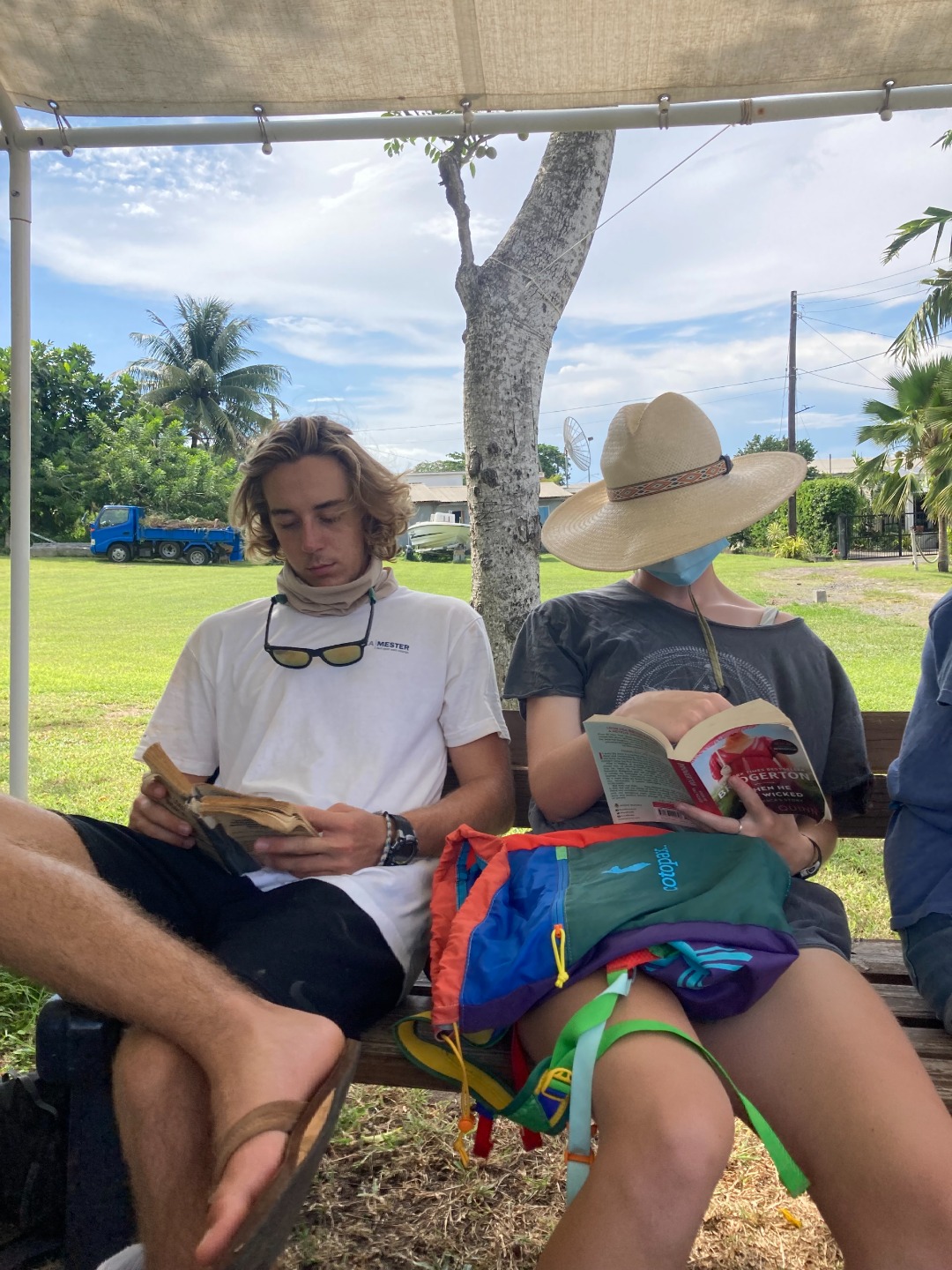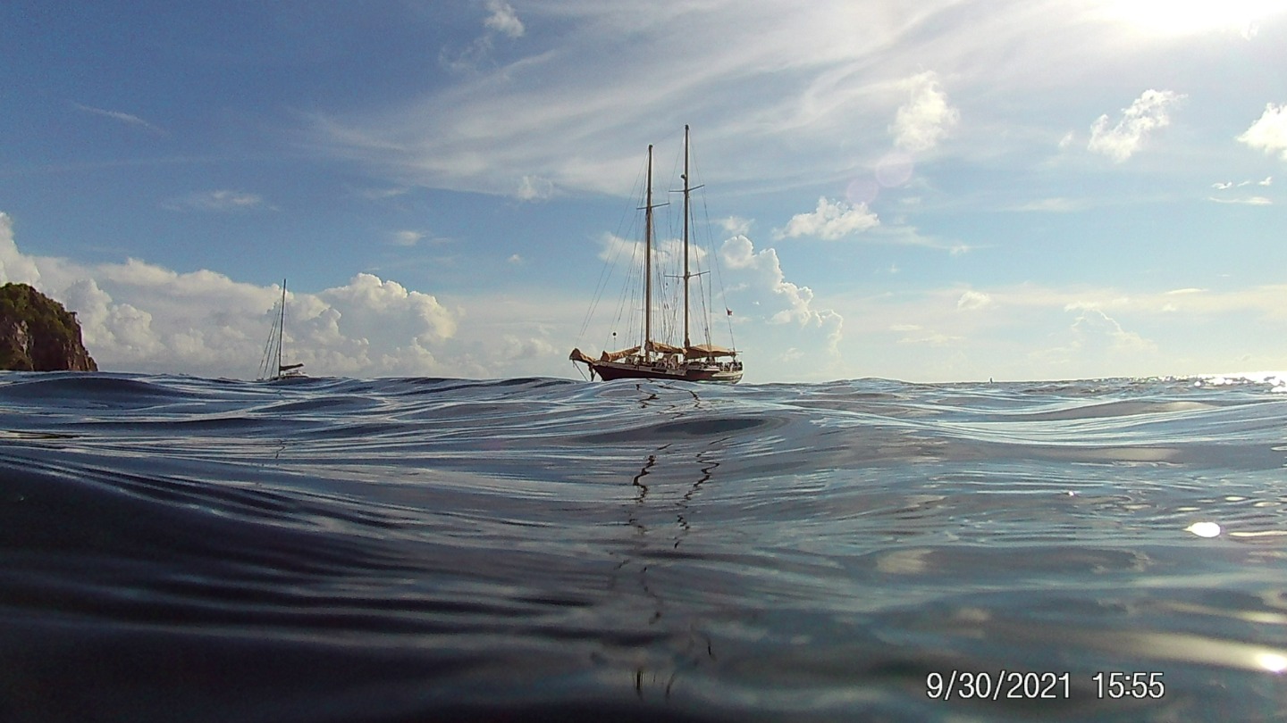 I wasn’t scheduled to be Skipper today, but Sam and I made an under-the-table deal and switched jobs. Today was the first day of Megawheel (aka students are head chefs), and Maxime and his sous chefs cooked us up a great breakfast of eggs and veggies. Then we went to get COVID tested so we can be let into St. Vincent and hopefully start diving!! We waited to get tested for about an hour, so people pulled out the books to keep entertained. Smash flexed her grass-trumpet playing skills. Lucia and Stefi resorted to childlike tendencies and chased each other in circles. Tate did some yoga on the grass. After we got tested, we shuttled back to the boat, ate lunch, and cleaned up before classes in the afternoon. We had Oceanography, where we learned about plate tectonics and why the Caribbean has so many volcanoes.