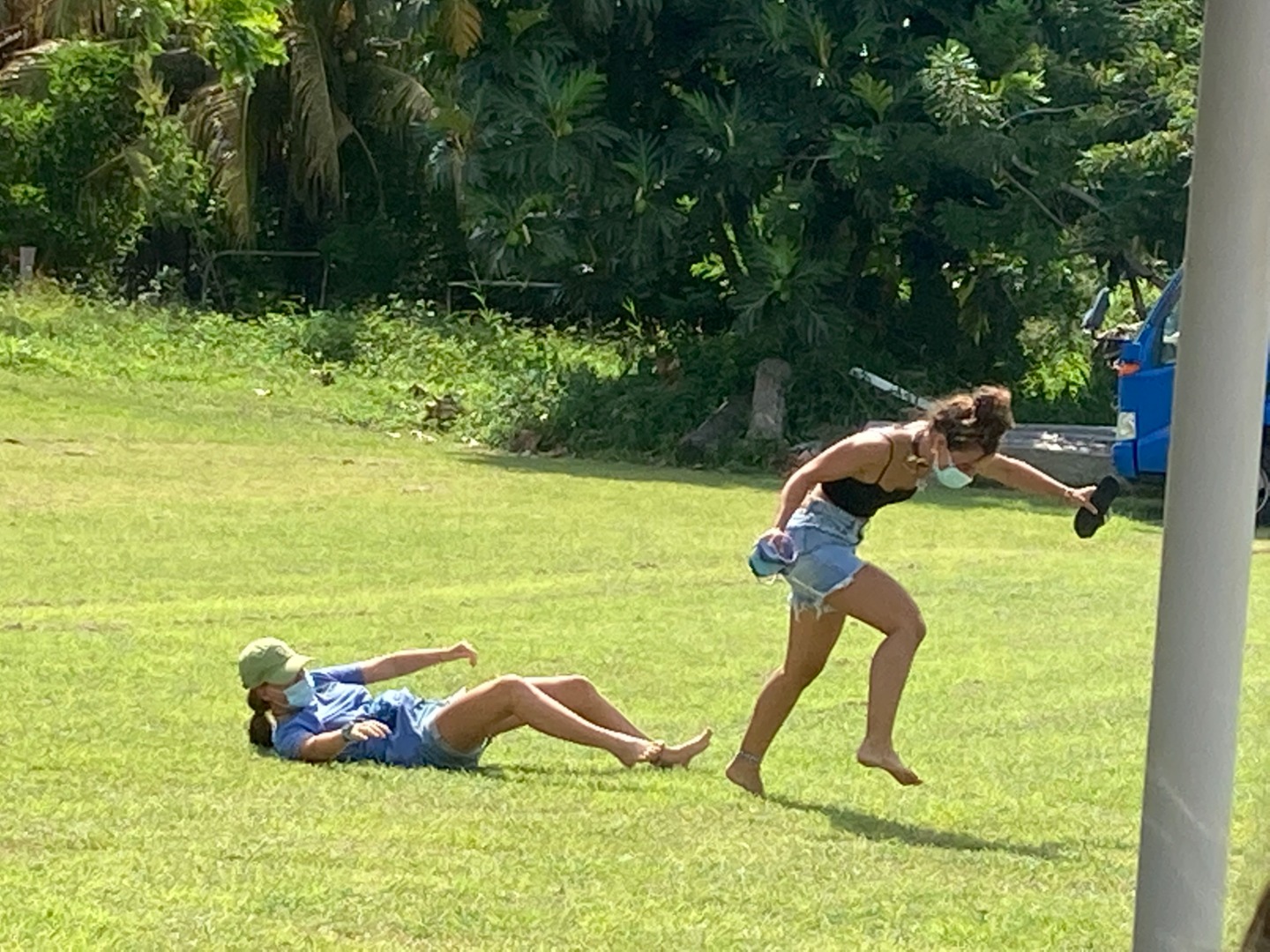 Photo 6: Lucia and Stefi throwing shoes