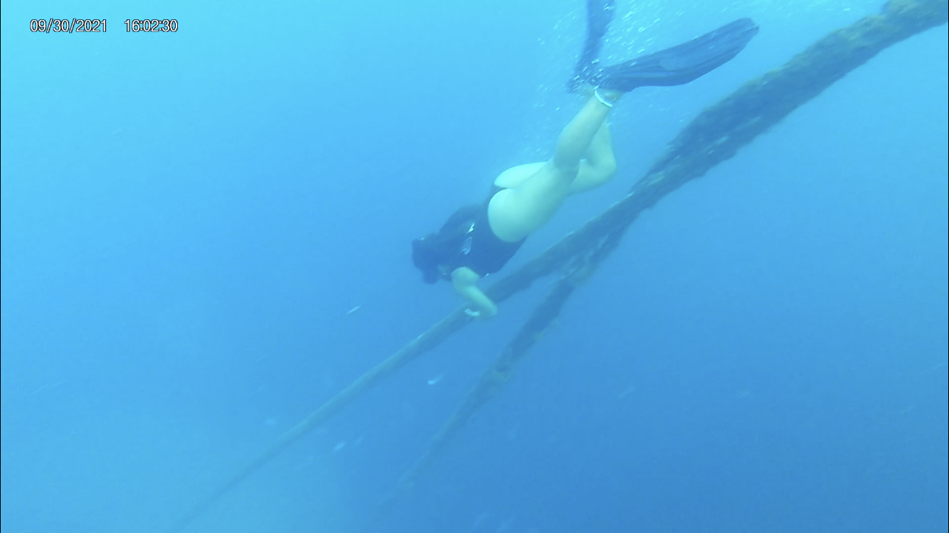 Photo 15: Lucia diving down the mooring line