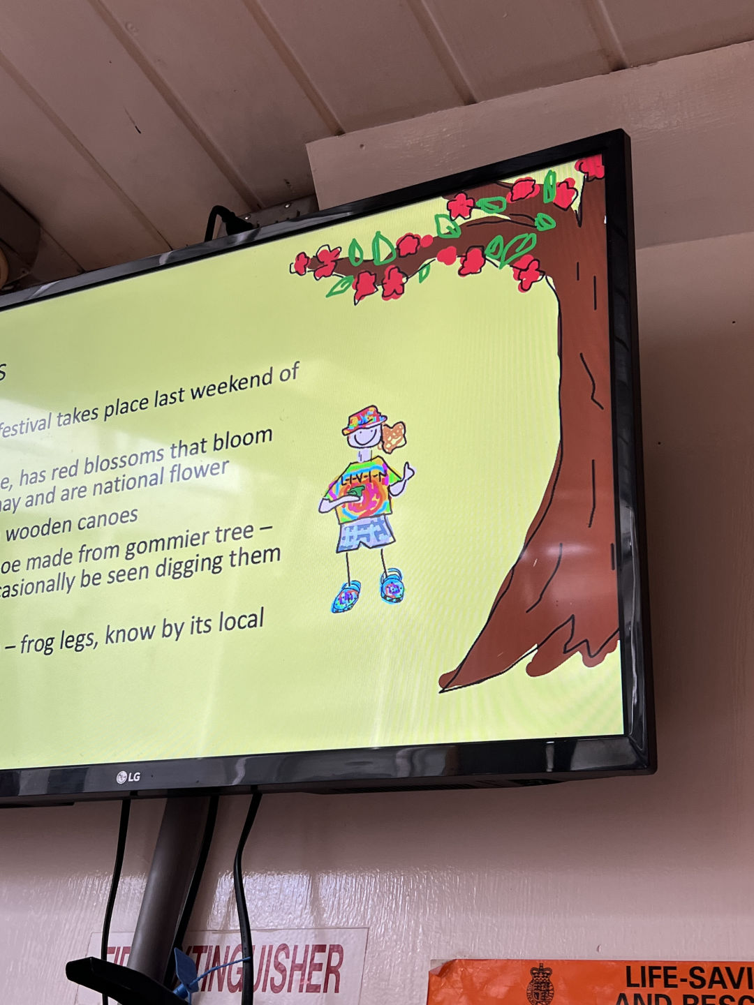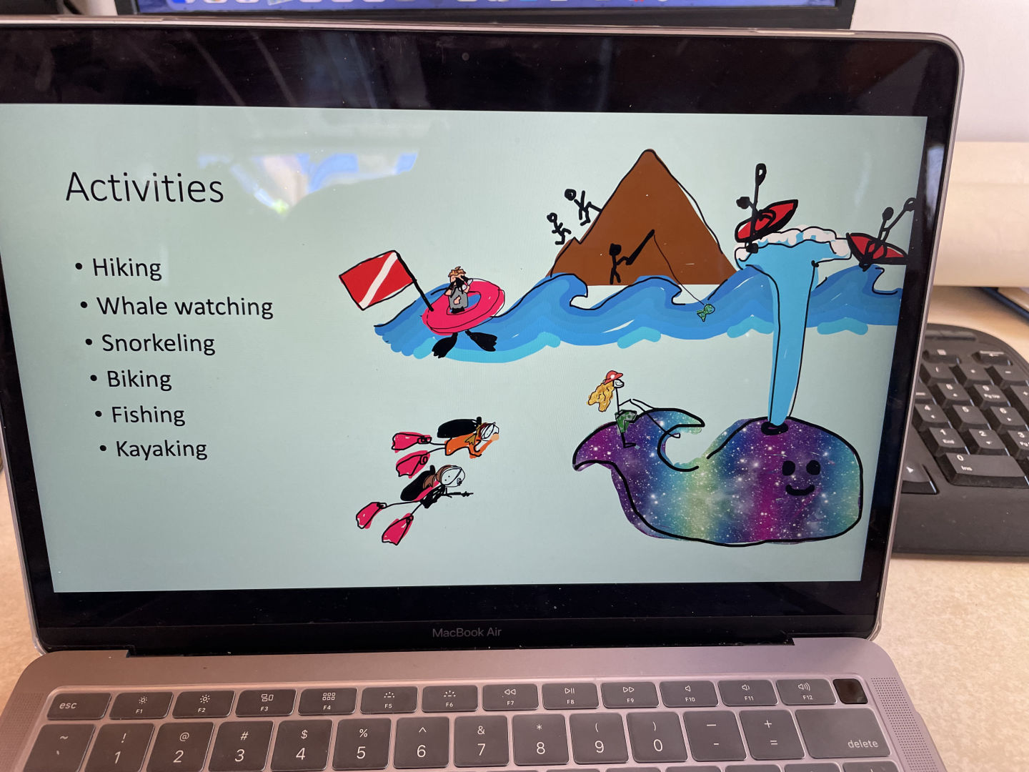 The morning started off with a beautiful sunrise before jumping into a day of classes. Heather started the morning off by teaching about the Coriolis effect and winds that impact ocean circulation and are especially important to life on a sailboat. Then Freddie taught a seamanship class where the crew learned about VHFs (radios) and how to use them properlythe rest of the morning consisted of swim time until our delicious tofu bowl lunch was served. Now that everyone was fueled and ready for the afternoon, it was time for Marine Biology. The crew learned about the continental shelf and the open ocean and all about the fun organisms that inhabit both ecosystems. Many discussions were had about the dolphins we’ve seen on past passages and the hope of a future whale sighting. Marine Biology was followed with a country presentation by Allie K, Amelia, and Alaina about our next island, Dominica. They even included drawings of each crew member so we could all picture ourselves on the island (pictured below is the slide with the staff adventures). The rest of the afternoon was study time/research project time, though I believe most used the time to catch up on laundry or go for another swim, and the evening wrapped up with passage prep to prepare the boat for our voyage tomorrow and another amazing meal from head chef Alaina and her sous chefs Selin and Mike.