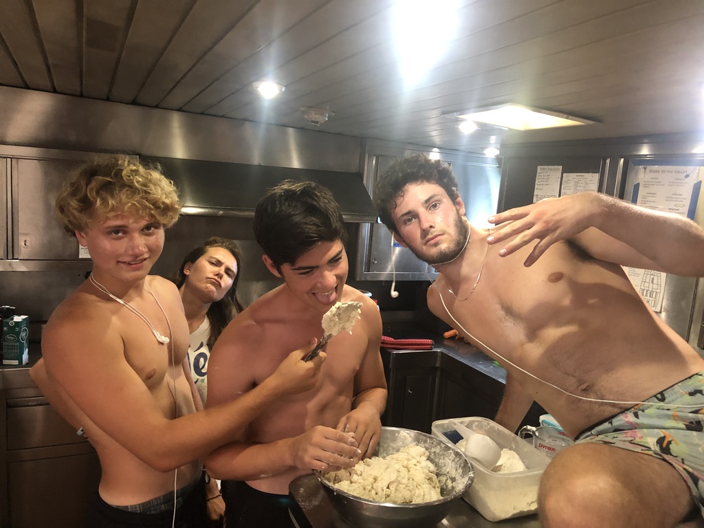 3. Sam, Brian, Mikey, and Ethan getting serious in the galley