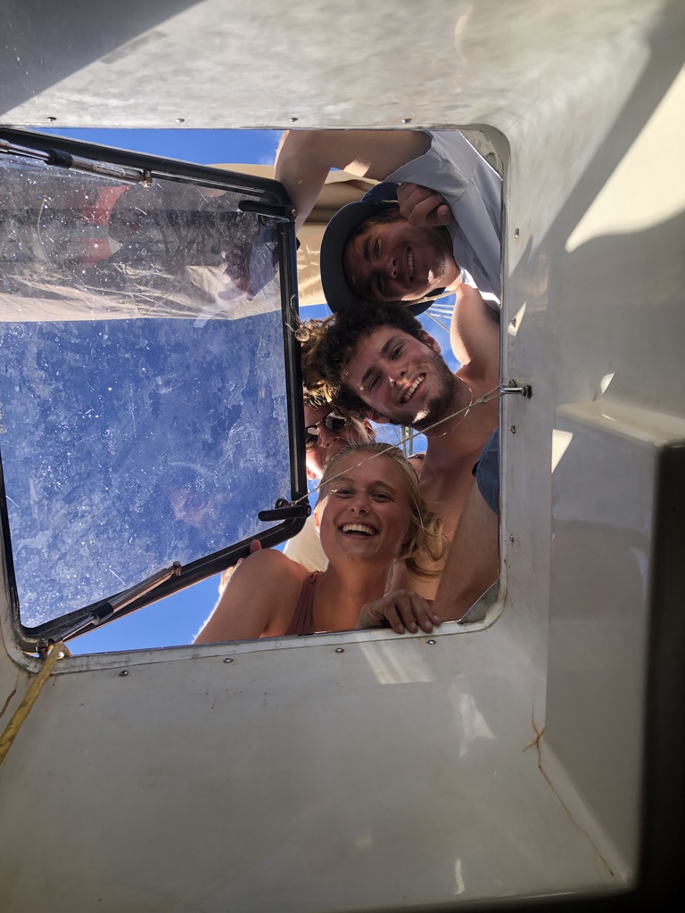 4. My view of Liam, Julie, Marion, and Brian through the focsle hatch (creeps)