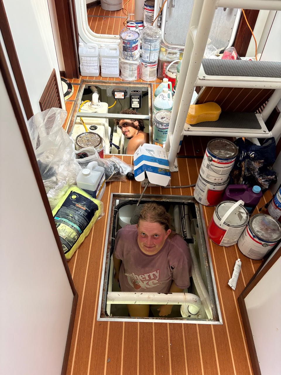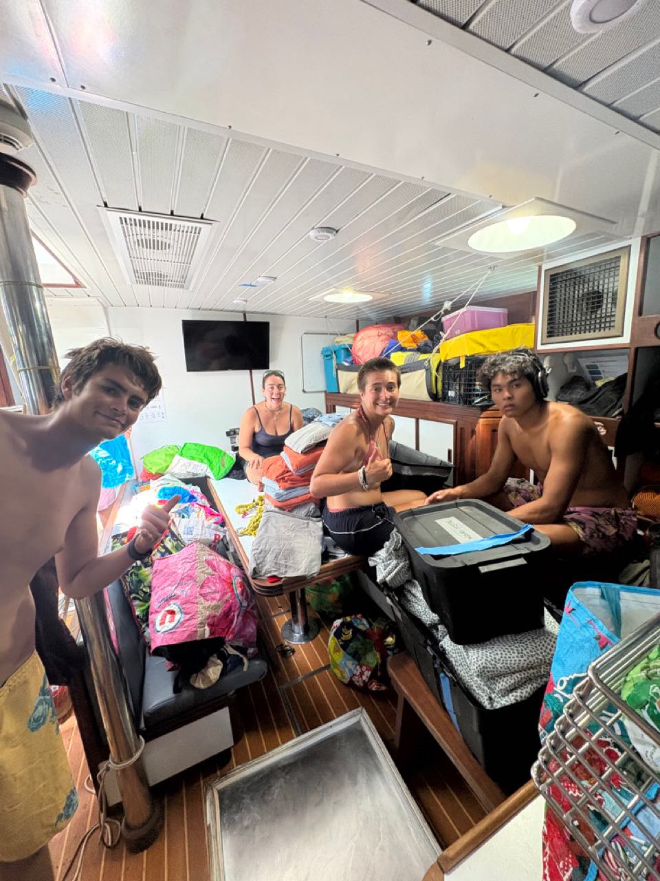 Down below: every bilge was emptied, scrubbed, and dried. Students also gave the galley some love, and some students even climbed in the fridge/freezer to give those spaces an awesome deep clean.