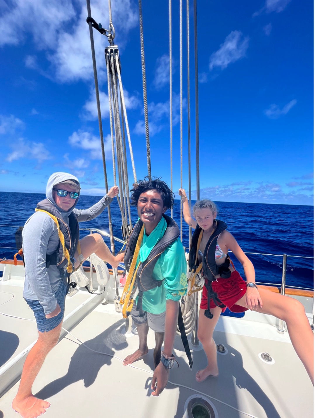 The calm water made it easier for me to do my laundry, which I am very happy about. The time went by very quickly. And suddenly it was lunchtime! (I totally didnt spill my plate). Anyways, after lunch, we ended up raising some of the sails because the forecast said that the wind was going to pick up soon! After that, we had nautical science class, where we learned things related to navigation. After class, we sadly had to bring the sails down because the wind was not in the mood to cooperate with us. After our hard work, we were ready for dinner! Since I am skipper today, I got to come up with a squeeze question. During the squeeze, we all hold hands and say what we are grateful for as well as answer the squeeze question. My question was: If you could volunteer in any country, which country would it be, and what would your volunteer position be? Honestly, the highlight of my day just happened. One of the staff members brought out their speaker, and we were having dance-offs! (I am the undefeated champion, if anyone was wondering. Anyways, that basically sums up the day! The day ended on a high note, and Im going to get ready for bed since my watch is from 4 am-8 am tomorrow. (Totally going to have a watch team dance-off).