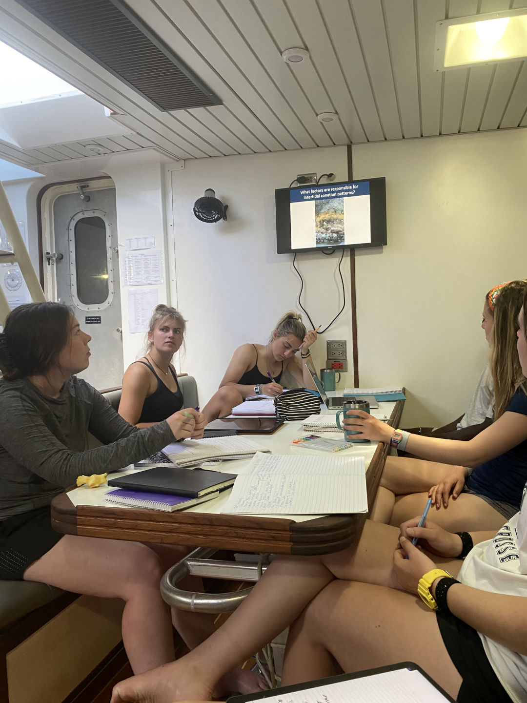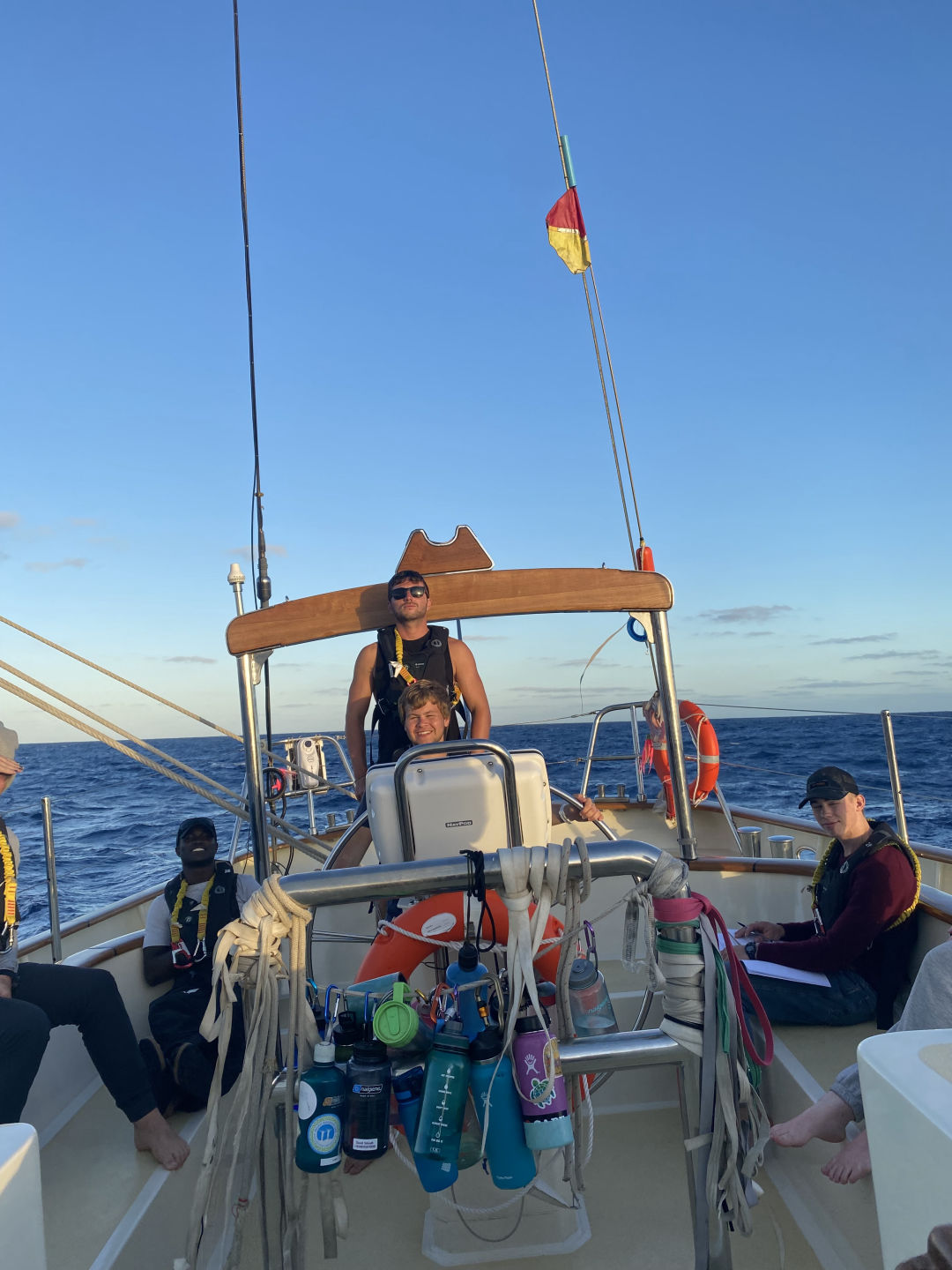 I don’t think that I’ve truly comprehended that we are sailing across the Atlantic. Every morning when I wake up, I am somehow surprised by the lack of land in sight. Walking up on deck for my 8 o’clock watch this morning, I was greeted with 360 degrees of just horizon. Now, it’s truly incredible, but I’ve found if you think about it too much, it is truly enough to make you seasick. Talking about seasickness, all of our recent patients seem to be on the up and up. The wind has calmed down some, which is sure to be a contributor, but it sure is nice to see everyone sleeping in their own beds instead of the saloon. My watch started with us putting up the flying jib…. which we then took down less than an hour later. Hey, it’s all good practice, right? About halfway through my watch, I left for my PSCT course, where Freddie taught us all about how to use different light sets up to identify a boat at night. I still don’t fully understand the difference between underway and making way, but maybe don’t tell him that. Unfortunately, between the PSCT course and the chefs cooking lunch, watch team 3 was left with a grand total of 4 people. Don’t worry, though, because they crushed it even if they were missing their best member (me). After lunch, we had a marine biology class taught by the one and only Ben, where we learned basic ecology and worked on our ID log books. Next was Gabe, teaching us how to be right and proper seamen. He did this by showing off his drawing skills in a number of diagrams where he attempted to explain every piece of rigging on Argo. I enjoyed that, as it made me feel more confident in my knowledge of the boat.