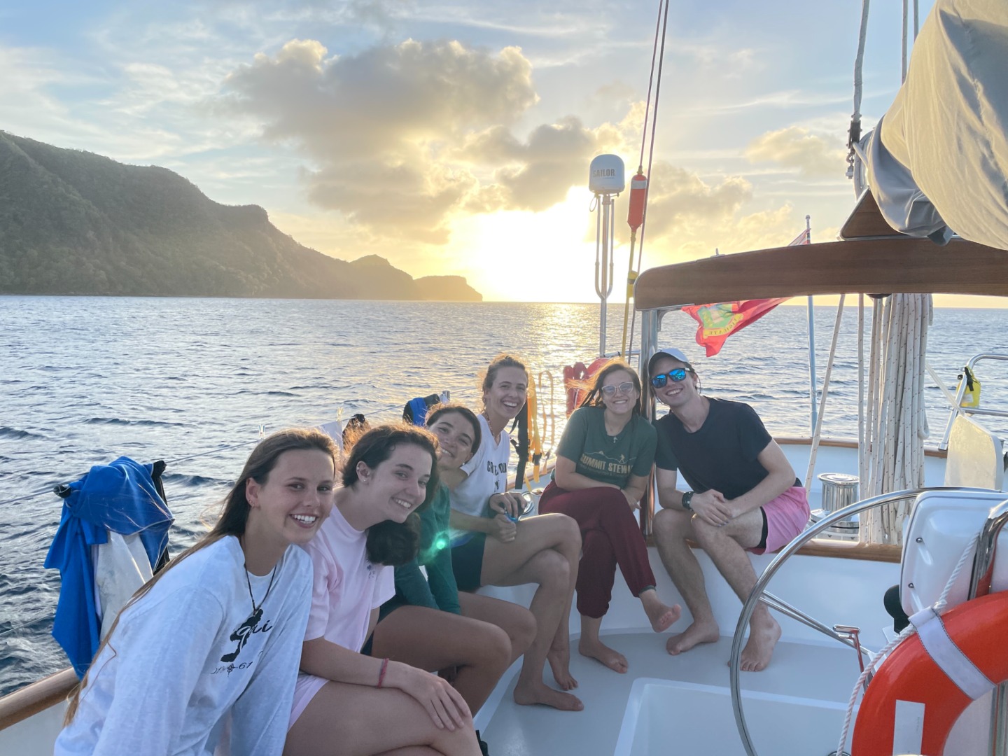 Today was an amazing day for us to finish up our VHF certifications with our VHF exam. I’m sure many are excited that our acronym for remembering MAYDAY calls, MIPDANIO (in an Italian accent), won’t be said every five minutes. After our exam, we had a Marine Bio lecture in which we learned about worms, bryozoans, and mollusks. After that, everyone had some free time as people who were diving a fish ID dive in the afternoon set up their dive gear. Diving has been going great as we are slowly making our way through the advanced certification course, one beautiful dive at a time. Anthony came back from his night dive last night in perhaps the best mood I’ve ever seen, which is saying something while exclaiming, “that was the coolest thing I’ve ever done in my life.” It just goes to show how a little time underwater can have a big impact on people. Head chef Sonnet and sous chefs Colm and Shona worked tirelessly today to make us a delicious veggie stirfry for lunch and the best pasta we have had on board yet for dinner (three people said it was their appreciation for the day, a record). Many people took free time this afternoon to work on their Literature Review papers for Oceanography, whose due date is fast approaching, in the saloon and have a few laughs and get some great work done. Study/work breaks in the Caribbean are truly refreshing and a great way to stay focused on our responsibilities. The question tonight was, “if you owned a boat, what would you name it?” Some great answers included Sonnet’s of “Lil’ Toot,” Adelaide’s of “Yachta Yachta Yachta,” and Jordan’s of “Wayward Son,” Another amazing day onboard Vela in what has become one of my favorite routines of my life.
