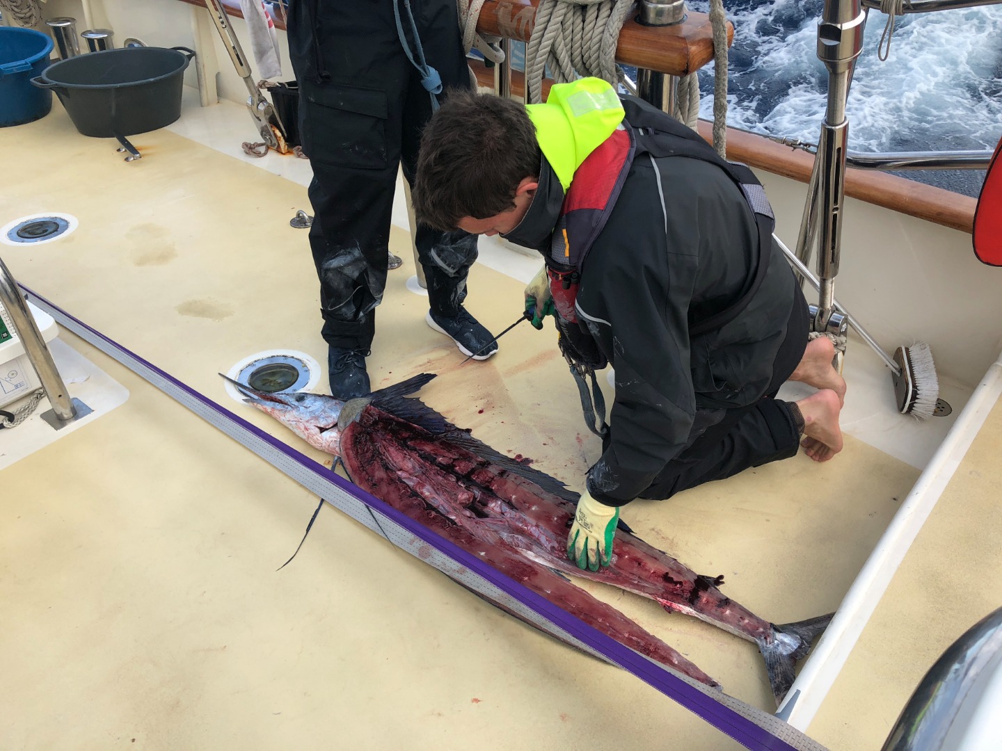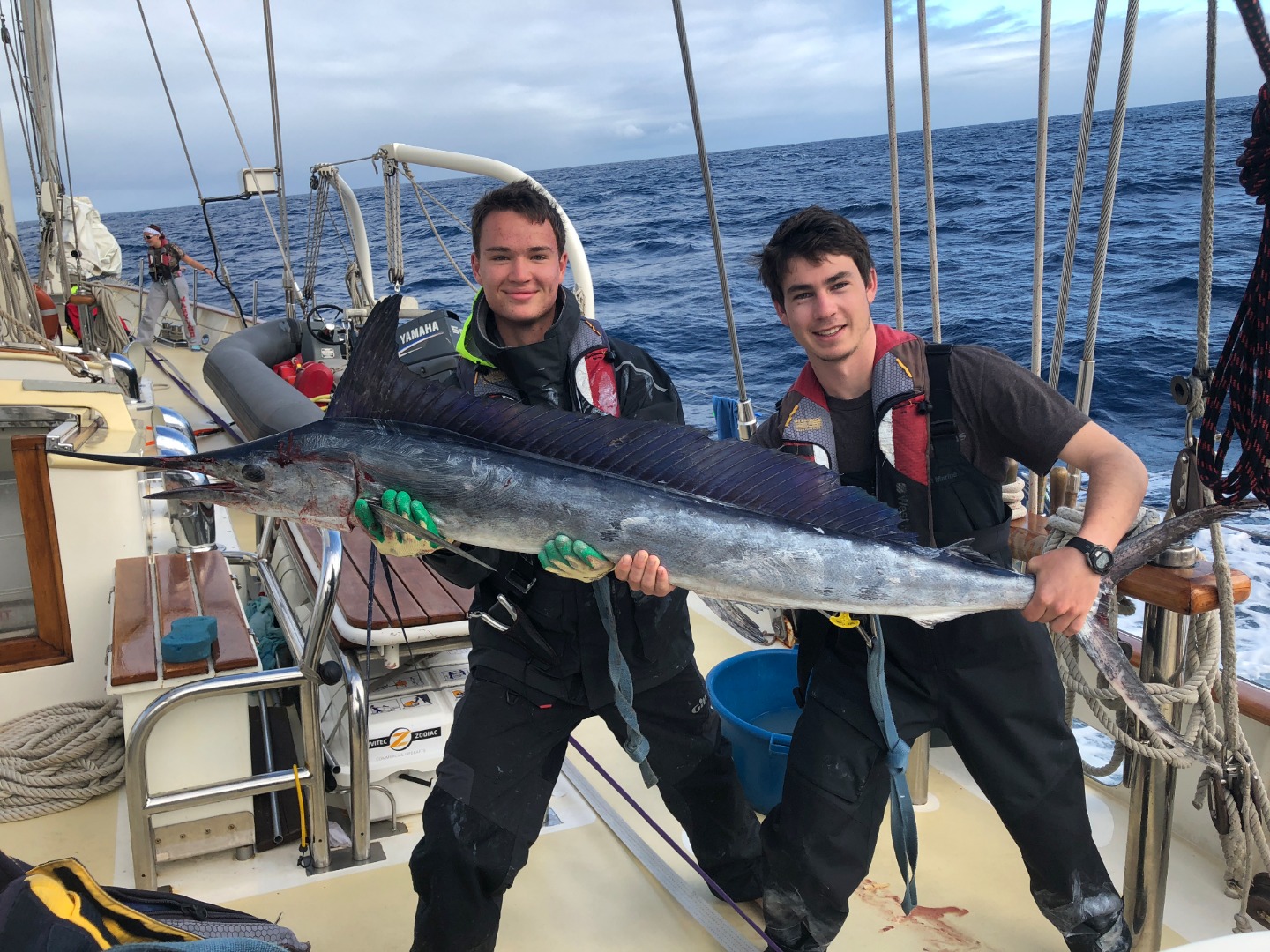 Well, Mom, this morning, I can finally say mission accomplished. In the last six days, Ive been dragging myself (and my rod) out of my bunk and up the companionway with aspirations to discover what swims beneath Argos hull. Today, at approximately 9 am, the culmination of my trips purpose was fulfilled. I woke to the sound of acoustic swells and the screaming drag of my accurate ATD. Being 200 nautical miles offshore means the chance to connect with some incredible pelagics, and today, I did just that. I caught the fish of a lifetime: a Long-billed Spearfish. The first glance of color revealed glowing pectoral fins and a saber-like snout. Initially, I thought I was staring at my first Marlin. It wasnt until leading the fish that it became clear it was so much more. The Spearfish is coveted amongst the angling community as the most elusive of the billfish species. So little is known about this creature. What Argos crew now knows is this species doesnt share the flesh of its gamier cousins. It was phenomenal. It fed the entire boat firsts and seconds for lunch. Landing this Spearfish was something you had to see to believe. It was a team effort and one hell of a team clean-up. Ive never been so anxious for my next 4 am watch 😉