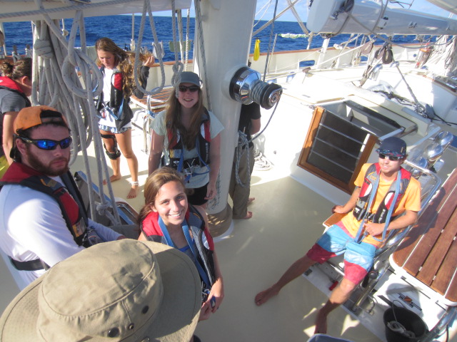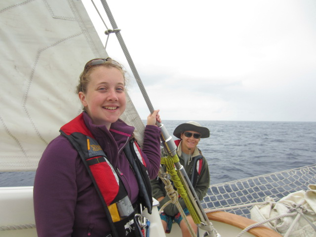 Each day of freezing saltwater showers so far has been announced with a declaration of “it builds character” and a follow-up reference to Calvin and Hobbes. The deck has been slowly swarmed by reluctant students, each carrying his or her towel and a painfully obvious expression of dread, each knowing full well how cold it will soon become. Those ten minutes have scared us all for weeks. Today, though, with the wind blowing as fast as ever and Argo as far north as ever, we all appeared remarkably calm. Unusually so. Had the character-building finally worked? Were we truly sailors now, ready to face any situation in front of us? (that is, assuming nothing on the high seas could be more terrifying than cleanliness). It certainly seemed a possibility. Our recent film experience, chronicling an around-the-world sailing race, presents another option: a “third solution,” one quite different from increasingly warm water or increasingly courageous students. We might have gone crazy. Just as Donald Crowhurst attempted to fake his circumnavigation of the world in his ’60s race, presenting false coordinates until he eventually came to the conclusion that he had ascended to become a “second-level cosmic being,” we might, too, have gone a bit bonkers over the course of our journey. Dinner today featured students hosting an entire conversation over a fake telephone, and a deep-rooted fear of a “snack thief” (almost definitely a series of snack-related confusions rather than a minor crime with forethought) has forced numerous crew members into storing their snacks inside their shirts or beneath their pillows. I spent a full twenty minutes trying to figure out how to work a television that we’ve all been using for the entire trip. We purchased enough coffee for each person to have over five cups a day, despite knowing full well that we wouldn’t need it. Worst of all, today we decided that English food is not only acceptable but actually quite delicious. So yeah, we’re long gone. It’s possible all true sailors are crazy, and none of us are quite sure, but the fact that we are now having fun while dousing ourselves in the coldest water around, or coordinating our pumping of the heads (bathrooms) to pop songs, or no longer questioning why we use a Mercator projection for our charts suggests that we’ve truly found a home here, and you’d best prepare yourselves for when we get back, hose in tow, cosmic being level two achieved.