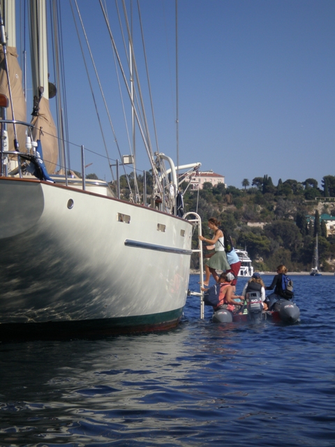 The day started with a train ride to Monaco to visit the Oceanographic Museum for OCE and OCB field trips and shore time to explore Monaco. We saw lots of interesting creatures and historical pieces at the museum and flashy cars and yachts around town. The crew met up with Beaker and Dan at 1500 to make our way back to Argo for voyage prep. We prepared the sails, deck, and dinghies in good enough time for shower time. The water in the harbor is salty but refreshing. Our chefs made us delicious fried chicken and veggie meal which we enjoyed after discussing our favorite part of the boat during the squeeze. After dinner and clean up, we found out our new course of sail is to Porto Venere, Italy, and got underway and out of the harbor around 2100. Watch three took the helm, and the crew enjoyed the 20-knot breeze and bright moonlight. It is nice to be sailing again. It was also nice to have Jim Stoll, his son Jason, and Travis join us.