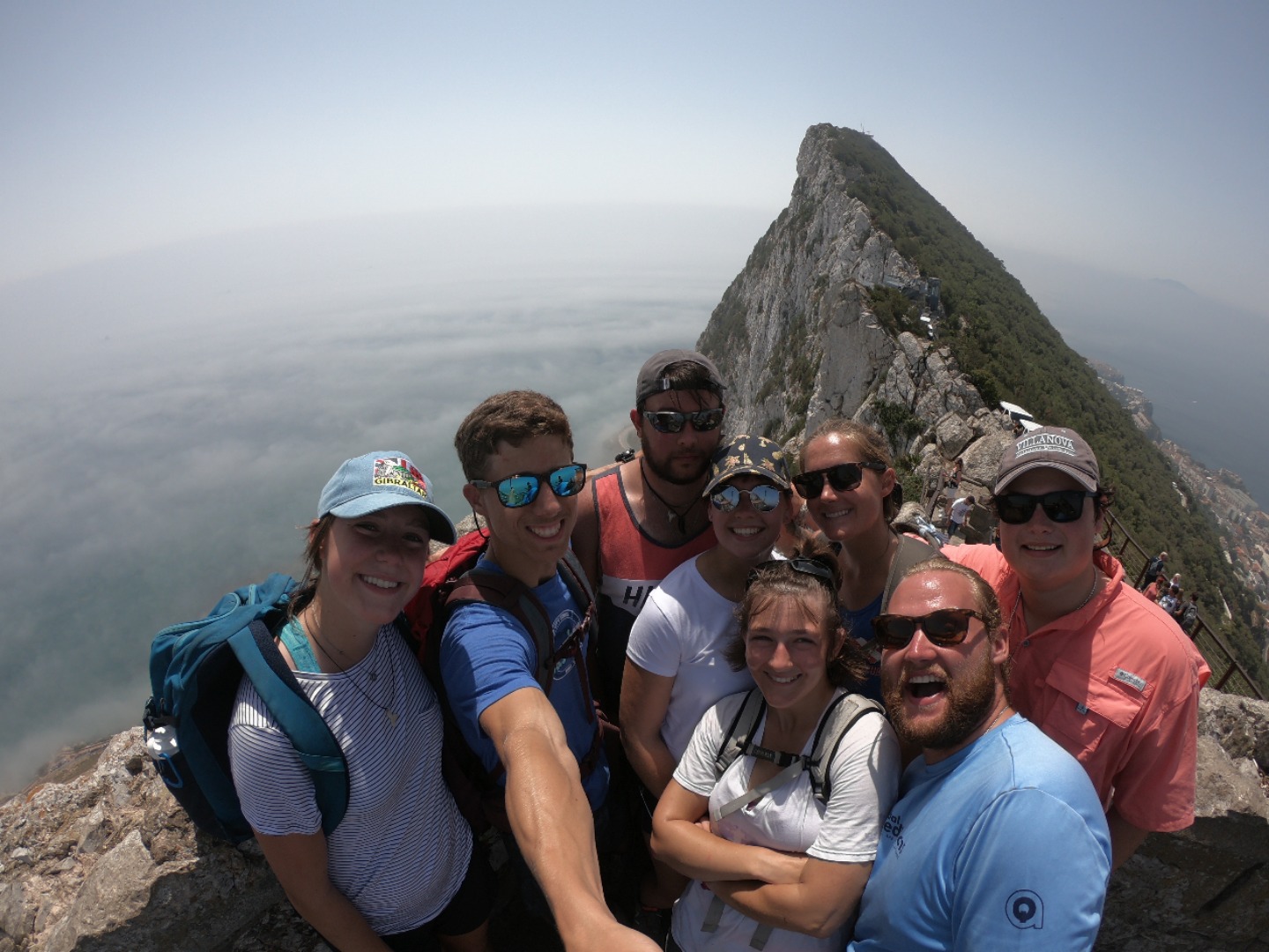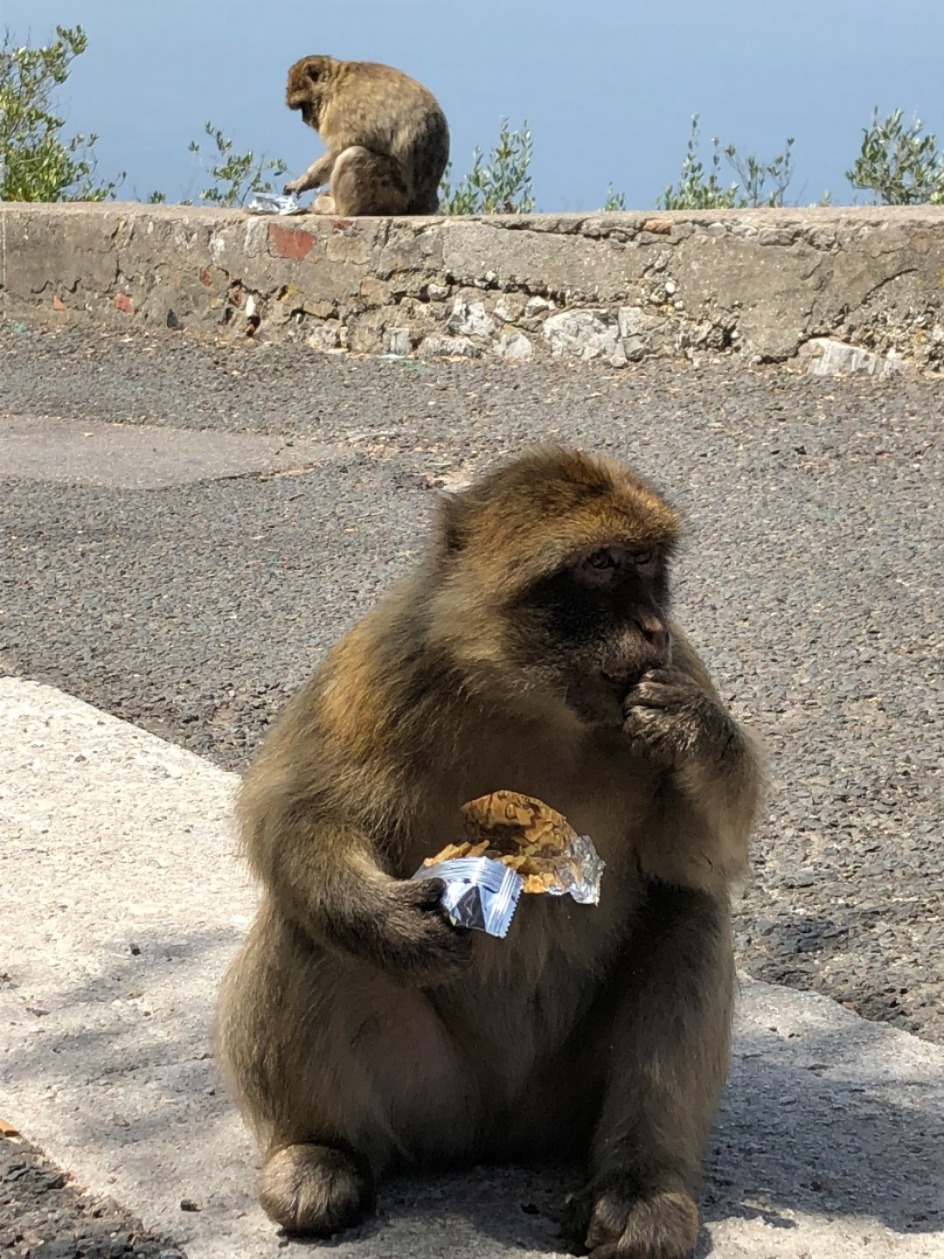 The day started early for our hike up the rock of Gibraltar. Wake-ups weren’t easy after a late night out, but the prospect of monkey sightings helped. The hike began with a steep walk through town, and our arrival at the gates of the park felt somewhat lucky after Griffin’s navigation. We stopped for ice cream almost immediately after beginning our hike. Since living on a boat has given all of us the cravings of unsupervised nine-year-olds, this stop lasted much longer than it should have but was effective in keeping everyone’s spirits afloat. Our first monkey encounter came as we approached the top of the rock, where we witnessed a monkey robbing a helpless young couple of their backpack and snacks. We were all laughing too hard to help, except for Nazz, who was advising the victims to “establish dominance!” When we arrived at the top, we broke off into smaller groups to explore the rest of the rock, eat lunch, and play with some monkeys. The rest of our day was unstructured. Some of us decided to go to the beach while others spent time going to the grocery store or just walking around Gibraltar. After meeting back at the boat at 7 pm, we were free to get dinner and drinks off the boat. By the time we returned, most of us were about ready for some sleep after a long day.