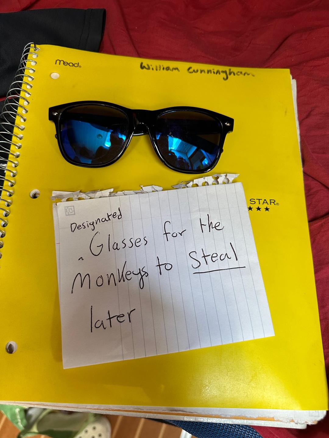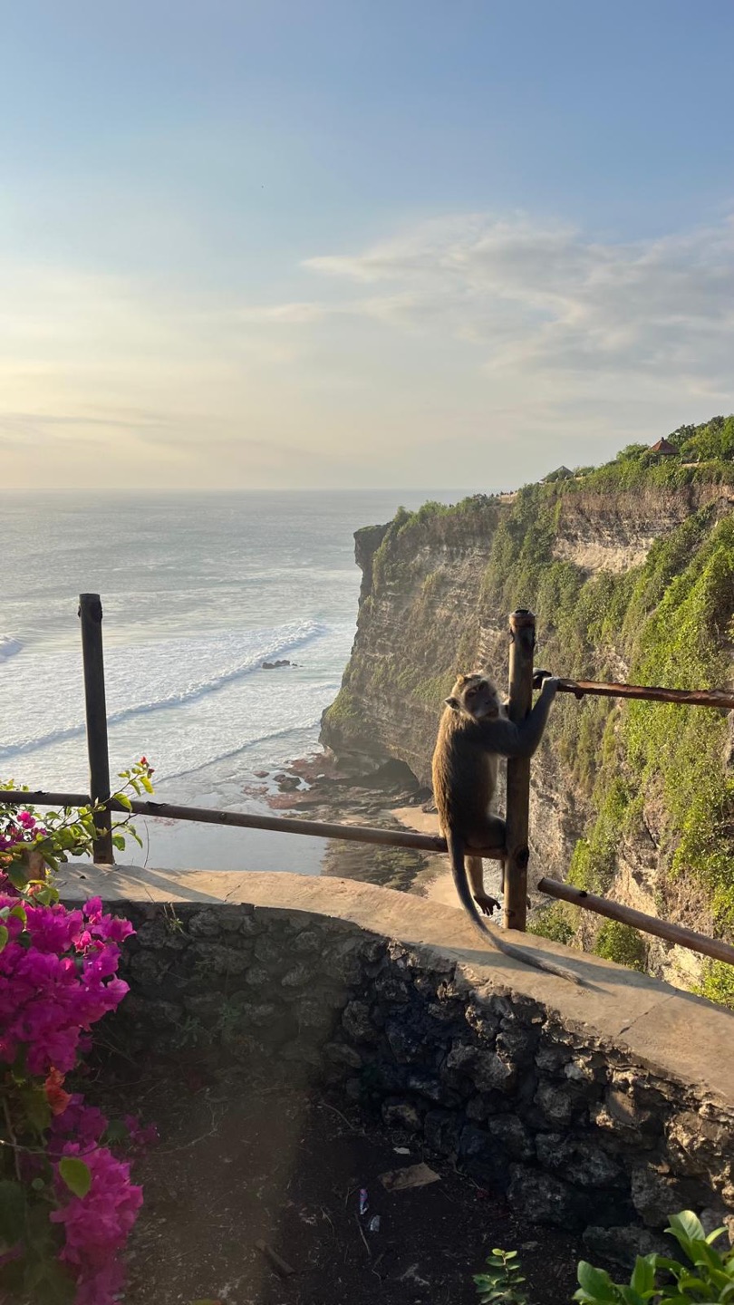 After boat appreciation, we hopped on a bus to go to what is colloquially referred to as the monkey temple, formally known as Kecak Uluwatu. Before entering the temple, our bus driver told us to beware of bringing personal items like sunglasses because the monkeys would steal them. While I had set aside a pair of designated glasses for the monkeys to steal earlier in the day (photo attached), I ultimately decided against this plan to interact with the monkeys because I deemed it too much monkey business to get them to interact with me forcibly.