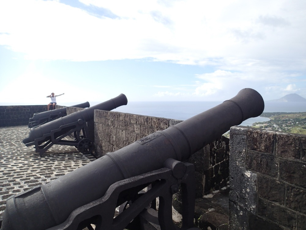 After spending the bulk of the last two days on passage, it was a welcome sight to wake up to the lush, mountainous island of St Kitts. With black-sand beaches, crystal clear waters, and a dormant volcano overlooking us, it’s a far cry from the tranquil surroundings of the BVI’s. Today kicked off with boat appreciation, a chance for the crew to clean and tidy Ocean Star after a passage. Fortunately, the rain clouds that briefly threatened a mass soaking stayed away, and the sun grew stronger as the day went on, allowing the chance for a quick swim before a well-earned lunch. The afternoon gave us a chance to explore St Kitts and, more precisely, hike up to Brimstone Hill and the old British fort sitting splendidly atop. After a semi-wet landing, jumping off the dinghies onto the beach, we began our walk through the town of Sandy Point and up towards the top. The path was initially lined by vine-covered trees before winding above the canopy to reveal the first stage of the fortress and the magnificent views of the vibrant blue Caribbean waters. Built to defend against the French that, in the 18th and 19th centuries, occupied the other half of the island, the fortress had the perfect vantage point. To the West, you could see the island of Statia; to the East, Nevis and Mount Llamuiga North; and the Caribbean Sea to the South. As a UNESCO World Heritage site, the fort was in immaculate condition, with the majority of the old structures intact and huge cannons capable of firing far and wide at every turn. After spending the best part of 2 hours walking around various parts of the fort and savoring the view, we decided it was probably time to head back down. For a fair part of the hikes up and down, the lads in the group had been attempting to attract monkeys with an array of calls, and on the way down, our perseverance paid off with a troop of Red Vervet Monkeys in the trees. It was a massive treat for everyone and concluded a brilliant afternoon in St Kitts!
