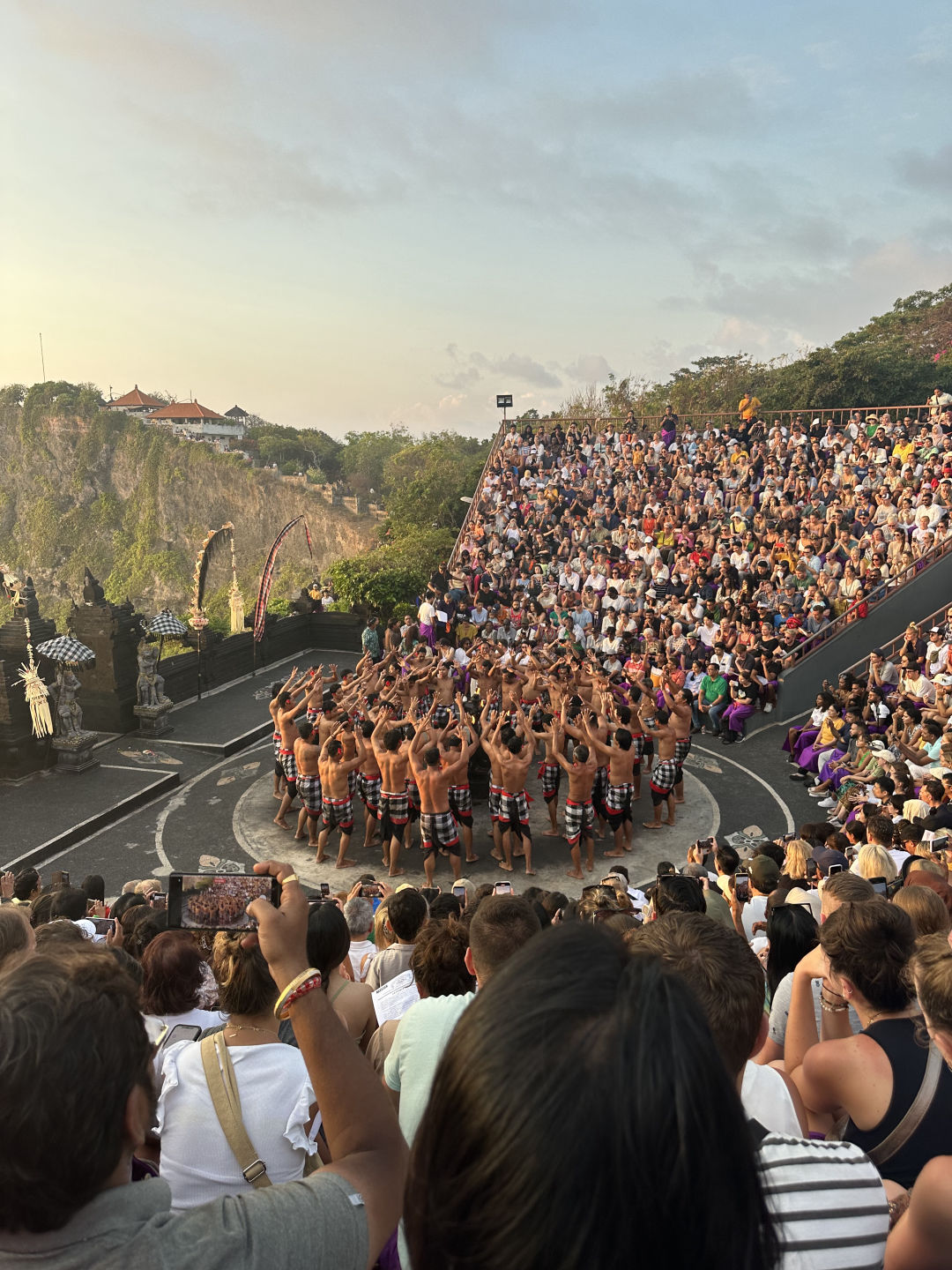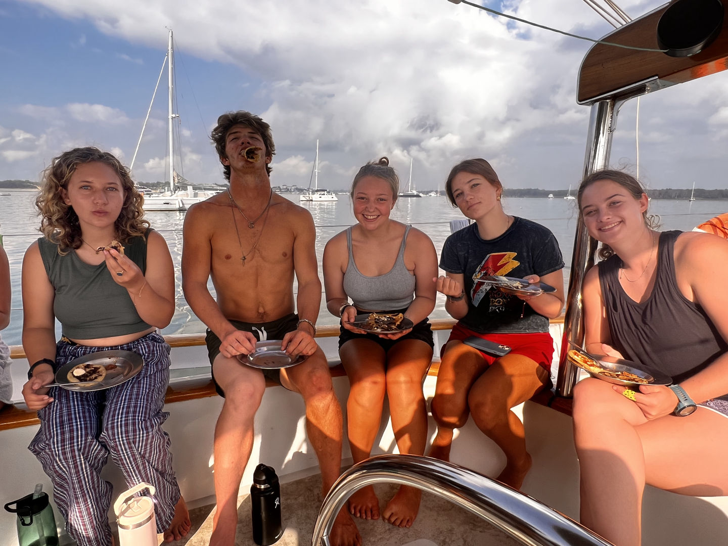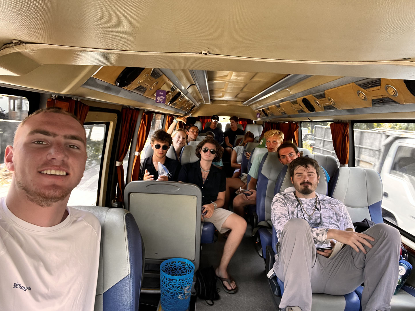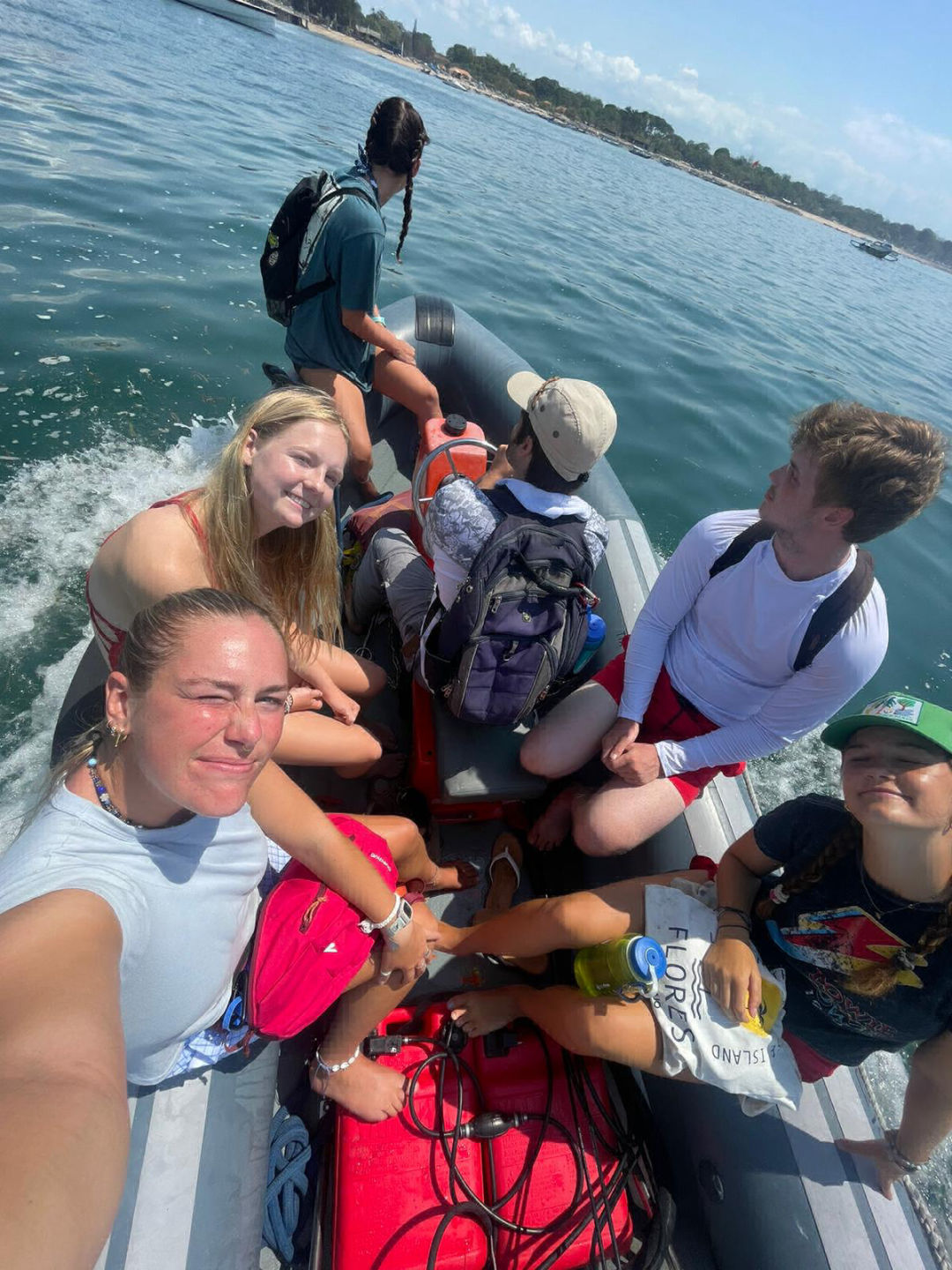 After a delectable cheesy egg Breakfast with optional chocolate protein powder and creatine out of the 3-gallon surplus barrel, Finn purchased on the previous day. Out in Bali, the crew studied the science of the ocean before snagging a slice or two of some day-old pizza from Costa to get some energy for the long journey ahead. The bus ride started with a mix of open-mouthed sleepers and party people listening to everything from Jimi Hendrix to orchestra music, and all was well on the way to Uluwatu. The picturesque thatch or “alang-alang” roofs mixed with the intricate stone altars decorated the edges of the high cliffs sitting hundreds of feet above the waves, which were FIRING before sunset. As the big orange flame in the sky was extinguished by the waters below, a new fire was lit in the center of the floor, and all eyes became fixated on it as the monk in all white began to bless it and started the ceremony. The crescendo of rapid-fire chants soaked the Cliffside in a sonic trance, and all eyes were magnetized to the accentuated movements of the dancers, which perfectly echoed the tones of each character in the Ramayana. The dance was done to perfection, so dense, rich, and yet deliberately balanced like baklava. The humor, the pain, and each emotion the crowd felt during the dance was a step along the journey of a great tale about the lover and the beloved being separated, the battle between light and dark, and the eventual reunion and magnificence of coming back home. After the applause, we began our journey back home, but not before stopping by an unreal dinner venue, which we had rented out and enjoyed thoroughly until we were ready to get back to our bunks. After our arrival and some much-needed showers, as bedtime approached, the night had disaster looming in its plans. All of a sudden, as a few were listening to tunes and reading on the chart house roof or bow, an ungodly smell wafted over the harbor. Panic ensued, and the boat was put on lockdown. Not everyone was lucky enough to get into the airtight cabins in time, and unfortunately, we suffered the casualties of Wes and Nico. (EDITOR’S NOTE: Jackson is quite the illuminating author, but the situation he is describing is a fart smell on deck). Apart from that, the day couldn’t have been any more spectacular.