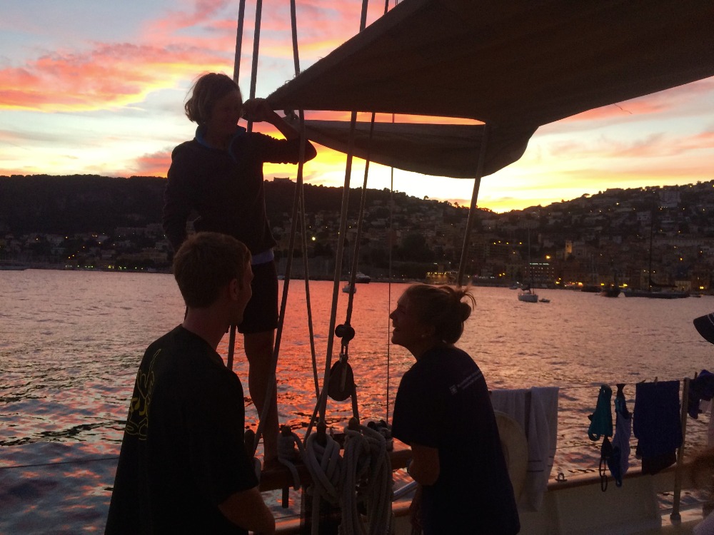 When the sailors had finished checking out the museum, we met at its restaurant that looked over the Mediterranean. We mingled and then went our separate ways to explore Monaco. A group that I was in carefully selected a place to eat, but looks can be deceiving. The meal was saved with two delicious scoops of ice cream. After, we met to sprint to our train back to Villefranche. The groups broke off again before meeting the dinghy to arrive back at our home, Argo.
