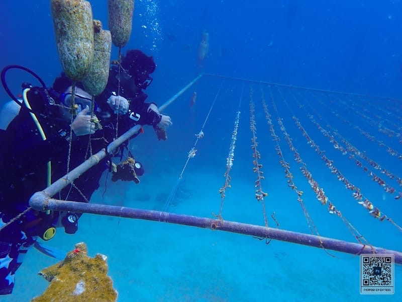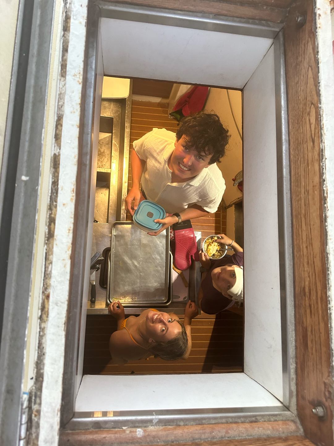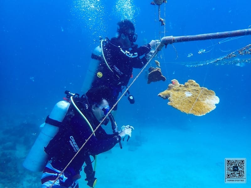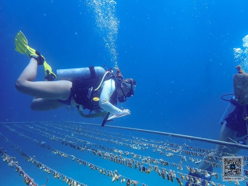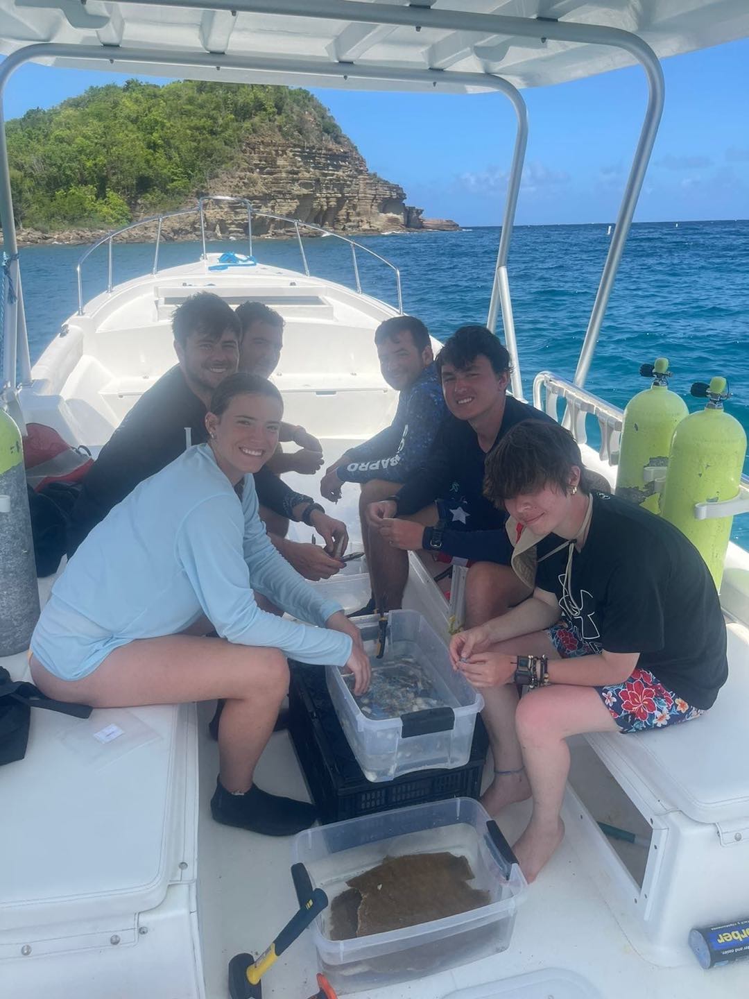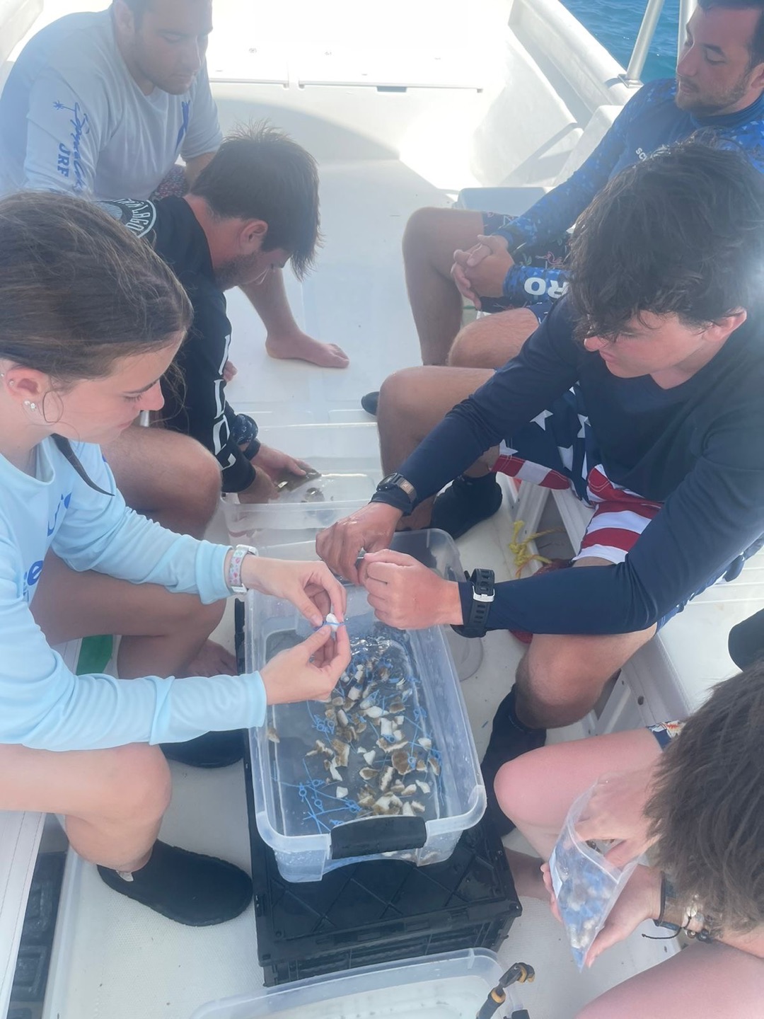 Whats up, guys? To start today, I woke everybody up at 7 am for a delicious coffee cake breakfast. Then, we all started the day strong with some diving. While half of us continued with getting the open water diver certifications, those of us already certified began working on our rescue diver certification. Myself and the other certified divers got to enjoy a bit of beach time after finishing up with rescue diver videos. The sole purpose of going ashore is to get some nice cold water. After a nice hour of beach time, everybody returned to the boat to eat some Mac and cheese for lunch. Following lunch was a bunch more diving! The open water divers got to dive deeper today under the boat for their first two open water dives. Our certified divers were given the opportunity to help build and see the coral trees near our ship. We worked on tying some coral fragments to clips, which were then taken underwater to the trees and clipped on. This area went through a big coral bleaching last year. The group we worked with had harvested the types of corals that survived the bleaching, those being the ones we fragmented and planted. The goal is to see if these corals can remain resilient and be planted elsewhere later on. After the open water divers and our group of coral farmers returned to the boat, we took our daily ocean showers. Chicken tikka masala, rice, and naan for dinner followed our showers. While Im typing this, everyone else is completing their jobs for the day. Now, we are all going to meet for our first introduction to academics! Follow along for whats next!!