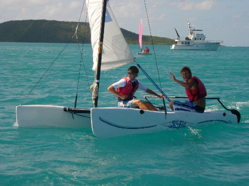 Today, we had the Basic Cruising and Bareboat Cruising exams for people who were really serious about sailing and chartering boats. After that, we had a Hobie cat carnage part deux. It was a lot of fun. We finished the last two of our academic sessions and, overall, had an incredible day.