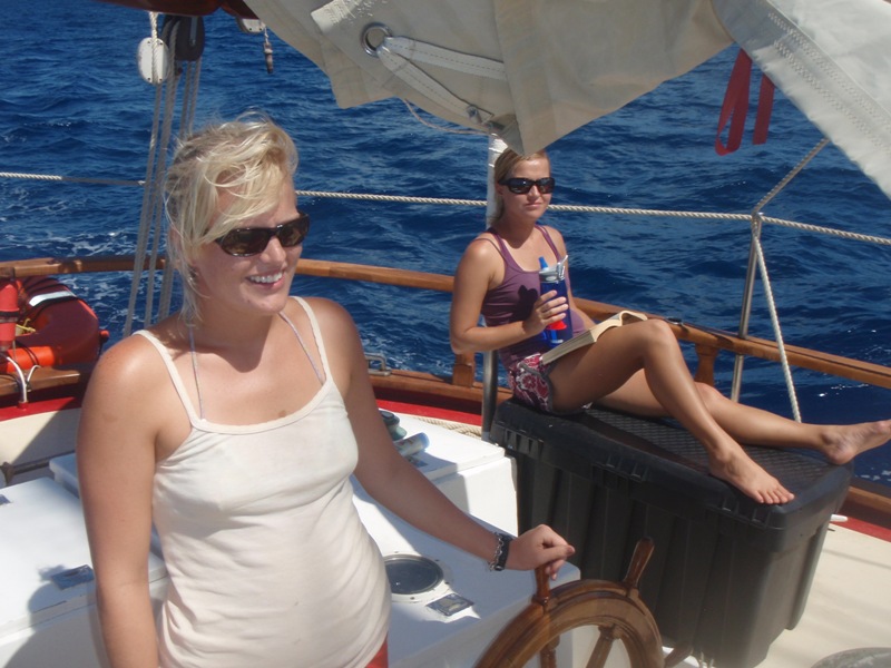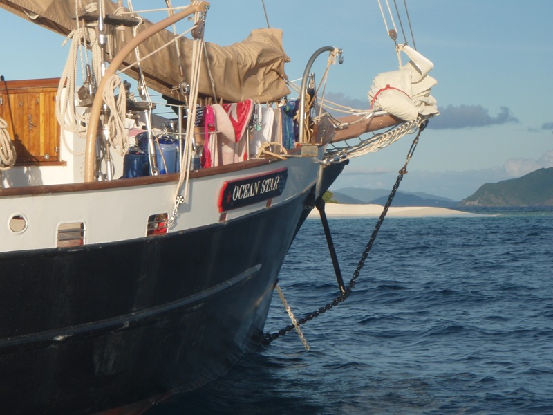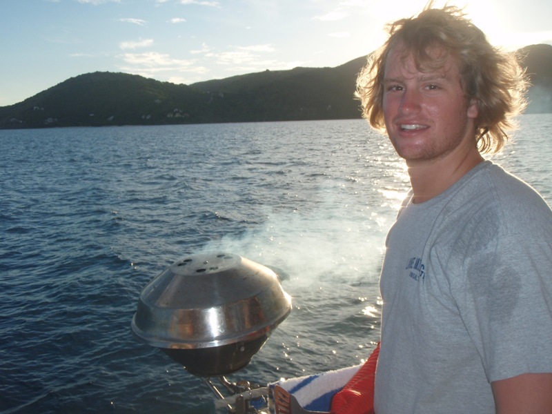 Another beautiful morning in paradise, as usual. It was a pretty chill morning; we slept in until 7:15, and after cereal and granola, we started our first class on marine biology. Still docked in Gorda Sound, we took some time onshore, made some phone calls, and found an internet connection. Today it was nice to walk on still, calm land; we all agree our sea legs are kicking in, and steady land is just awkward to walk on, though. So we were eager to get back on our ocean. I think after this week, we’re all starting to get the idea of how to live on the ocean. The future is promising; we have a lot to look forward to, and we’re all working together really well. We left the dock right before lunch. During the passage, we got to know our boat a little better with the pin rail chase. Lunch was underway as we hopped on over to Sandy Spit, a lovely little island where we enjoyed a relaxing swim and some Frisbee. Barbeque dinner was delicious, along with another gorgeous sunset. So today was a very chill day, although a very tiring one. After all, taking care of a boat while learning about the never-ending possibilities of the ocean is very exhausting.