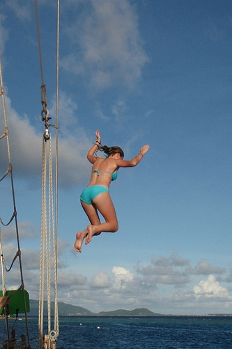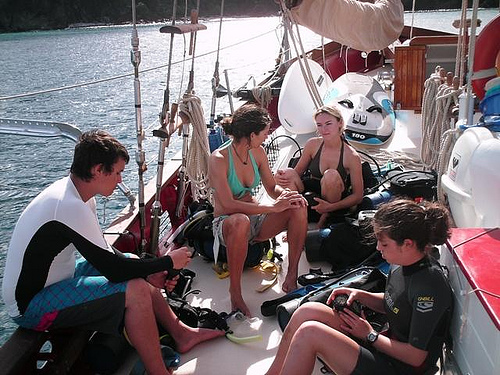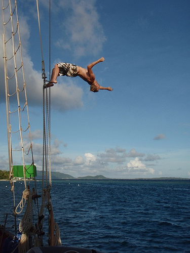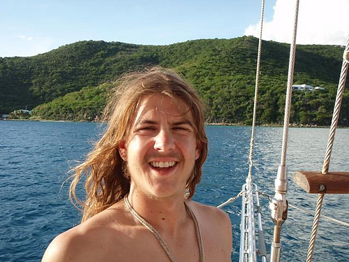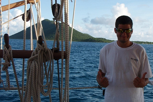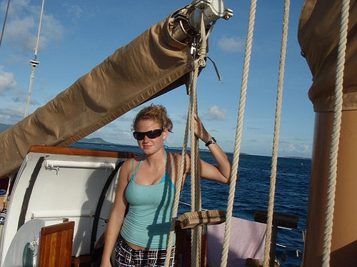 Today was nearly non-stop traveling. We picked up anchor at about 6:45 and headed out before everyone was even awakecereal on a-rockin’ and rollin’ boat in the morning and clouds all around. The weather was all clear up until we started our dives. Lucky for the divers who missed the squall, Lunch on the way to Marina Cay was a gourmet bowl of pasta and vegetables with some balsamic vinegar. Everyone was in high spirits today. Cheeseburgers were on the way. Coming into Marina Cay, there were high mountains on both sides as we carefully navigated our way through the cut. Pusser’s red roof and an empty restaurant could be seen ahead. It was pretty cool to anchor next to a resort with no one around. We had a huge covered porch on the beach all to ourselves for our classes today. Back on the boat, we had shower time, jumping into a slow, steady current to rinse off and swim. We were off motoring again, headed to West End, where it all began.
