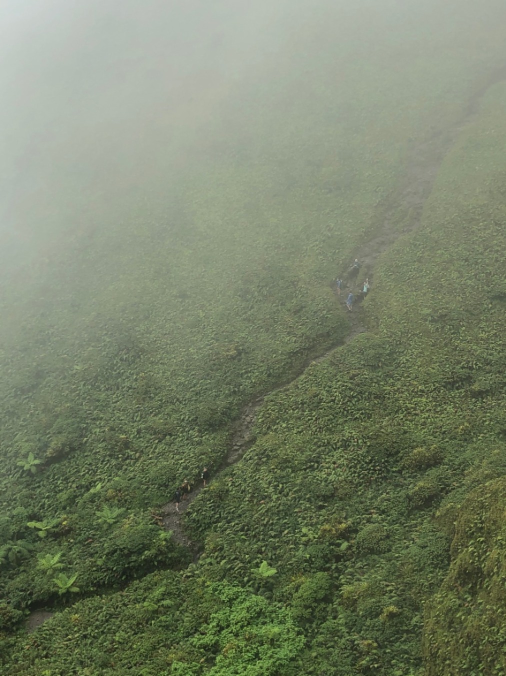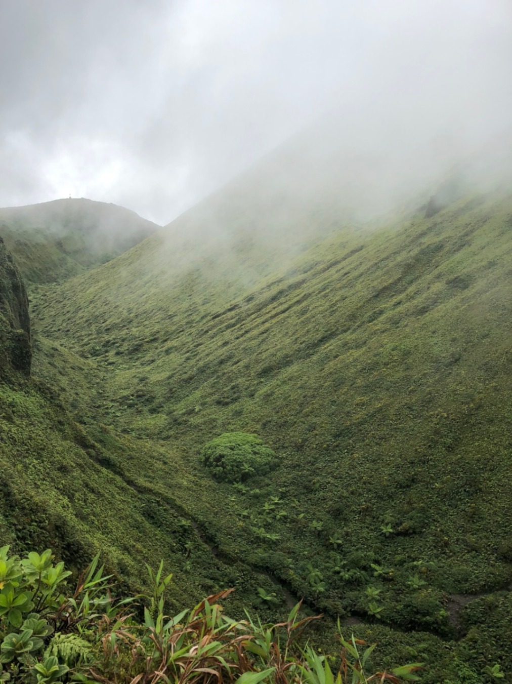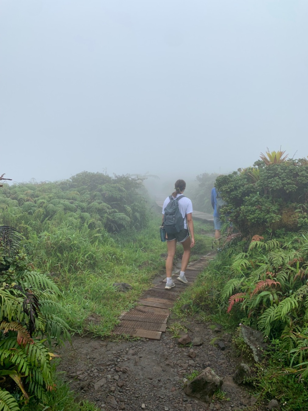 Manuel, our taxi driver, had a unique personality. I had the chance to practice some of my French with him, and he taught me some new vocabulary. Then it was time to hike the volcano. It’s been the steepest hike we’ve had so far, but I was so distracted listening to Carolyn’s stories that I never got tired of the hike. It took us around one hour to get to the first summit. It was pretty foggy and chilly. It was amazing to feel cold in the Caribbean. Then we decided to walk across the caldera and hike to the tallest peak. The views kept changing every second because of the fog, but when the sun came out, the views were breathtaking. We had lunch up there and took some cool pictures. Then around 10:30, we started heading down. The best thing was getting some ice cream at the bottom, so refreshing.