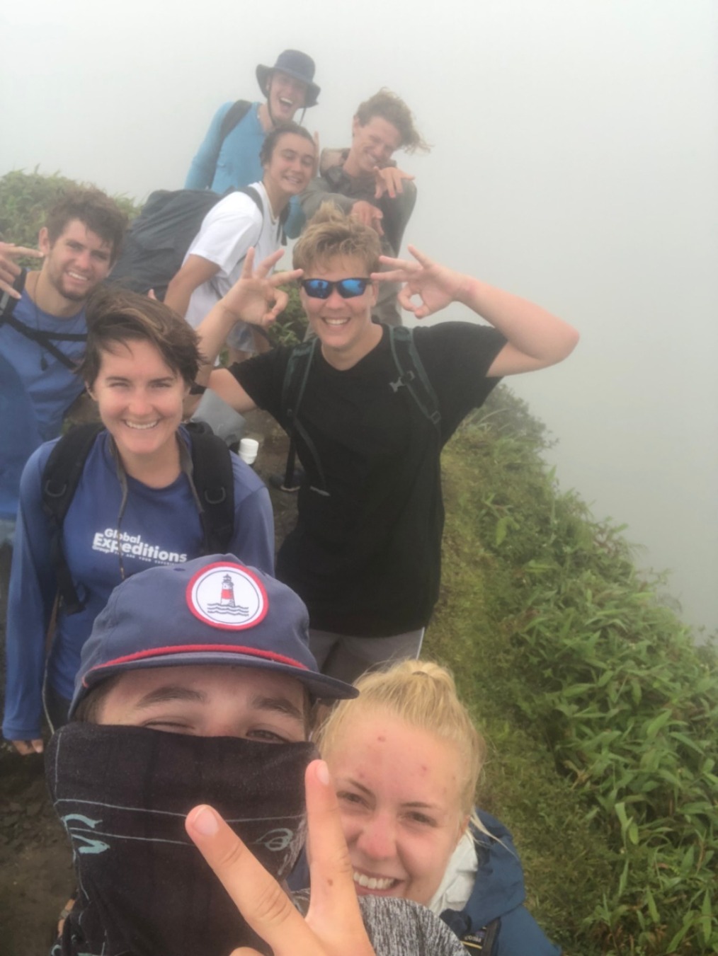 Bonjour Ocean Star! Today was an early 5:30 am wake-up because we had a long day ahead. Everyone packed their backpacks for a long steep volcano hike. After getting our stuff ready, we had delicious pumpkin bread for breakfast made by Jade with love. Although it wasn’t in our plans, we had to move the boat because some fishermen wanted to fish right where we were anchored. It was a busy morning. As some brought up the anchor, others did clean up and packed their lunch. After we moved to Ocean Star, we started doing dingy rides to shore, and I got to drive Exy this time. I was nervous but happy because I was one step closer to graduating from dingy school.
