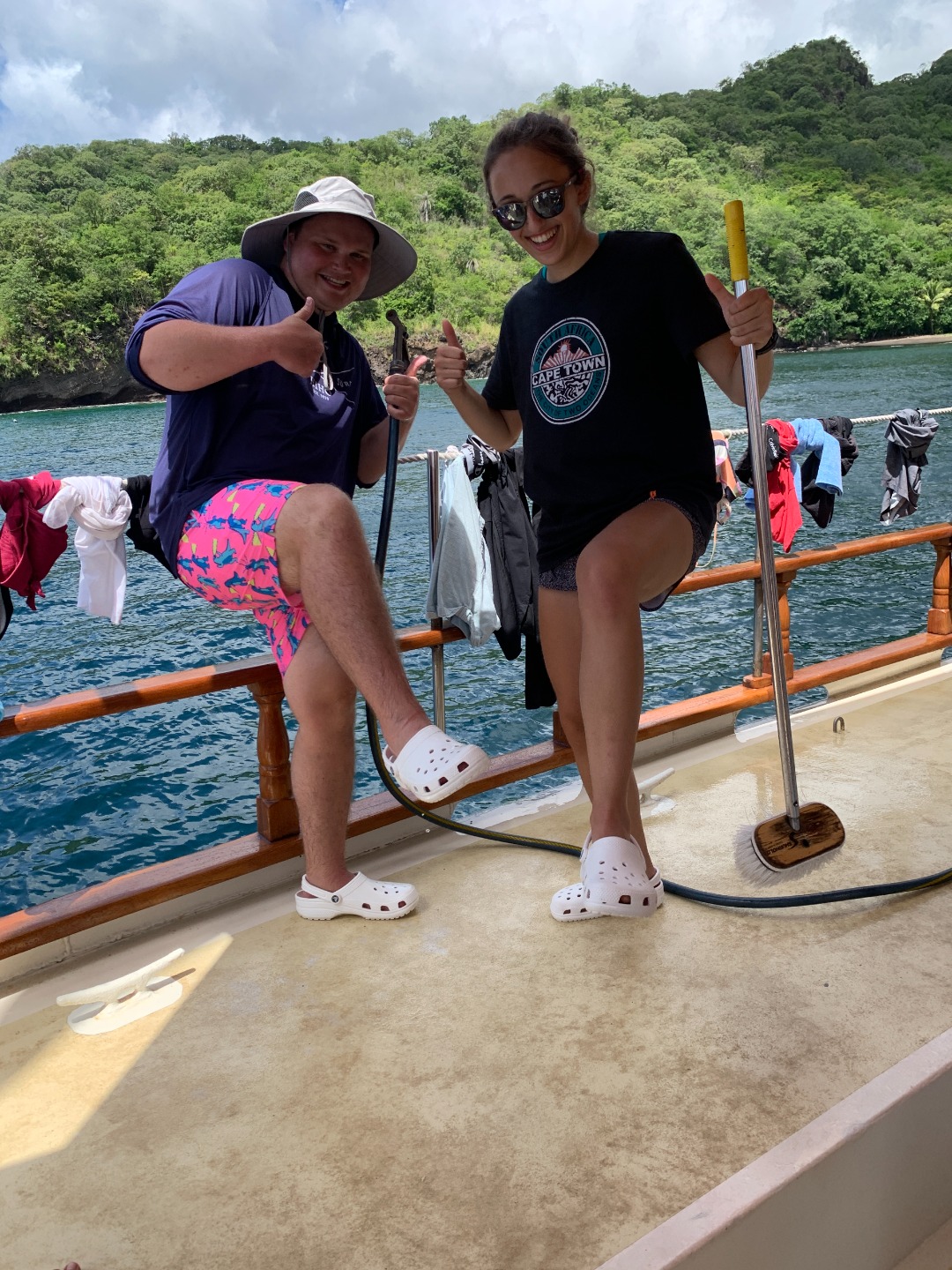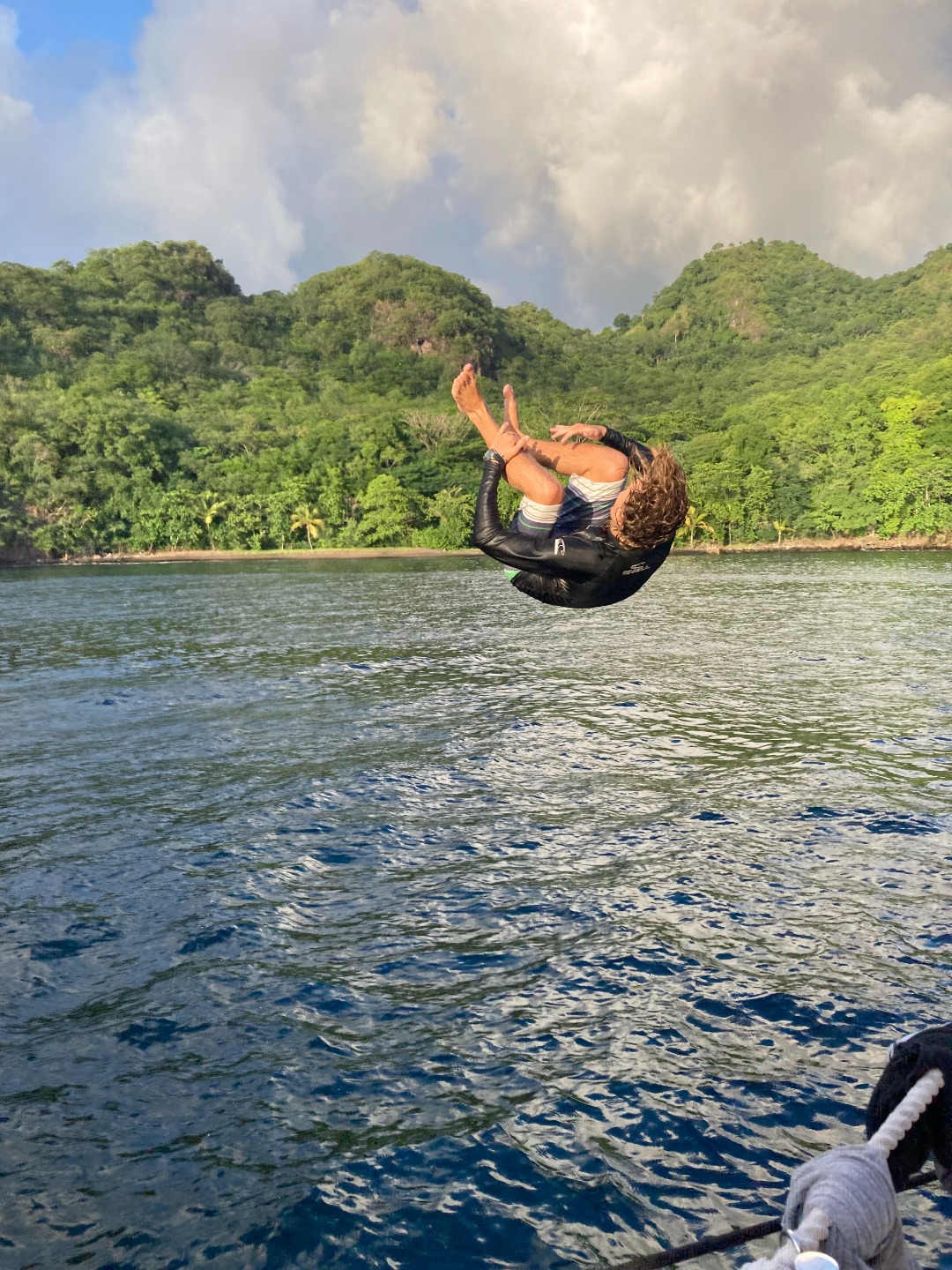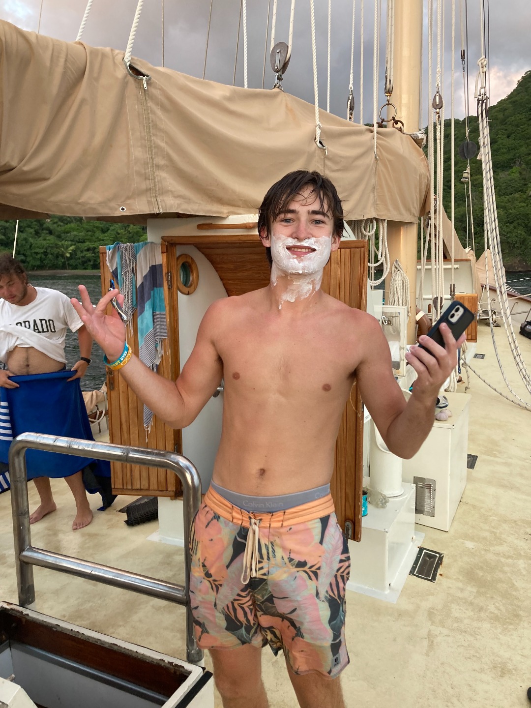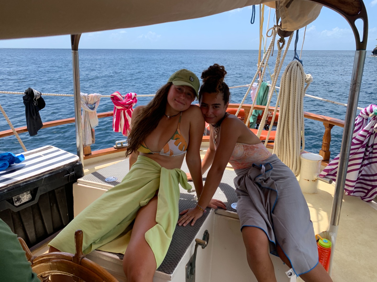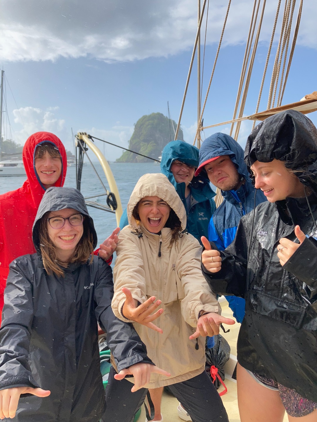 You’d think that the plan for the day ahead in combination with my incredible alarm song – “September” by Earth, Wind and Fire – would have everybody up and out of bed quick, but rest assured that was not the case. To be fair, it’s no longer September…and we did all show up to breakfast relatively close to on time. This morning, post lemon poppy seed muffins, we departed on an hour-long motor to our new destination on the west side of St. Vincent. Though many people used the hour to catch up on sleep, Will helmed us to our own personal cove and beach area. Everyone was in the water as soon as the anchors hit. The most favored part of today, besides Teddy’s legendary sandwiches, came after our Seamanship class. Groups of us swam to our beach while others snorkeled at a nearby bat cave. The cave features hundreds of bats and some incredible marine life, most of which we previously identified in our Marine Biology class. Ocean showers, delicious tacos, and a true island sunset finished our day of sun, fun, and adventures. Today was just another reminder of how beautiful the islands we’re touring are.