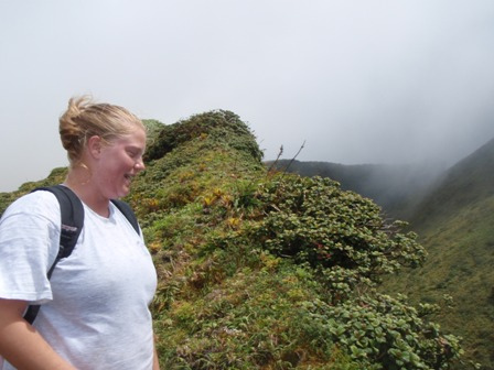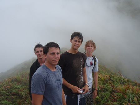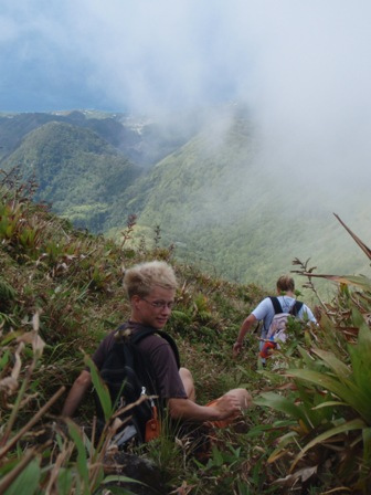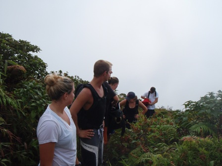 The day started early for the crew as we dug out our hiking boots and filled our water bottles. After a light breakfast of cereal, we took to shore to meet up with our local taxi driver, Alfred. He drove us up the mountain roads, and we exited his taxi in a different world. The temperature was cold (for those gone soft by Caribbean weather), and we found ourselves engulfed by the clouds. Those who decided to ignore the warnings of rain and forgot their jackets ran for cover as the skies opened up and the mountain disappeared. We began the climb under the cover of the clouds and the rain with a goal in mind but not in sight. Within the first hour, the sun was creeping in and out, and the rain ceased. When we reached the mid-way point, a few members of the group decided not to make an attempt for the summit and walked around the outer rim of the crater. Those determined to conquer Pelee pressed on and made it to the top of the Eastern Caribbean. Back at the base of the mountain, the exhausted crew was refreshed with cokes and soft drinks from the local Cafe. By the time we made it back to St. Pierre and Ocean Star, it was time to prep for dinner and take showers. The evening class was Student Leadership Development, where they watched the blockbuster hit White Squall.