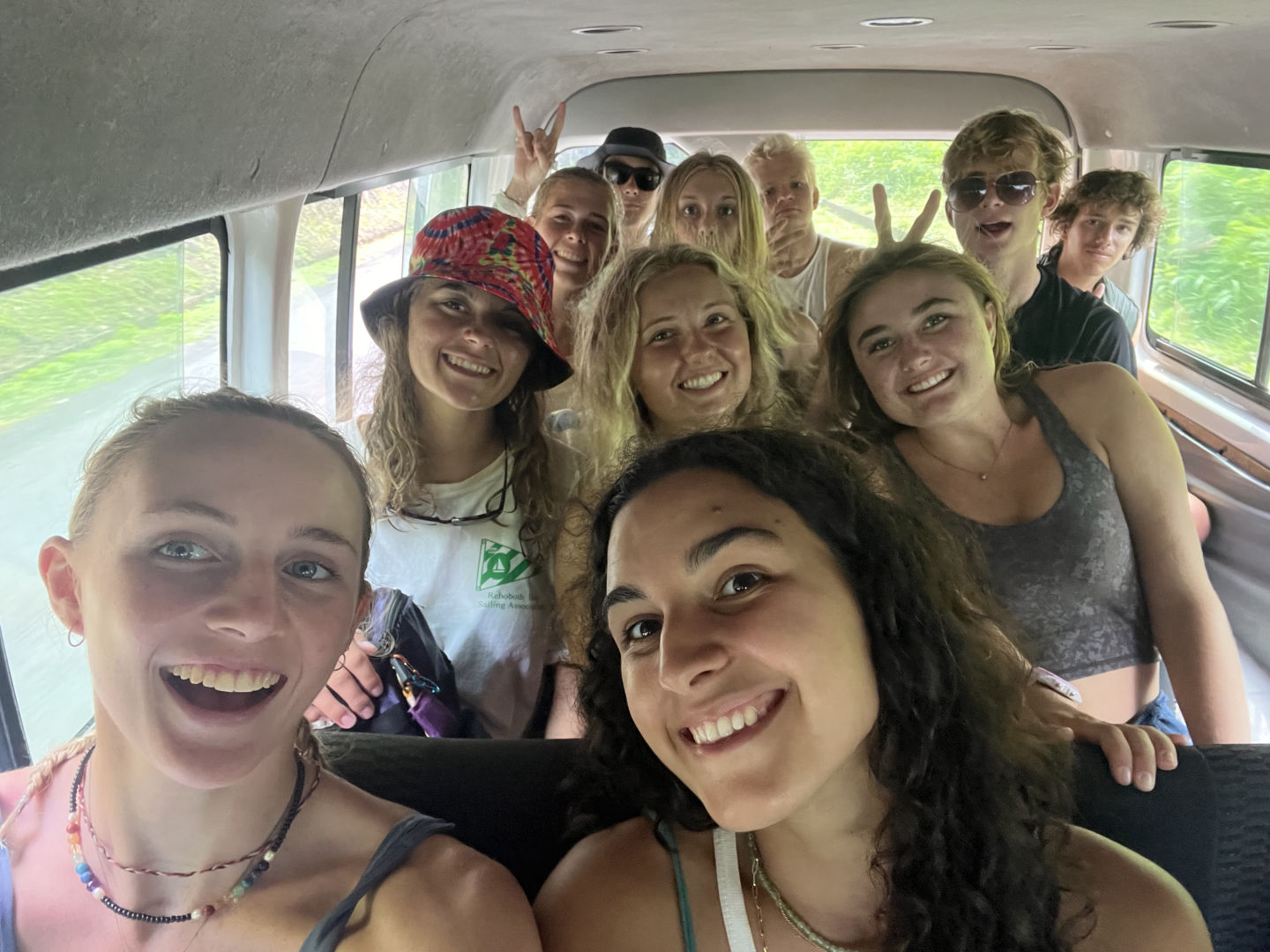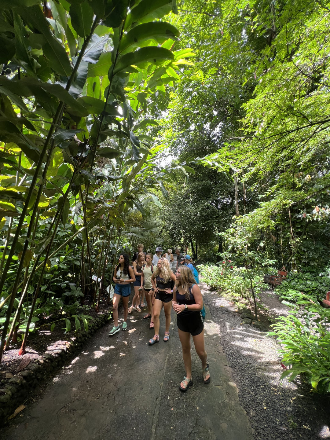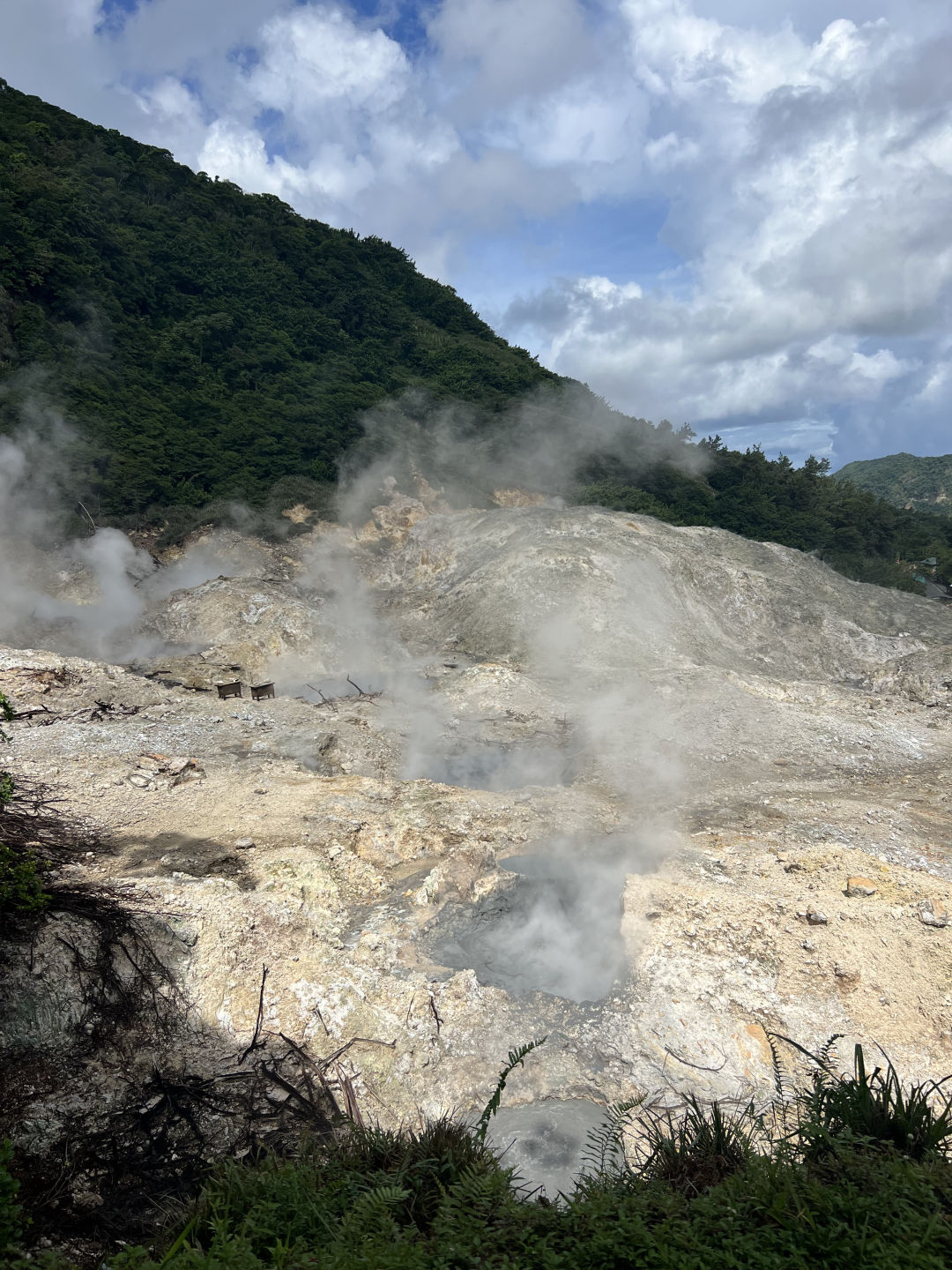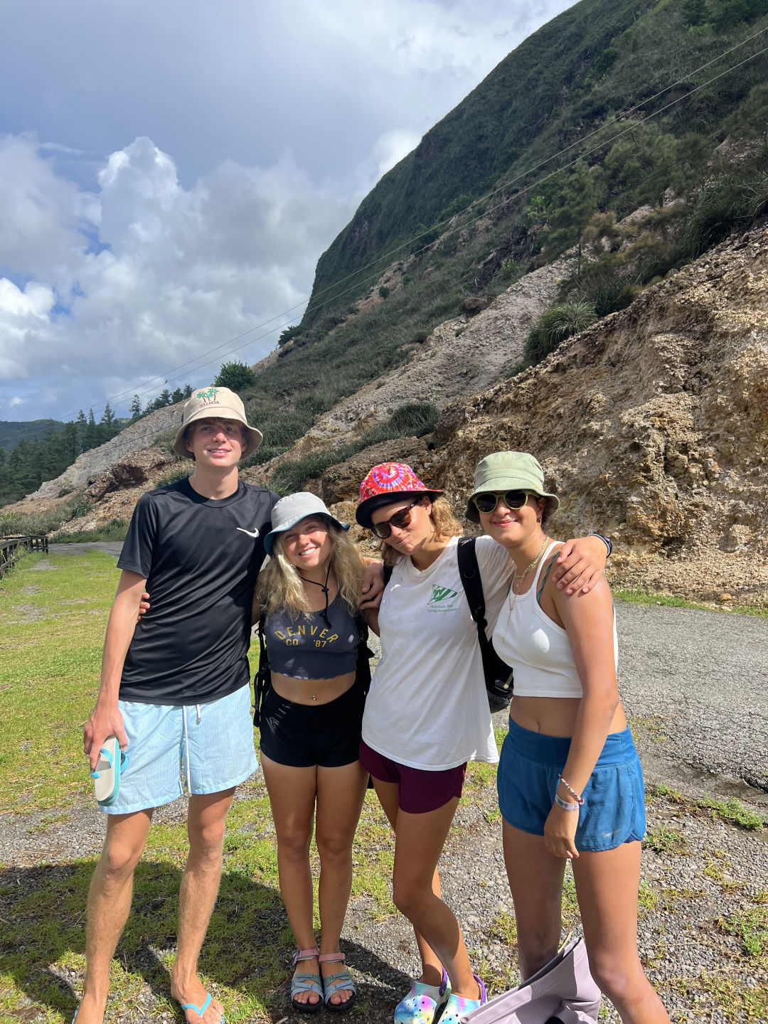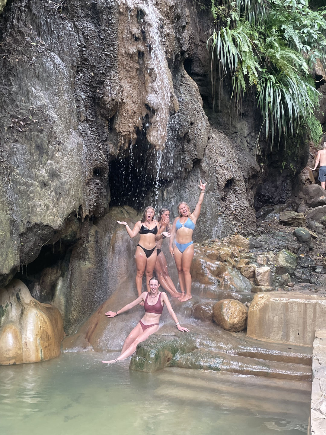 What another amazing day with Seamester! Today, we got to explore Saint Lucia and all the amazing things it has to offer. The morning started with oatmeal and fruit, then we all got ready to head ashore. After meeting up with our taxi driver, we headed to our first destination, volcano and mud baths. We went inside the crater of the volcano, which was really a caldera because the land had sunk in. This caldera, very similar to Yellowstone, had boiling pits of sulfur, iron, and other minerals. The smell of sulfur was intense, and our clothes would definitely be smelling for a while. We had a guided tour of the volcano to learn a bit more about its properties and history before taking a dip in the hot river and getting a mud bath. We scrubbed our entire bodies with the mud that is said to have exfoliating and healing properties. The mud was grainy and felt very nice, and there was also a darker black mud that was very smooth. Once we were all sufficiently dirty and scrubbed, we washed off in the river that was heated by the caldera. Once finished, we rinsed off and got some souvenirs from the locals nearby. Our taxi driver had decided to get some food in town while we were at the mud pits, so we had to wait for him a bit, but we were in no rush and ate our lunch and enjoyed the scenery. Our next stop was a beautiful botanical garden. We were guided again through the gardens and admired the massive variety of tropical plants and all the beauty they provided while learning about their uses and, for some, their dangers. The botanical garden led to a stunning waterfall, adding to the views we were already taking in. After a quick stop to get ice cream, we continued on our way. Our third and final destination was a hot spring. This was a favorite location among the group as we got to stand under the steaming waterfalls and relax in the hot spring pools. Feeling refreshed, we headed back to the boat, where we had to center our minds and thoughts to take our oceanography midterm. We all feel much better having that over with, and we enjoyed our usual playful boat shower and a lovely sunset. We have a movie night planned to celebrate the midterms being over, and I think we will all enjoy our last night here at Saint Lucia!