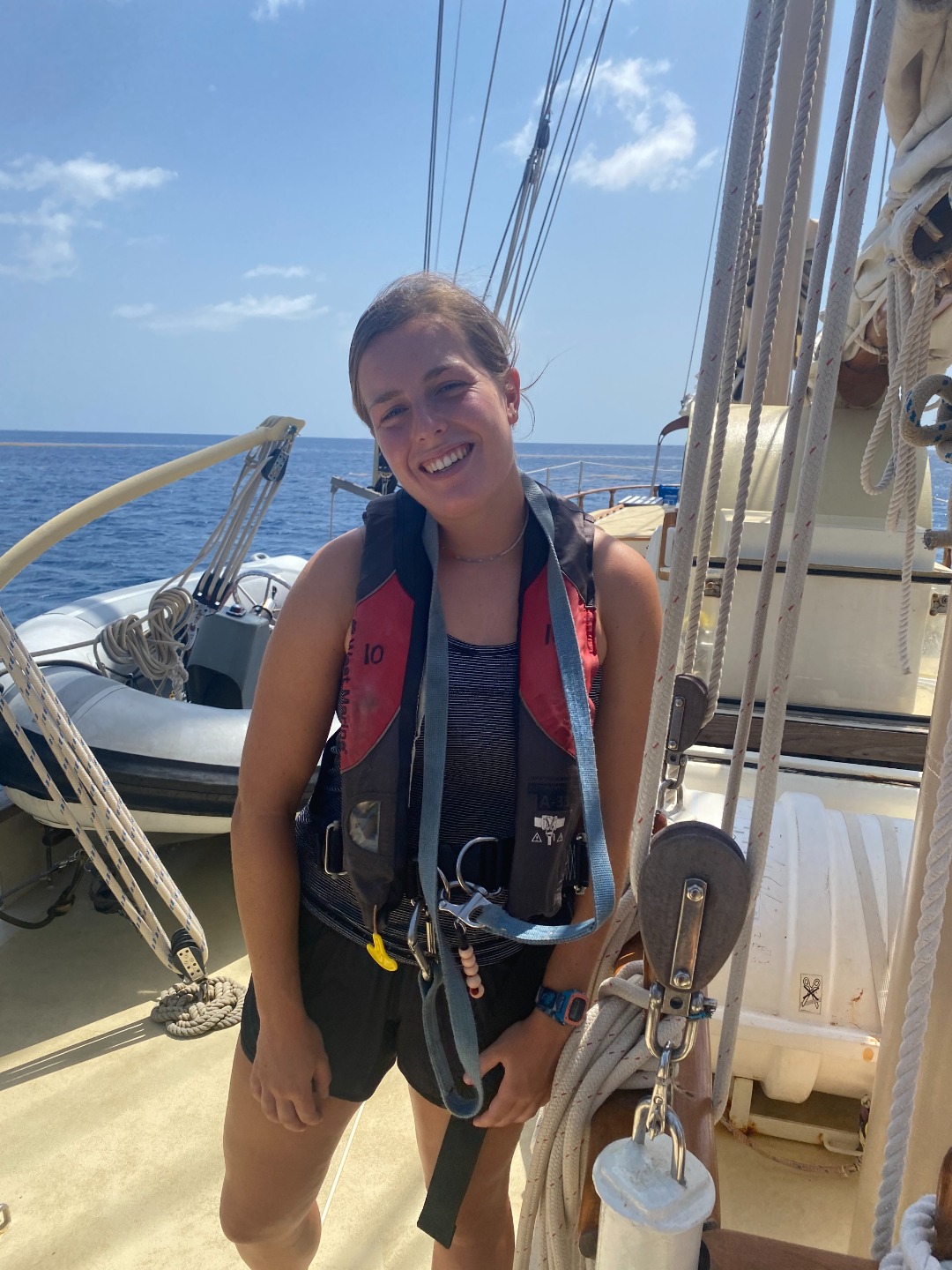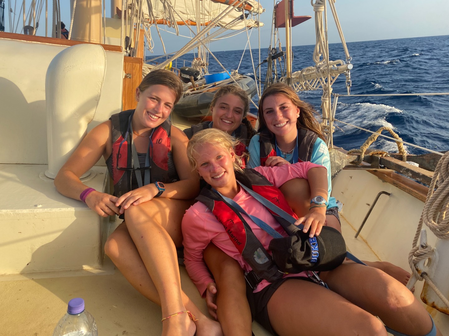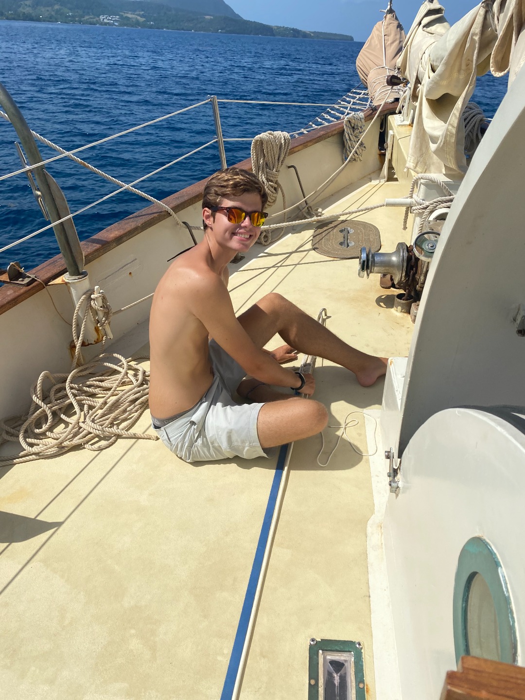 Today started out as a great day since we had banana bread for breakfast! After we had breakfast, we were subjected to an oceanography quiz and a fish I.D. exam in the same hour! I thought my head was going to explode, but thankfully, it didn’t. After that torture session, we began our passage prep which is as fun as it sounds. After this, we had some free time which we spent either swimming or freediving. We then had lunch which was great! After lunch, we listened to Henery’s leadership presentation, which happened to be the last one we were having! It was very solid, and after that, we started raising the sails and getting underway. Being underway wasn’t very eventful except for the dolphins we saw, thanks to Katie’s herding call. We had mac and cheese for dinner, and that’s pretty much it. This will be my last time writing to you, and I am very sad that this is the case. There have been ups and downs throughout my experience being your skipper, but they have now come back full circle, and all I can think about is how much fun it has been. This has been you, skipper, for the last time, signing off