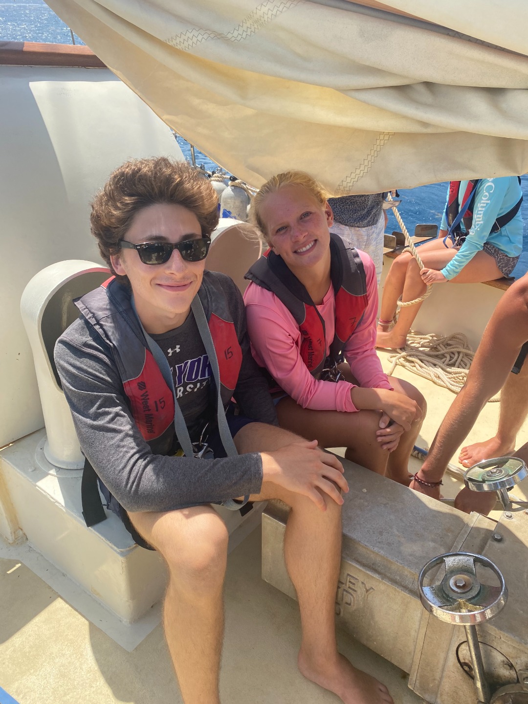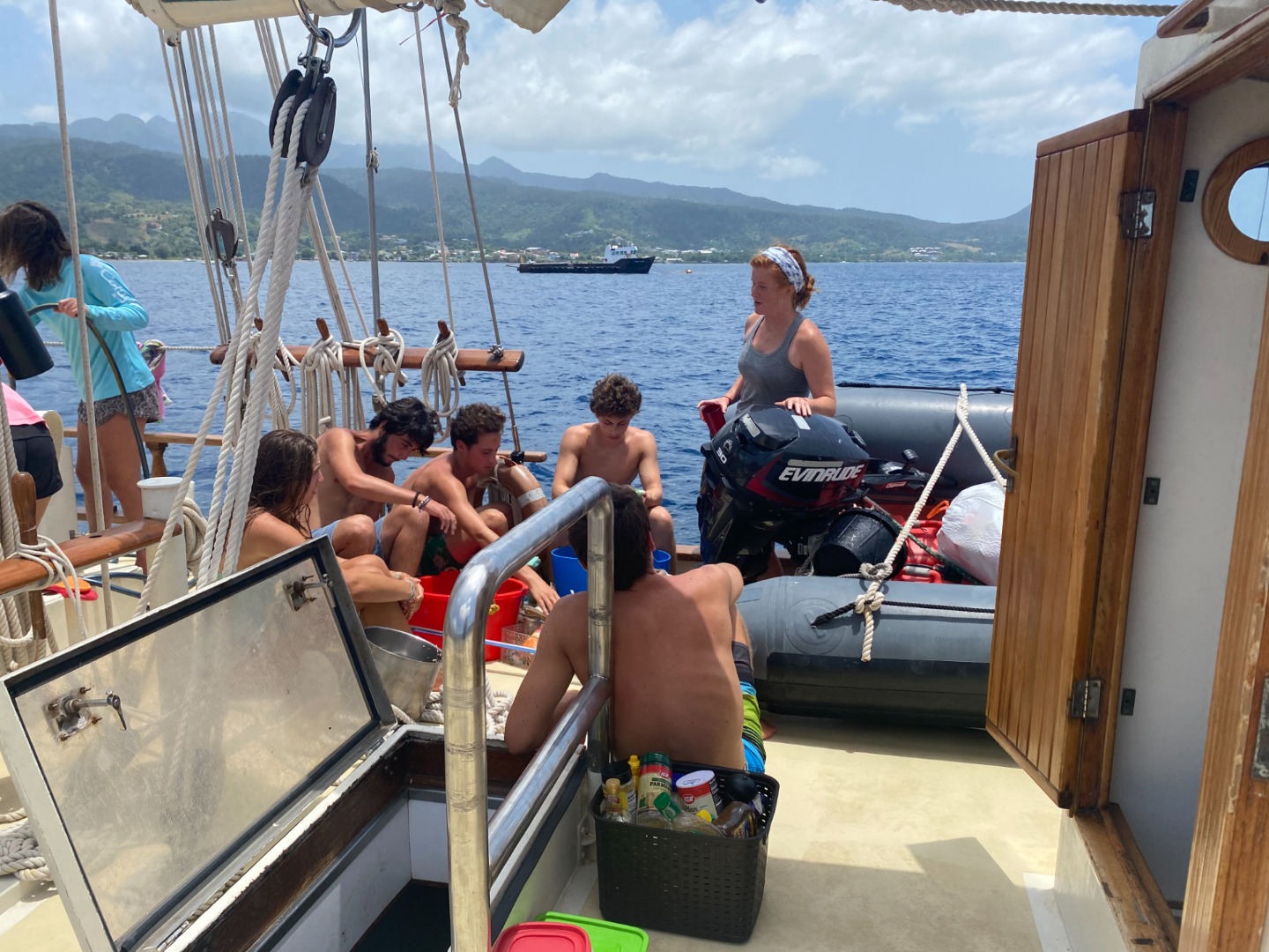 Picture 5: Folks chilling after our sail raises had been completed