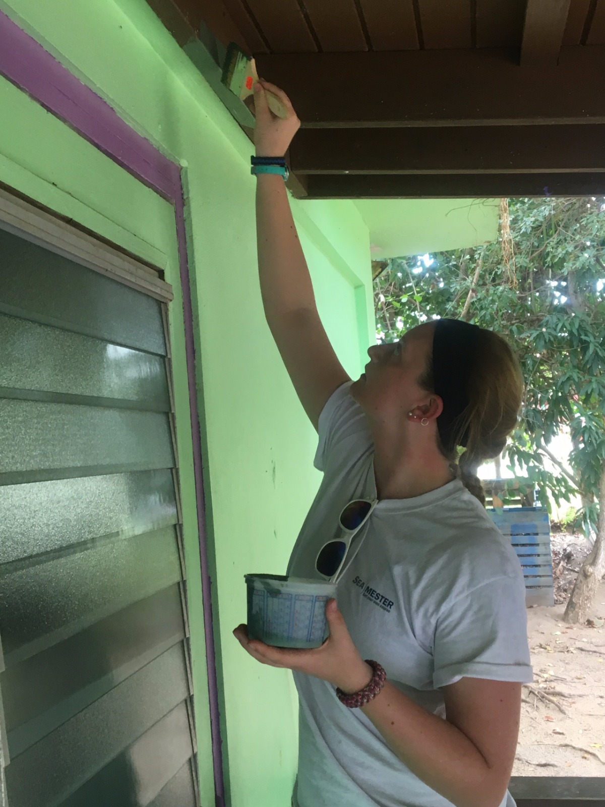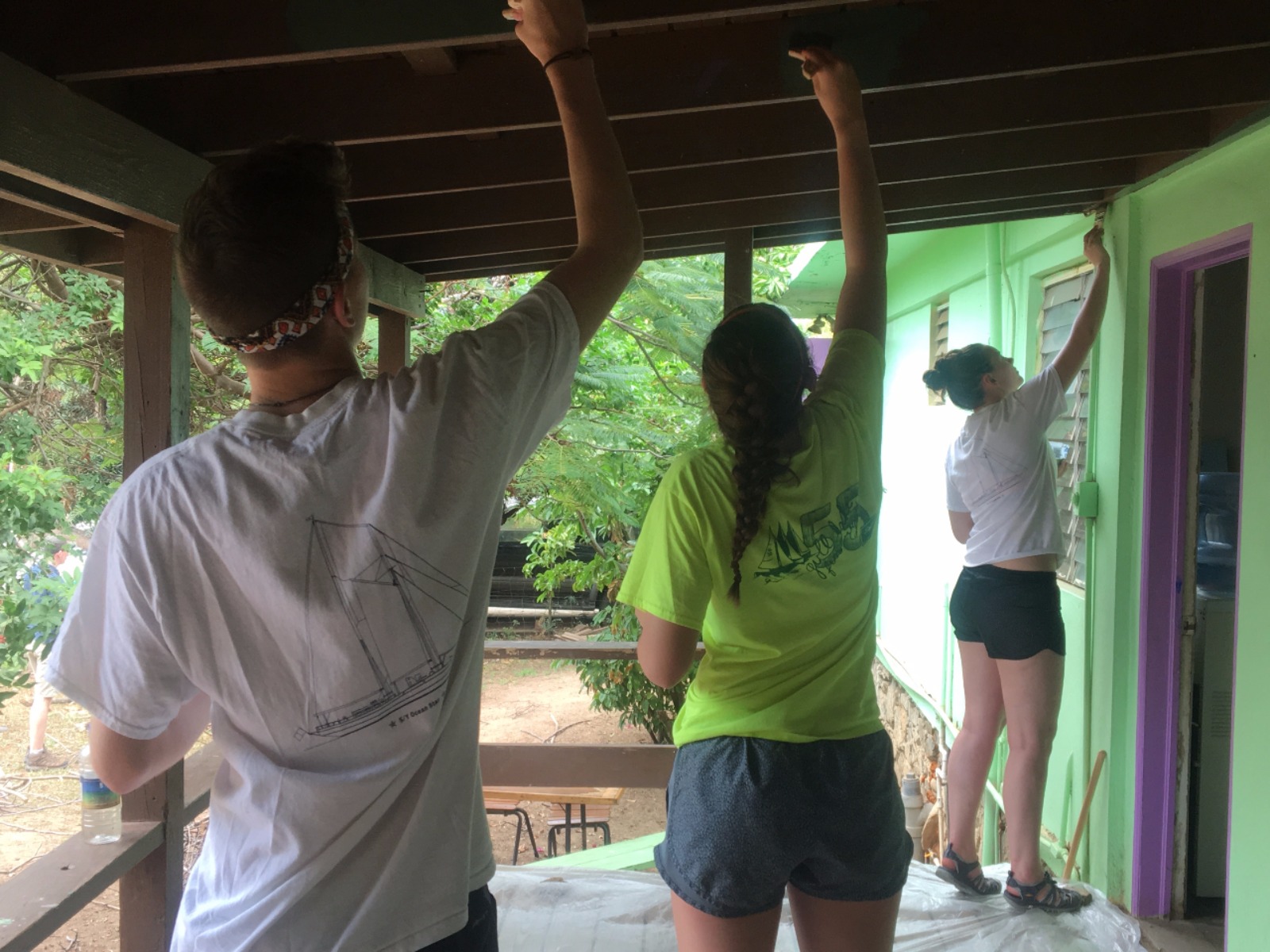 It has been quite a special day aboard – and around – Ocean Star. Although “Boatmeal” started us off well, we had an exciting project to tackle, just a short ferry ride across the Sir Frances Drake Channel. This day proved to be a major highlight of our Seamester adventure thus far. After an introduction to our Student Leadership Development class that culminated in thoughtful reflection about ourselves, our goals, and our comfort zones, we left the dock as a crew for the first time since our arrival. It felt strange to have the sensation of flat concrete under our shoes and even stranger to have shoes on our feet. We took a ferry over to the Valley Day School on Virgin Gorda, where we met Julie, a pioneering queen of the Caribbean Recycling Movement. We met some adorable kids attending the school. Much work was to be done, and some we readily set to our tasks of painting, carpentry, and other various projects. Upon our return home to Ocean Star, we were greeted with the delightful aroma of homemade Naan and coconut green curry. Thanks, Abby and Eric! We had our first Oceanography class after dinner. We learned boatloads of new material, and most importantly, ate the delicious brownies and cakes that Marina used during a lecture to demonstrate plate tectonics.