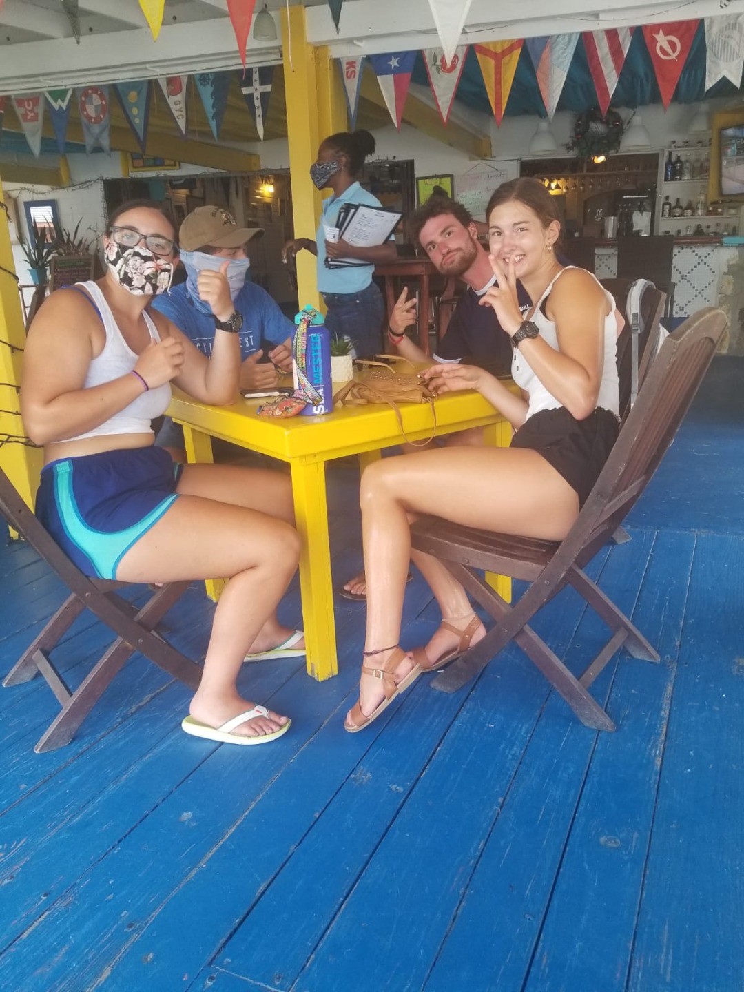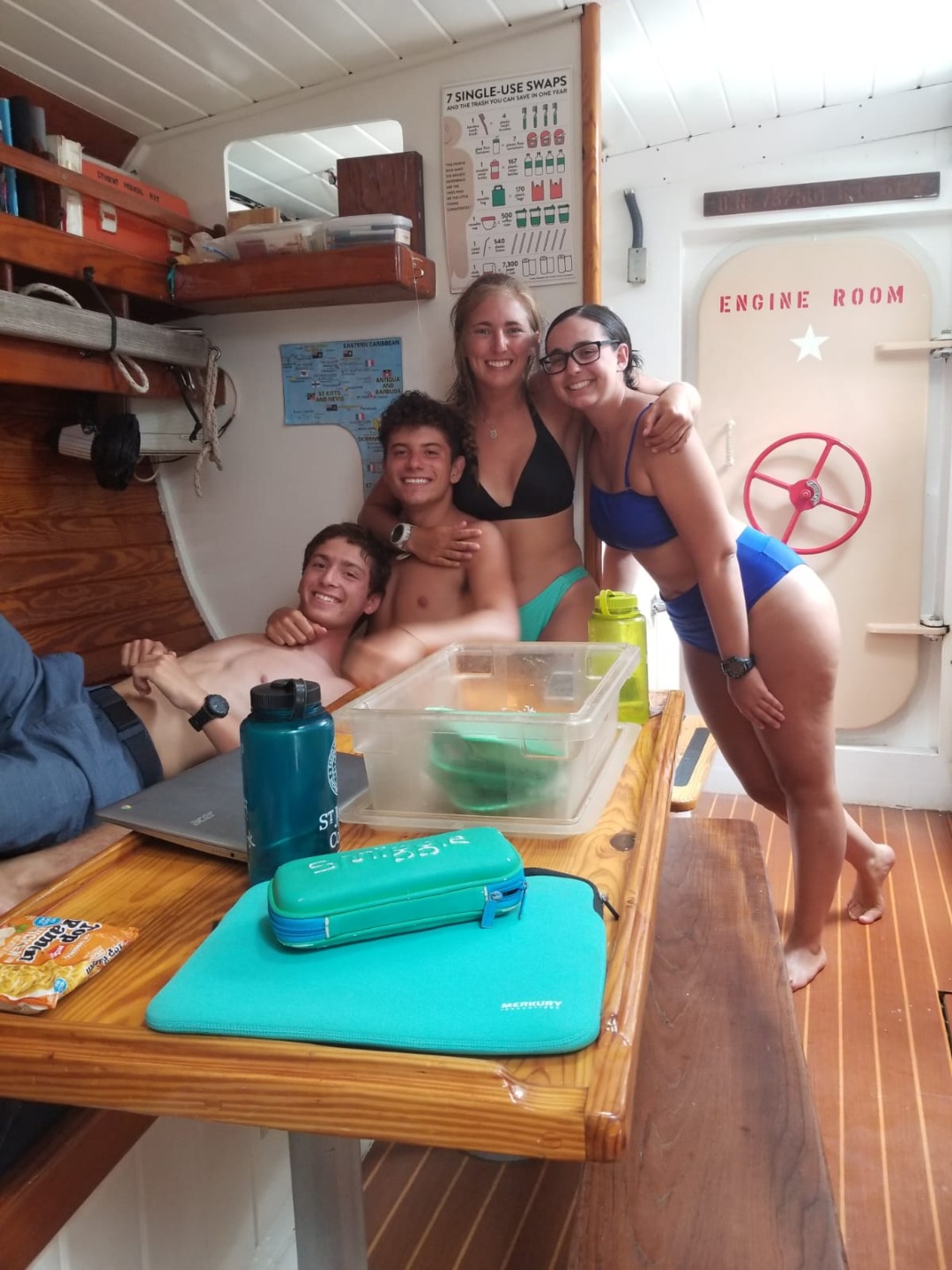 To end the night, we had a dinner of burgers and fries that disappeared quickly. At dinner, Calum let us know that everyone had successfully passed their nav master exam, so we are all now nav masters. As people are cleaning up from dinner and I am writing the blog, we can smell Nicole’s Texas sheet cake that she is making us for dessert and that we will probably eat during our activity with Syd tonight.