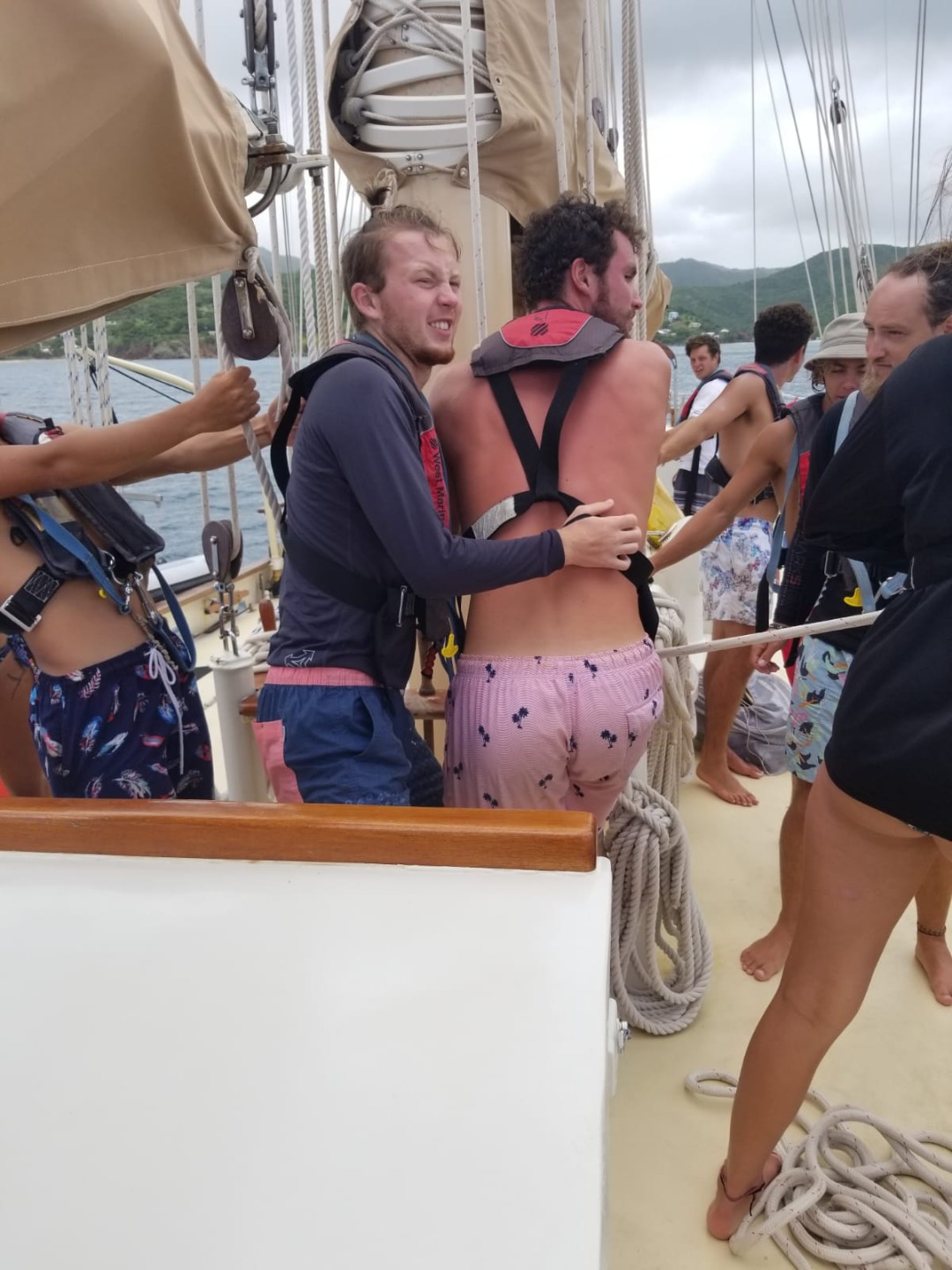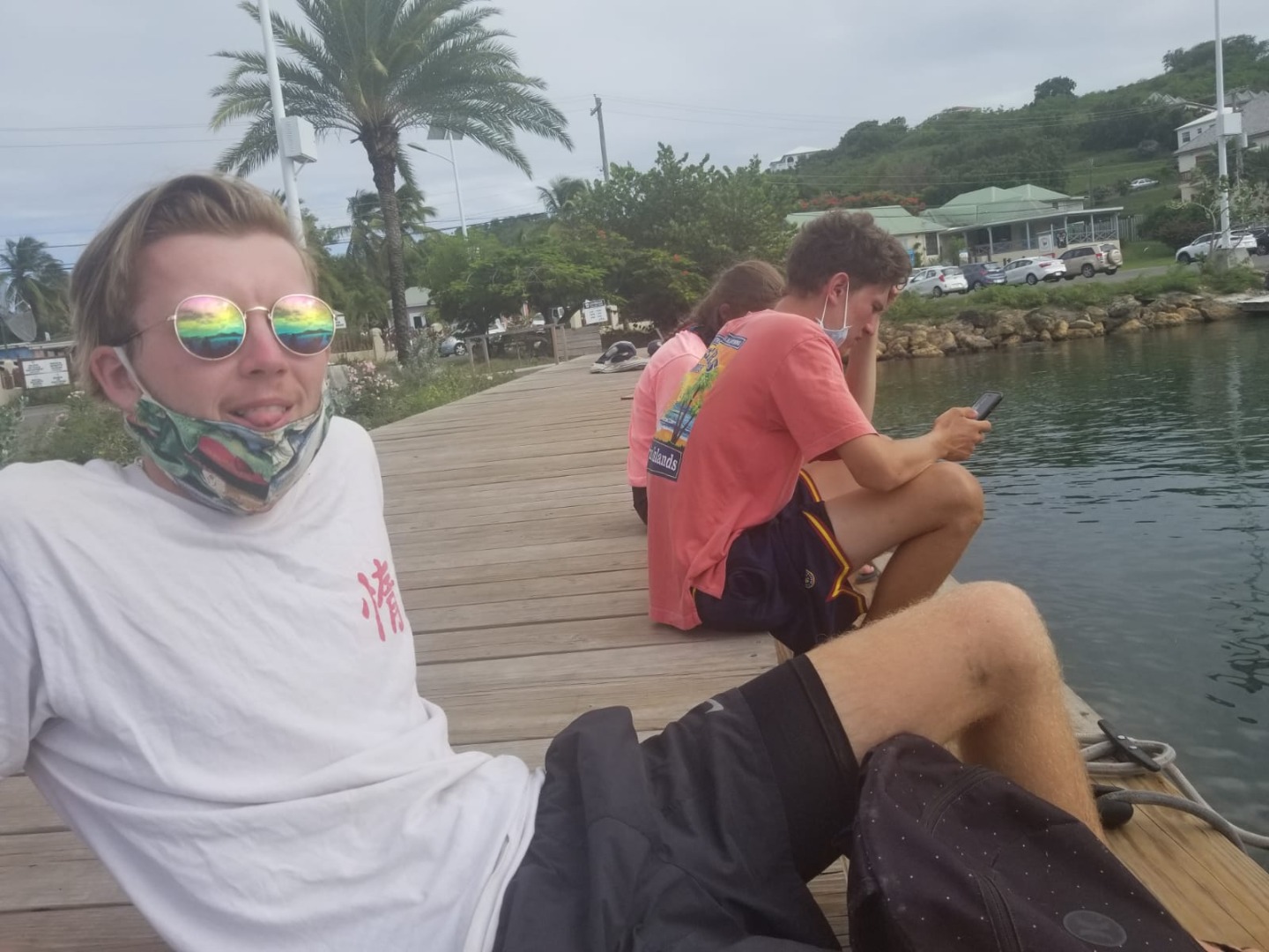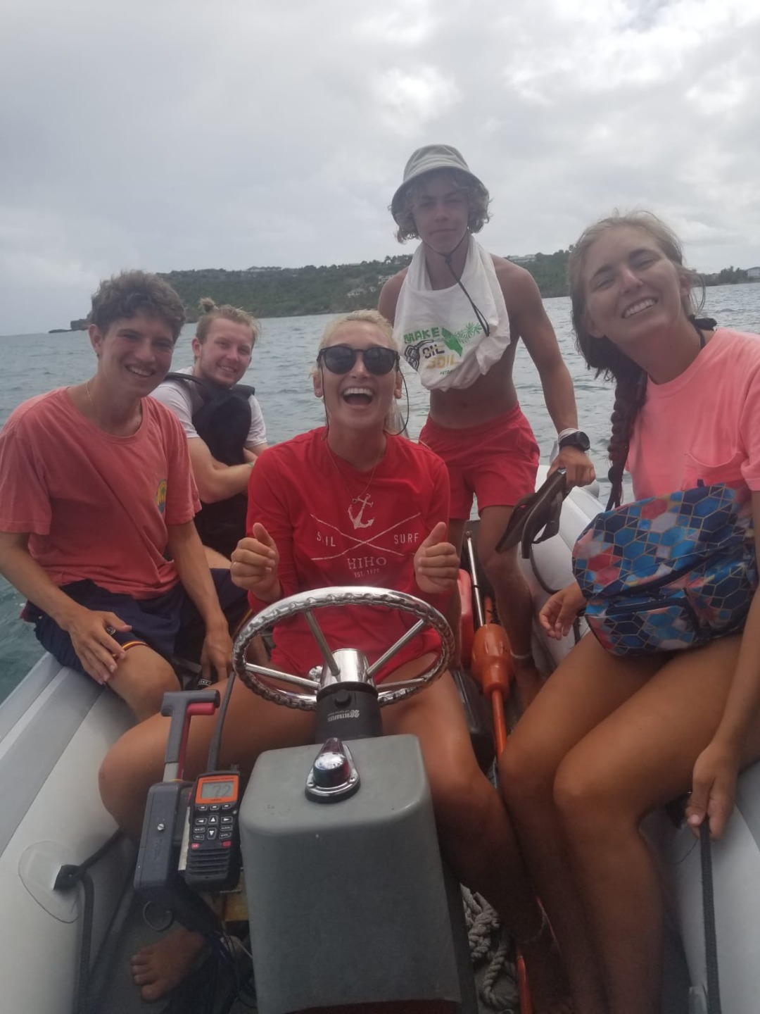 To start the morning off, I woke up the crew to the song “Best Day of My Life,” and it was indeed. Waking up to Nicole cooking us coffee cake was enough to get everyone up and moving quickly. After our breakfast, everyone set up their dive kits for our morning dive. Returning to the same sight as yesterday, everyone was still amazed by the great visibility and beautiful reefs. Group 1 saw an octopus and a large lobster. After the dive, we had a fun 30-minute surface swim at the end of the dive to get back to the dinghies, as our 50-minute dive clearly wasn’t long enough. When group 2 made it back from their dive, the dinghies were raised, and the anchor was lifted as we were off to return to Falmouth Harbour for our last anchorage before returning to the dock.