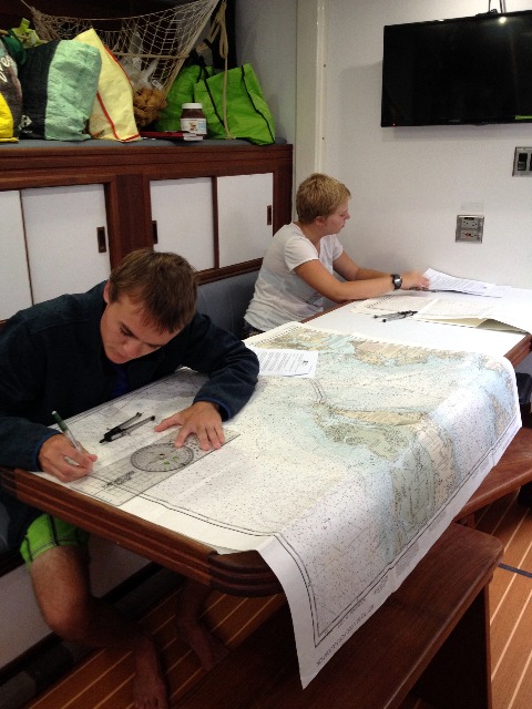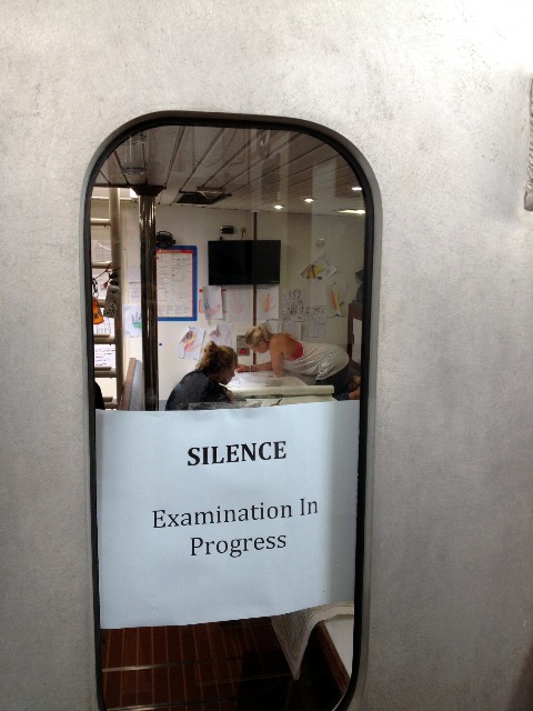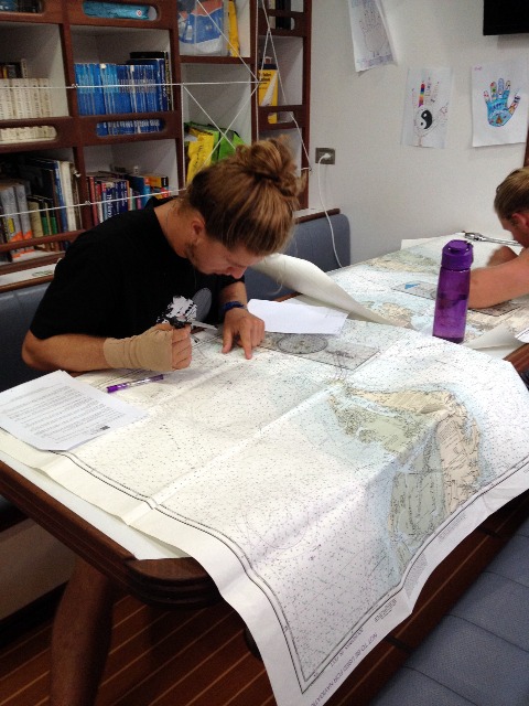 Today was a momentous day, as it was Morella’s 18thbirthday! Tegan, Manuela, and I baked and decorated blondies for a dessert celebration, and after dinner, we got to enjoy a night out at the restaurant near the dock. Aside from Morella’s birthday, today was also significant because it was navigation exam day. At the culmination of the last month of MTE, everyone switched out for his or her 2-hour exam blocks in the saloon. They have spent numerous hours practicing their skills with plotting, determining the course to steer, and calculating the effects of currents on the course, and today was the day to show what they had learned. After passing their exam, they will all be granted the title of “Navigation Master” (it is really a thing, you get a card in the mail and everything!) We can’t believe that we are in finals week and that the trip is almost winding down. To remind us of all of the fun we have had over the past two and a half months, I wrote a summary of the trip in Mad Lib form for my squeeze question, and everyone had to help fill it in by giving me a word. Sadly (in my opinion), quite a few of them actually make sense, so in case you can’t figure out which words were filled in, they are in ALL CAPS. Enjoy!