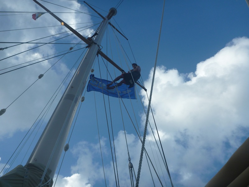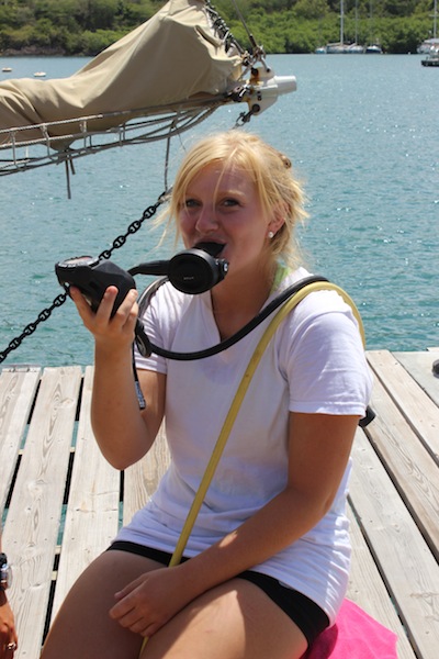 I cannot believe that we are already halfway through our trip! This realization, however, only intensifies the beauty of Antigua as we appreciate even more the quaintness of where we are docked. Indeed, Ocean Star is currently overlooking the most gorgeous house with blue shutters that have been conveniently converted into a restaurant. Indeed, the shipmates have made great use of this spot. In our free time, we wandered over there today to enjoy the most delicious smoothies ( I had a passion fruit lime one, and I can honestly say that I think it is the best smoothie I have ever tasted). A few of us shipmates also took this opportunity to have a coffee, and we pondered over the fact that despite the exclusive luxuries a life at sea has to offer, other normal luxuries are forsaken, but this only makes us appreciate things like coffee more! It’s a win-win situation! The shipmates attempting to complete their Padi Open Water Advanced finished another topic called Navigation Diving. To an unrelated onlooker, we must have looked hilarious, as our instructor Tor, as part of routine exercises, instructed us to blind ourselves by placing a towel over our heads and, with the use of our compass, navigate ourselves around the dock (with a fellow shipmate walking beside us of course to avoid injury!) With the Navigation Dive complete, we returned and had a free afternoon before dinner. And what a dinner it was: a delicious Mexican fiesta night of burritos! We were all very happy, but Tor was the most joyous, for Burritos are her favorite food. To finish off the day, we are going to watch a documentary about Irving Johnson. The staff told us a little about this famous Sailor at dinner, and now we are all intrigued to know more. Apparently, he can climb up the edge of the sail just using the tip of his fingers! Ok, so I’m off to watch this documentary amongst the stars. Bye for now!
