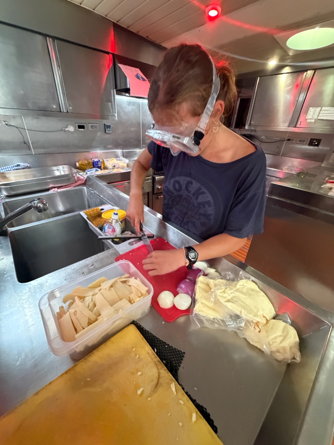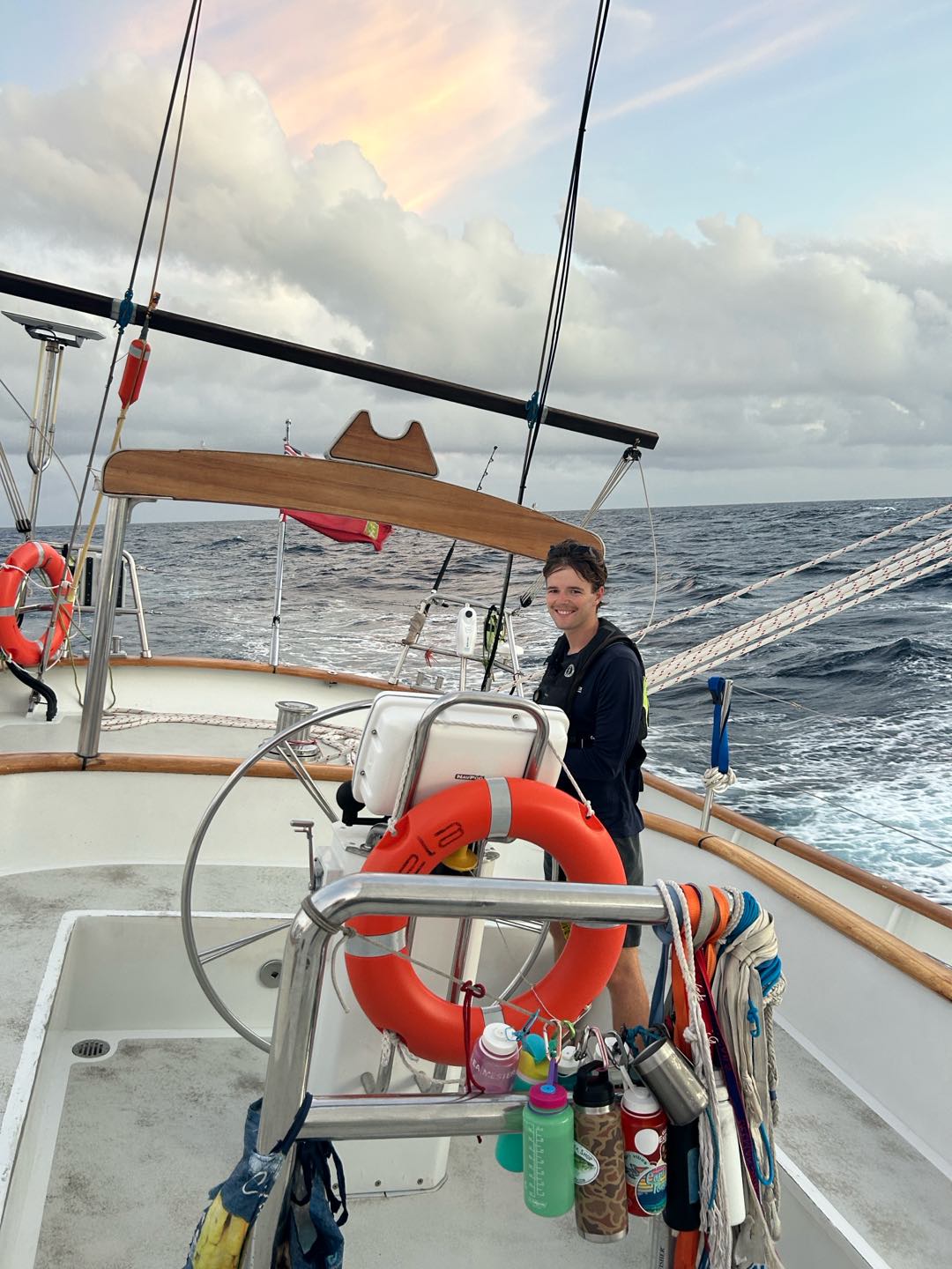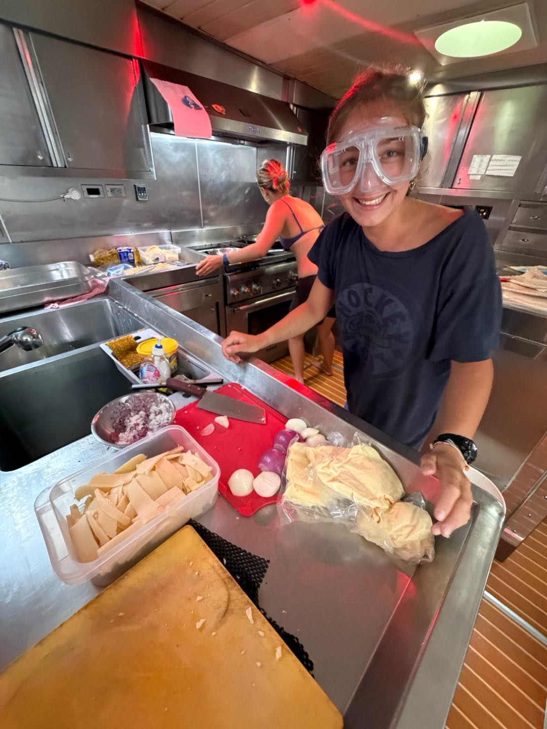 After we’d bundled up, we headed on deck to relieve watch team three. It was a pretty peaceful watch with minimal rain, which was nice. We were absolutely flying we hit 11.2kts while I was helming, which was sooo cool. After watch, we went back to bed for a few extra hours of shuteye and awakened to a lovely treat- Nashota and Vittoria made quesadillas for lunch!!