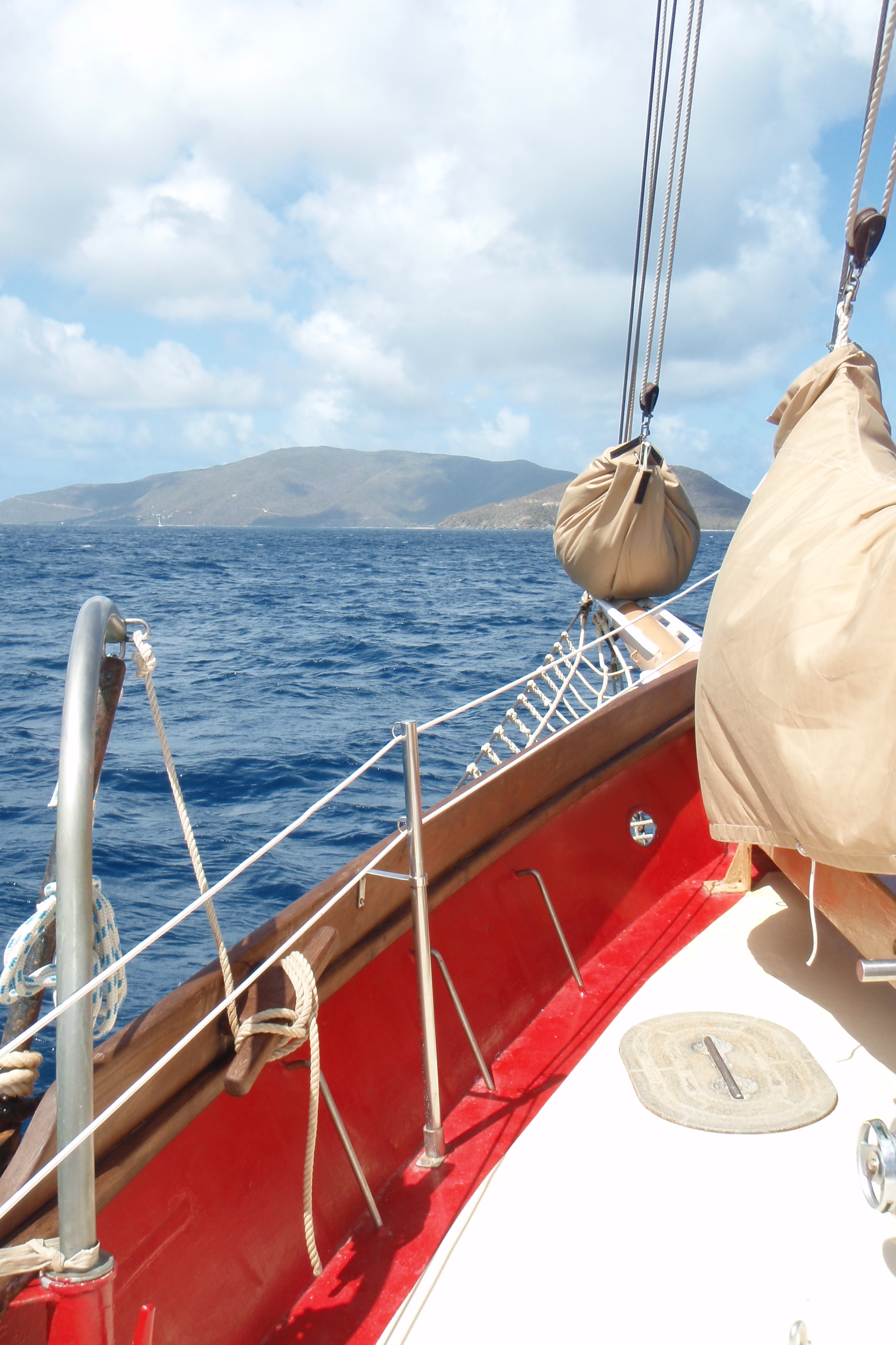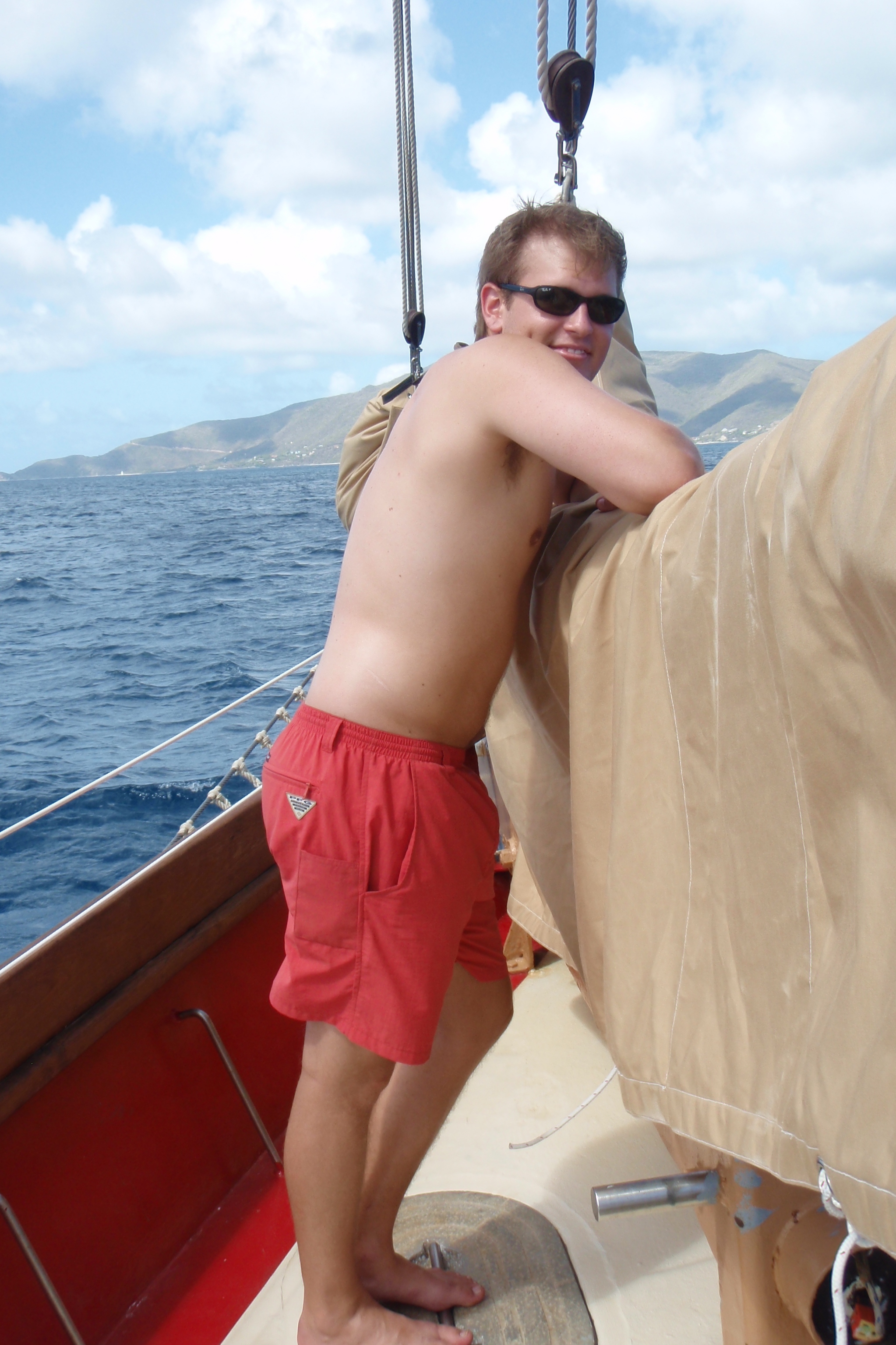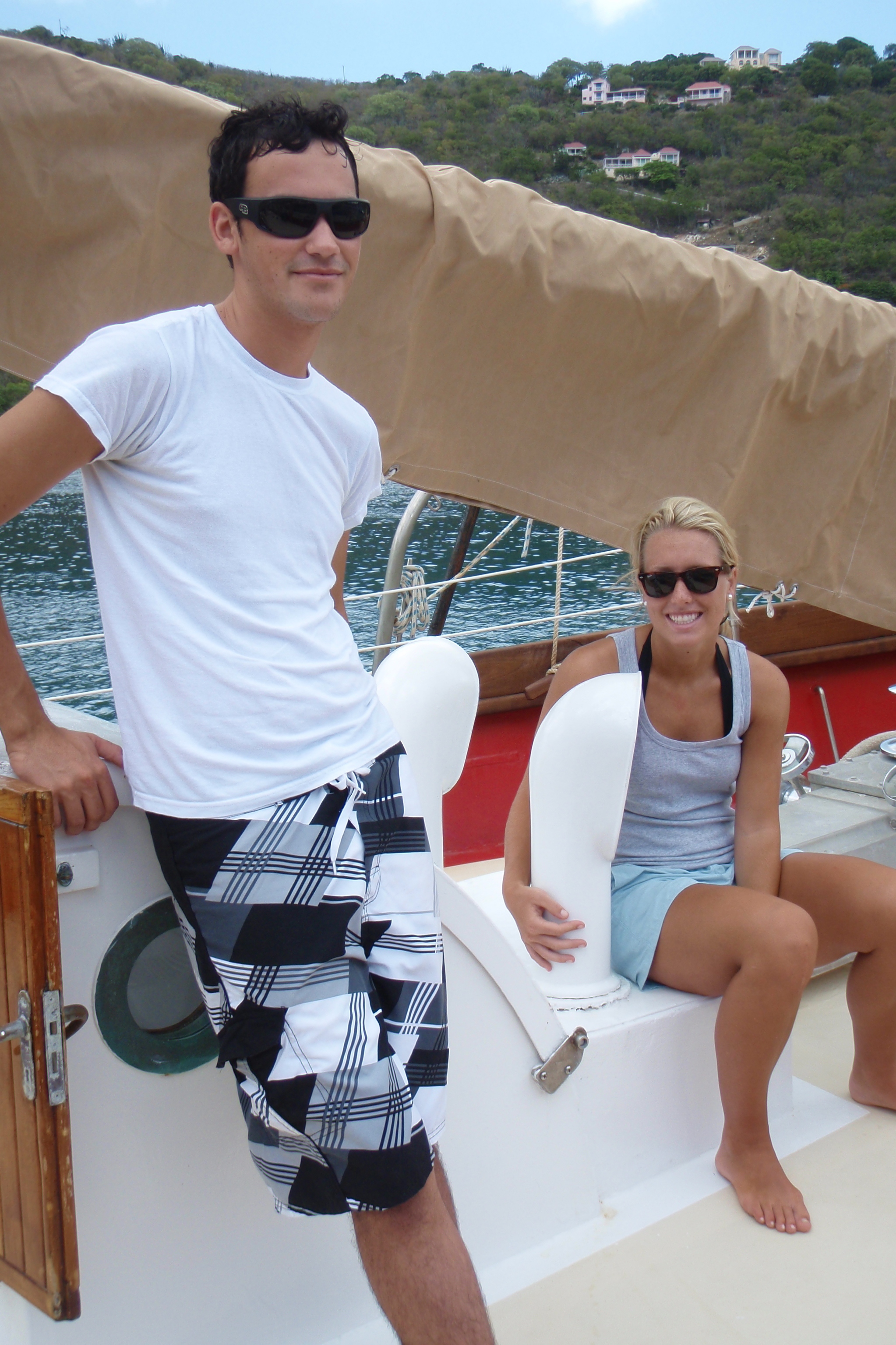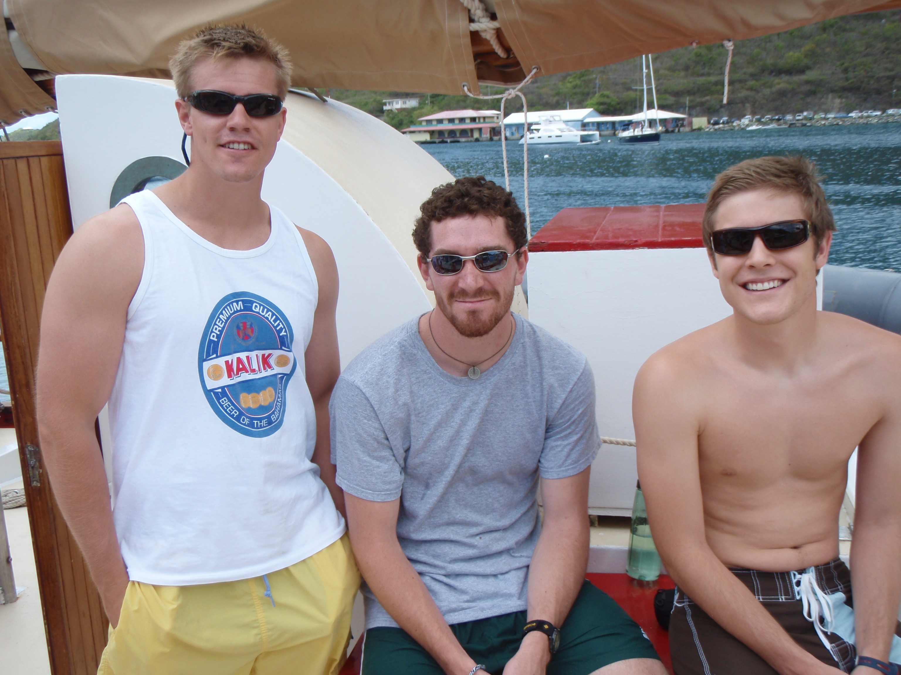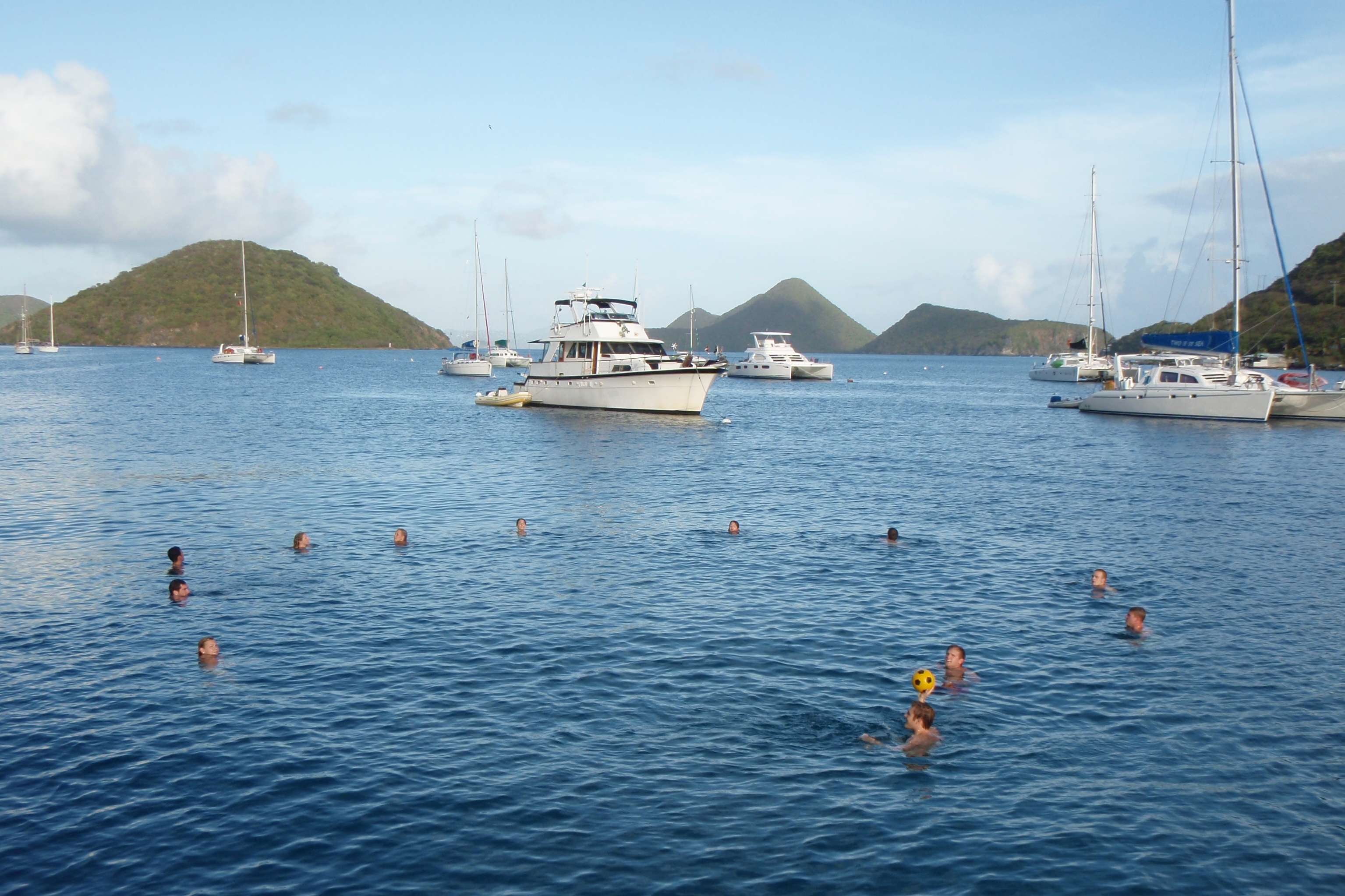 We awoke this morning in West End to a full crew of shipmates, the last two of which arrived in the late evening hours yesterday. Our day started with an early morning jump in the crystal Caribbean Sea and a swim test, the first step to becoming SCUBA certified. Soon we were slathering syrup on our French Toast and getting ready for a program policy and agreements meeting that would run most of the morning. By lunchtime, the adventure had begun. We were off the dock and underway for Savannah Bay on the island of Virgin Gorda. En route, we took in the sights of the BVI, completed diving knowledge reviews, and learned to steer the boat and stand bow watch. After negotiating the entrance to the bay, we dropped anchor, showered in the sea, and enjoyed dinner accompanied by a magnificent sunset. It was a great way to begin what is sure to be an amazing adventure.