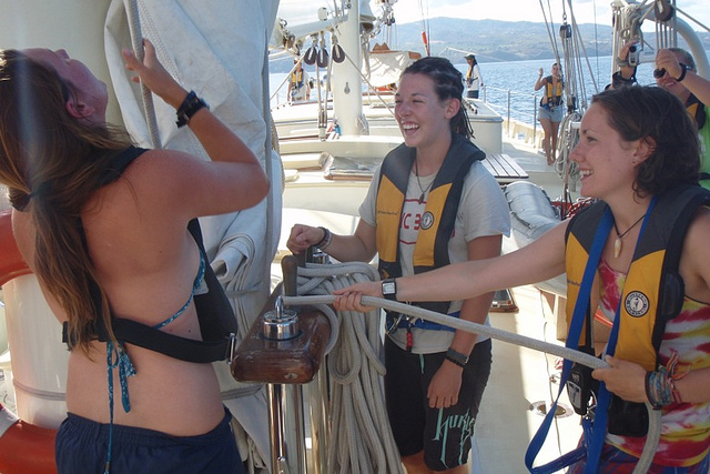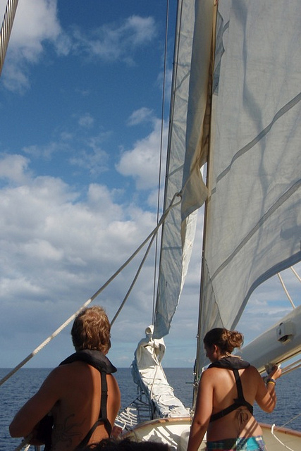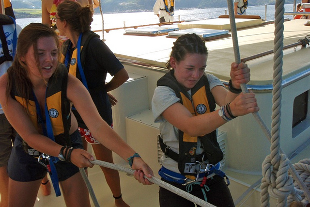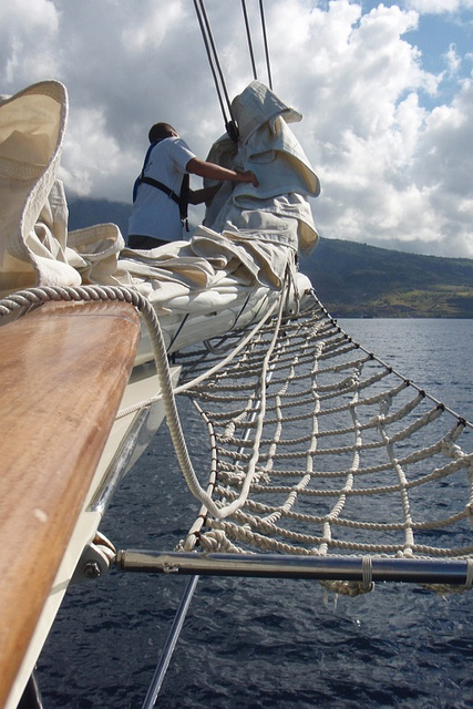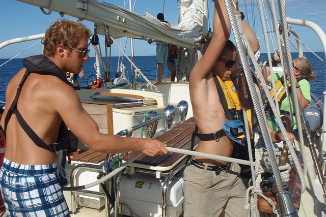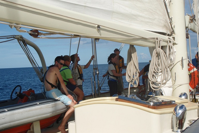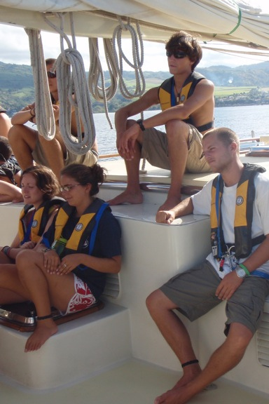 We awoke early this morning to extract our anchor from underneath a French cruising boat in St. Pierre. Once free, we set the sails and made our way towards the jungle island of Dominica, a mere 35 nautical miles away. The passage was a quick beam reach, speeds were good, and the sail was exhilarating. After an Oceanography class and lunch, we were nearly there. On arrival, the normal routine of a wash down and a bit of polishing and waxing led into shower time, delicious Cincinnati Chili, and a gorgeous sunset complete with a green flash. Now, a Student Leadership Development class caps off the perfect day. Everyone is excited about the great adventures that await us here on the breathtakingly beautiful and mysterious island of Dominica.