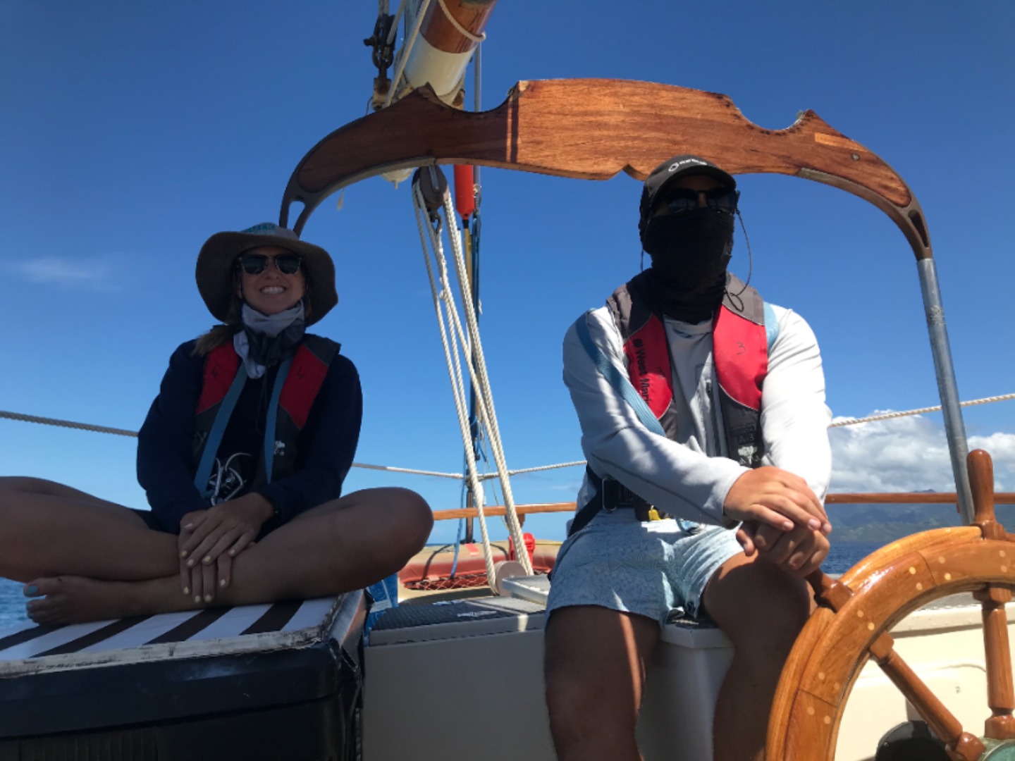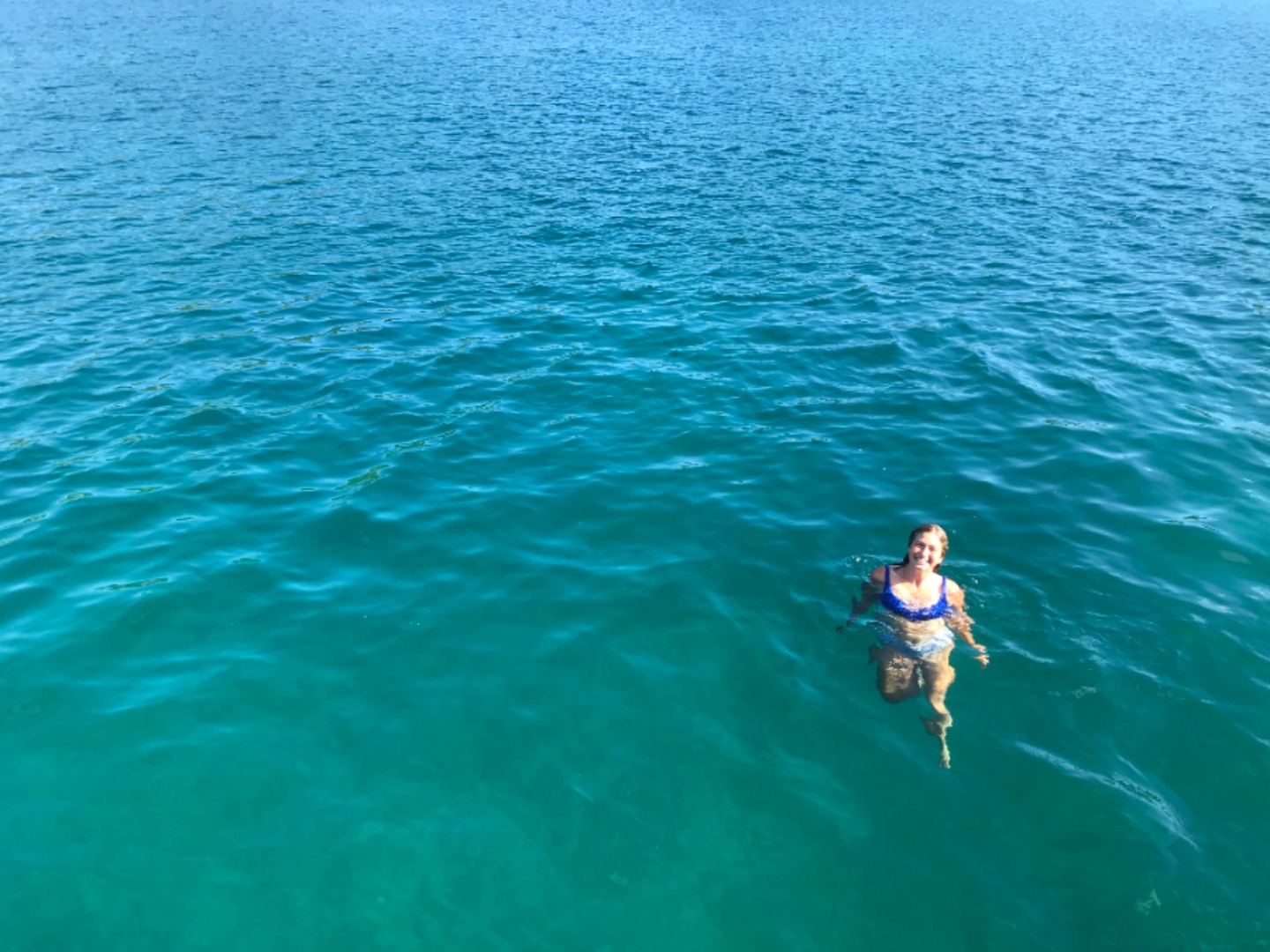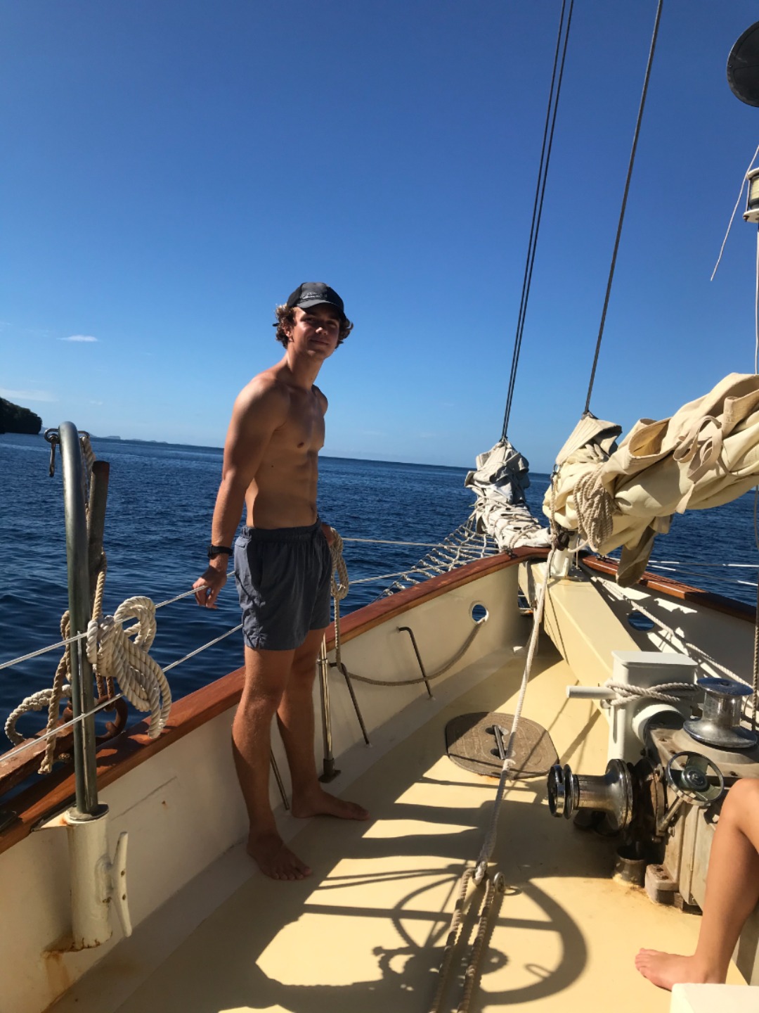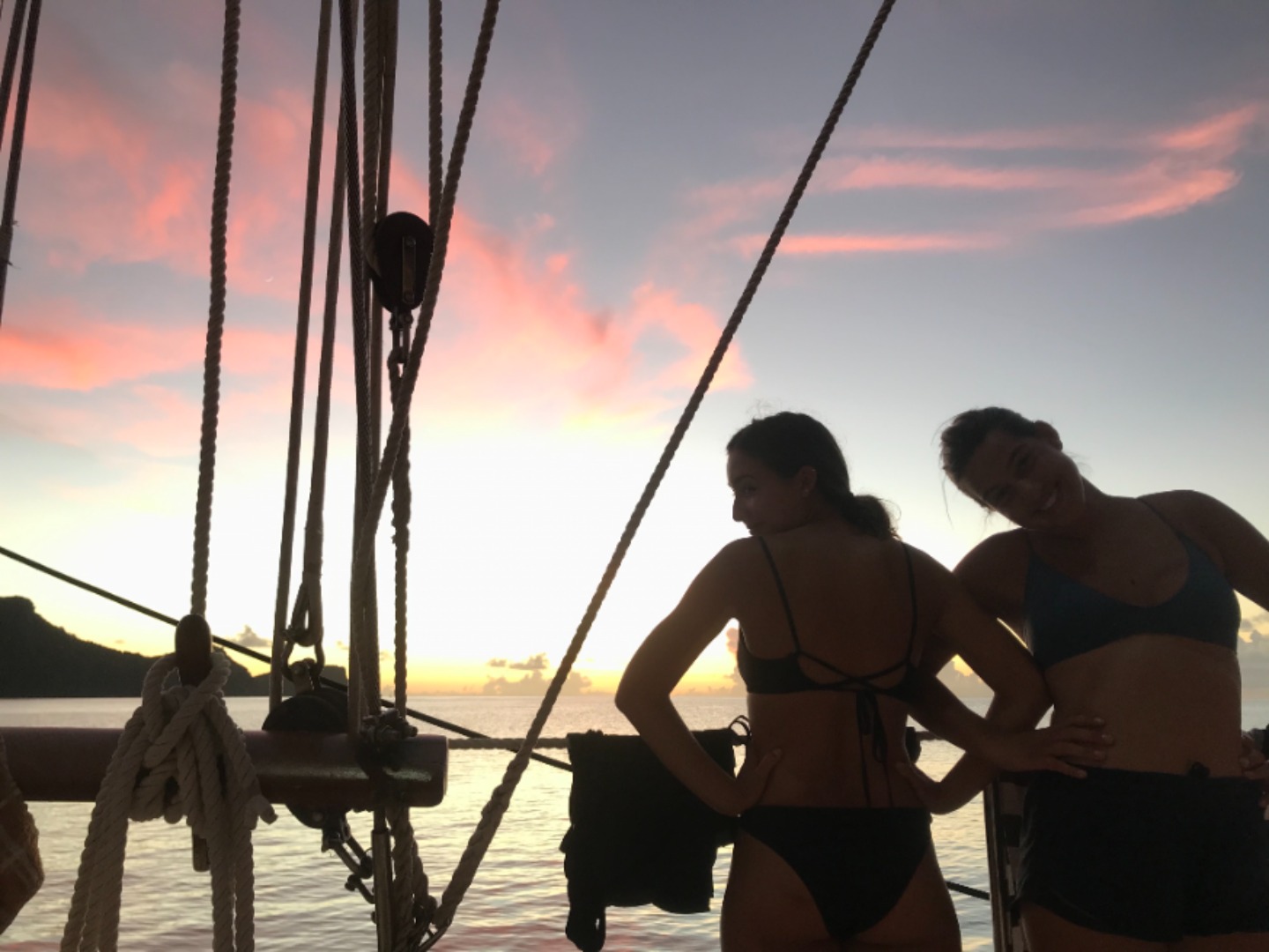 Once the sails were up, and the course was set, we headed down below for Seamanship class. In this class, we received back our dreaded sailing pop-quizzes, which I believe was a learning experience for all. Next time everyone will definitely remember what type of sailboat we are on… Seamanship class was interrupted by the extremely loud fire alarm, so we all sprung into action. I grabbed my big orange lifejacket, Riley got the fire extinguishers, Luke and Mike brought their pillows to block ventilation, and we all headed up on deck to fight the (drill) fire in the Foxhole (Fo’c’sle). While we did a good job getting the fire hose out and ready for action, the fire got so bad that we had to abandon ship (once again, a drill). We talked through how to launch the precious life rafts and which supplies needed to be grabbed from down below. Once we were relieved from the drill, we all relaxed in the cockpit for the rest of the sail. I studied for Oceanography with Julia, Chief, Xonel, Kiara, and Ben while others chowed down on snacks at the bow. We made it to Bequia around 1 and enjoyed a delicious late lunch of Caprese sandwiches. After cleanup, we had Steve’s marine biology class in which we learned about marine reptiles and birds (well, mostly marine reptiles because Steve doesn’t enjoy talking about birds, one thing I completely understand). We had the rest of the afternoon off to study for our upcoming midterms, but the crew did not miss out on the opportunity to go for a quick swim and have a self-care moment. Isa opened an eyebrow, plucking salon while Riley cut her and Mike’s hair. After some more group studying, we all enjoyed Will’s delicious Steak au Poive with Bechamel potatoes and Brussel sprouts. We are all a little tired after many late nights of studying, but spirits are high, and we are excited to explore the rest of the Grenadines!
