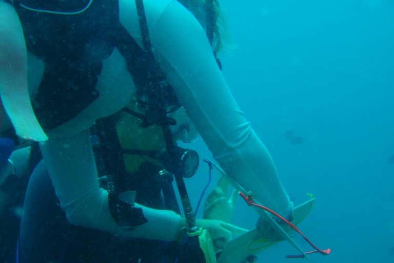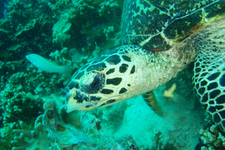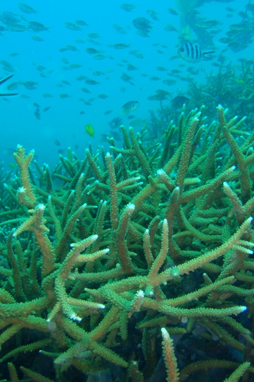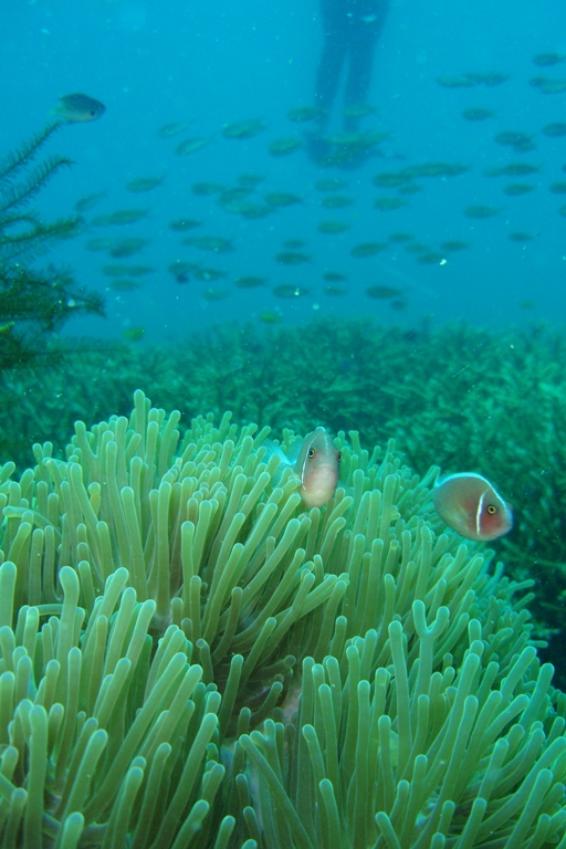 When we woke up, we were excited to meet new people and learn about reef checks from Tioman Dive Centre. We ate breakfast and headed to shore, where we met nine other students and staff who have been living in Tioman for the past month, surveying the health of all the surrounding reefs. They were happy to see new faces, just as we were, and we got down to business by learning about reef checks. We had class outside at a small beach resort called Swiss Cottage and even got to drink coffee! We all chose what specific species we wanted to survey and split up into teams with the other group. We then came back to the boat to get our gear and headed out for a dive. We partnered with a person from the other group in order to learn the specific species we should be looking for. After that, we broke up for lunch and then went back to shore to drop off our clothes for dinner later that night. We swam out from the beach to do another practice reef check and dive, then went back to Tioman Dive Centre/Swiss Cottage, where we got to take warm showers and get cleaned up for dinner. We all got to hang out with the other group, drink some more coffee/soda, and test our reef check knowledge. We then ate a chicken curry for dinner on a candlelit table with them under the clear night sky. We all enjoyed talking and laughing with them. Altogether we really appreciated the hospitality that they showed us!