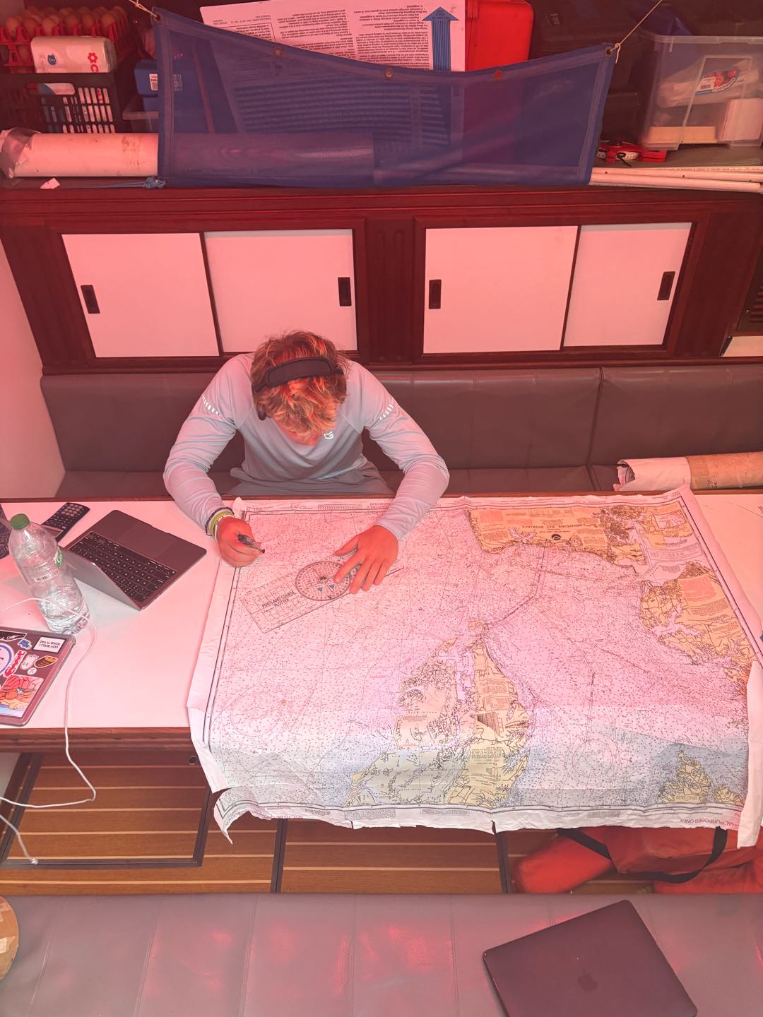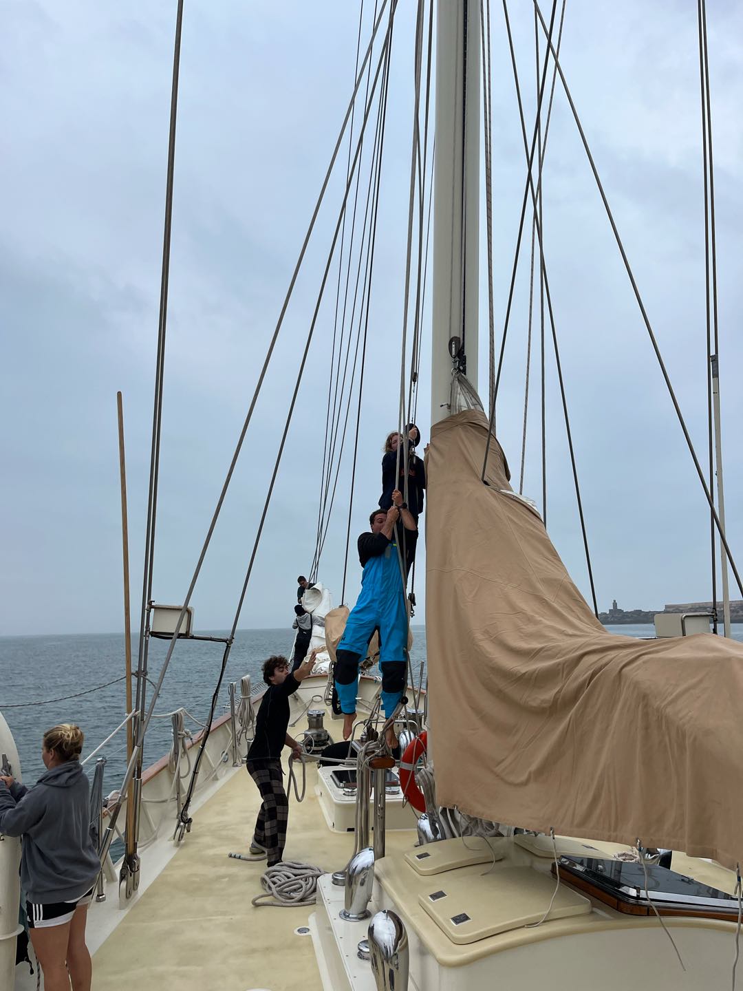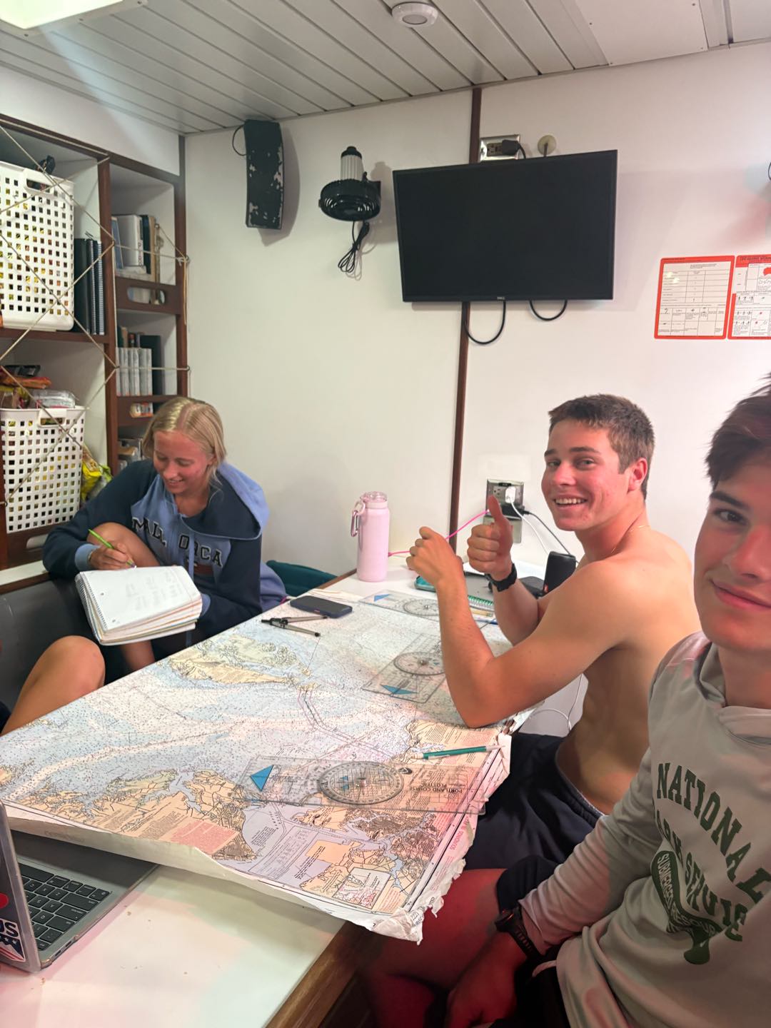My day started when a soaking wet Teo woke up my watch team around 11:30, claiming it was pouring rain and that we all needed to put on our full foulies. Naturally, we all believed him. We were quite surprised when we came up on deck to absolutely zero rain. Watch team 3 had fallen victim to another watch team 2 prank, who thought it would be funny to make us all think it was raining by spraying Teo with the hose before having him wake us up. Watch team 2 is going to have to watch their backs on the next passage because we are not going to hold back. The rest of our 4 hours of watch was filled with the usual ramen, boat checks, and more ramen. Nacho made his world-famous cement, an Argo classic. We then all headed to bed, excited to arrive in Morocco in the morning. Most everyone, expect watch team 2 (seems like karma to me), got to sleep until 11:30, which provided us a much needed break after the 3 day passage. The waves at this anchorage are crazy, though. It still feels like we are underway. For lunch, Amelia, Emily, and Liv made some delicious grilled cheese sandwiches and soup. After the cleanup, we all had marine biology class, where we learned about coral reefs, and then had seamanship, where we continued learning navigation. After classes, Bryson, Hailey, Cameron, Teo, Alexa, Sam, and I attempted the nav master homework, which meant spending about an hour poring over the charts trying to find the right points and lights. Even one little mistake can change your final answer by a ton. My brain was so fried that I had a bit more trouble doing basic addition than I would like to admit. We all then took freezing cold ocean showers together, and as Cameron and Teo put it, the water felt like an ice bath. We then had an amazing dinner of spaghetti and garlic naan. Shout out to Maria for making the best naan of the trip so far! We’re all super excited to be in Morocco, and we’re looking forward to all the cool things we’ll get to do while we’re here! Also, see you soon, Rachel!! You need to come back